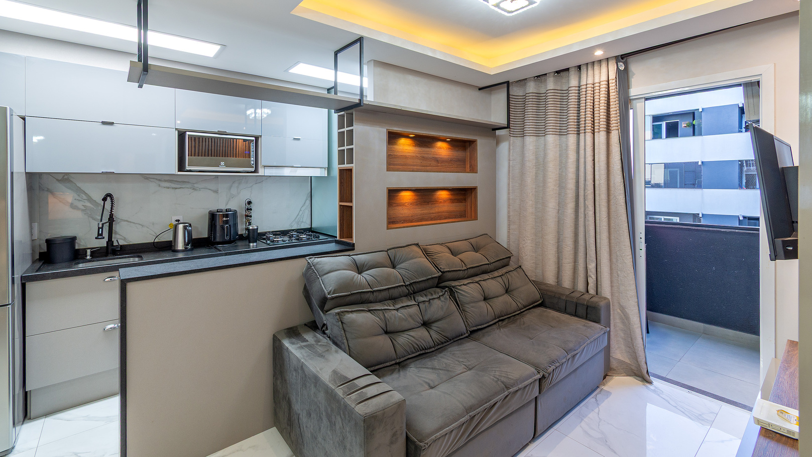 - A sala é bem confortável e nela você encontra cadeira e sofá