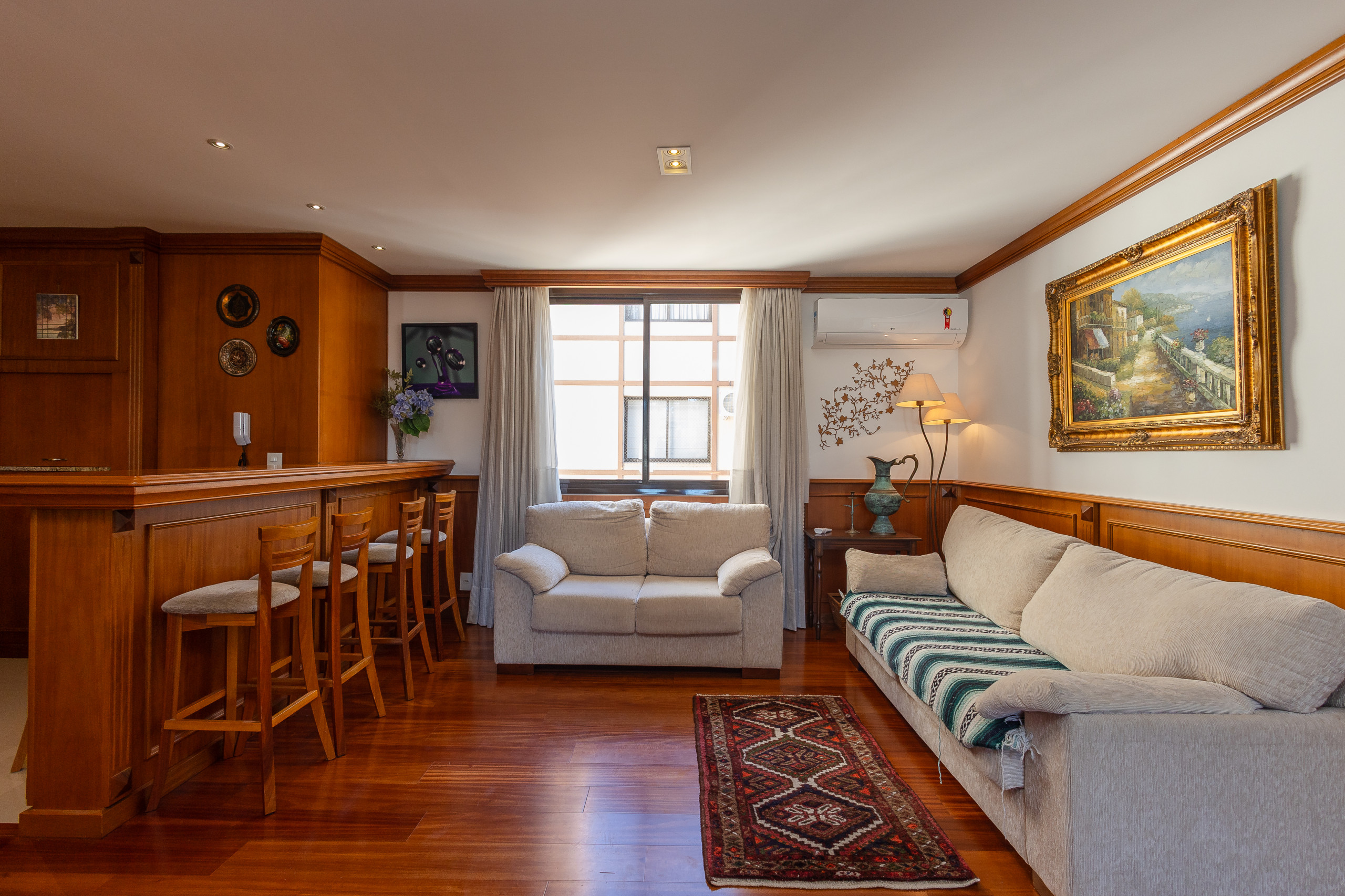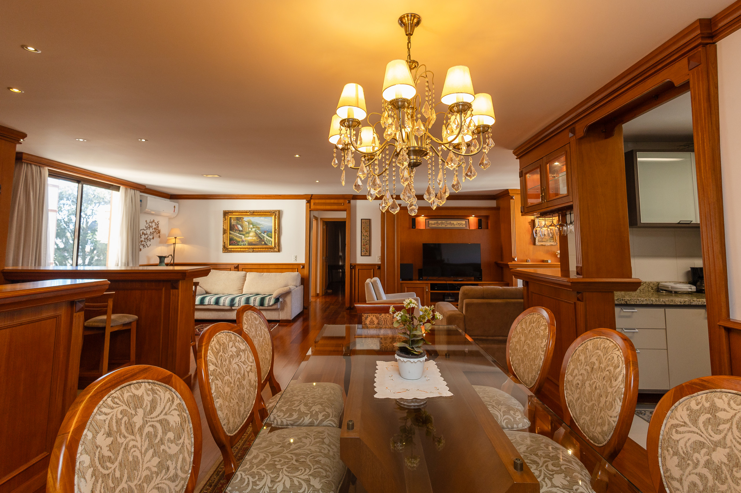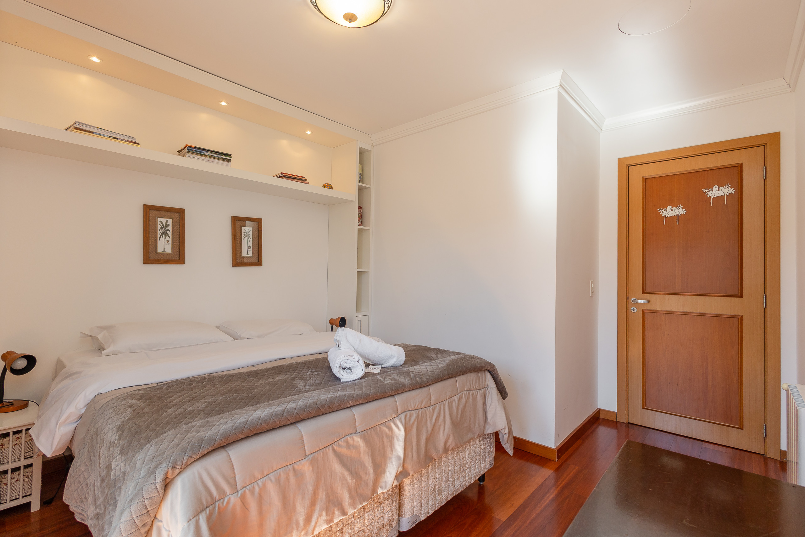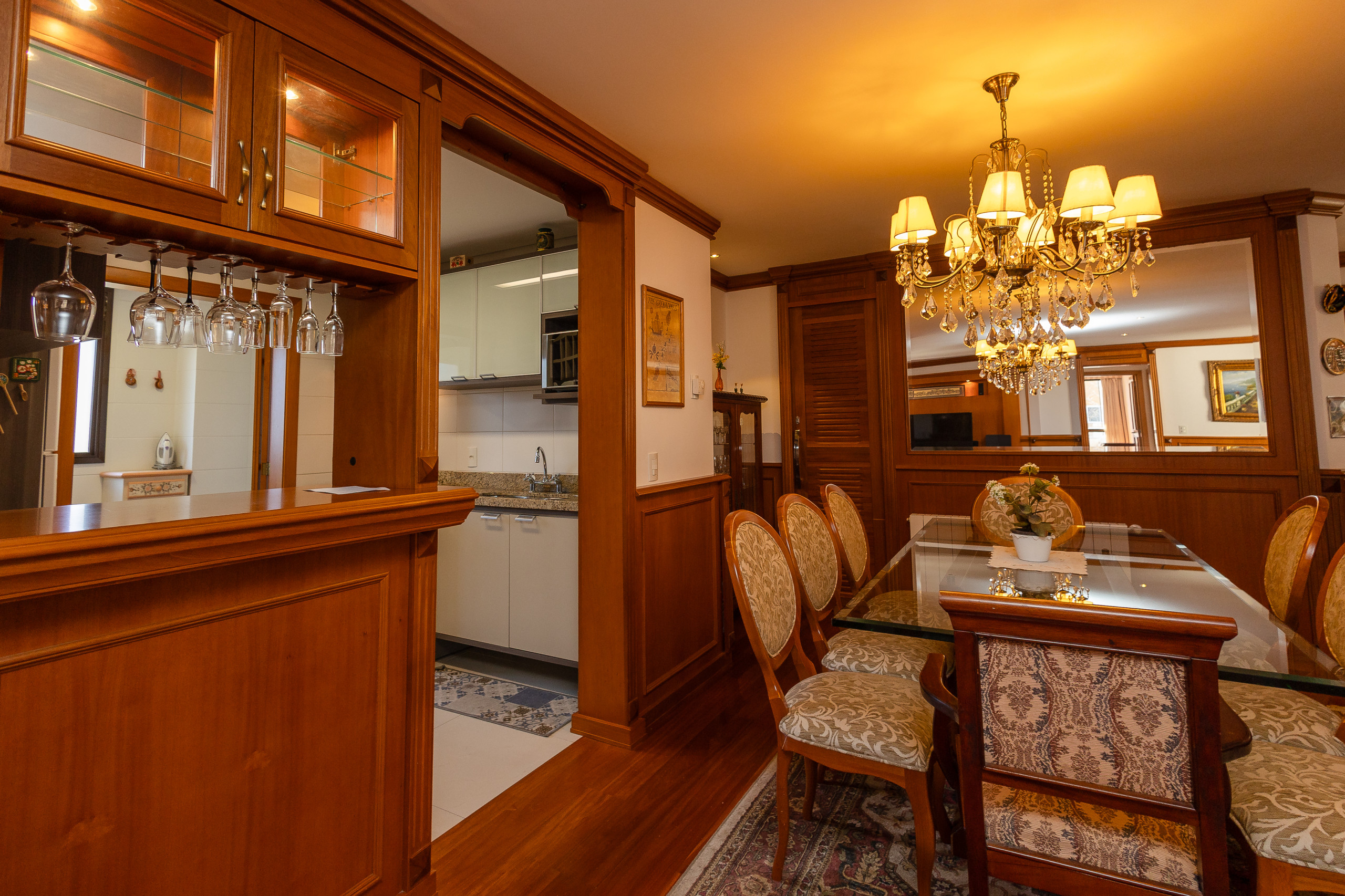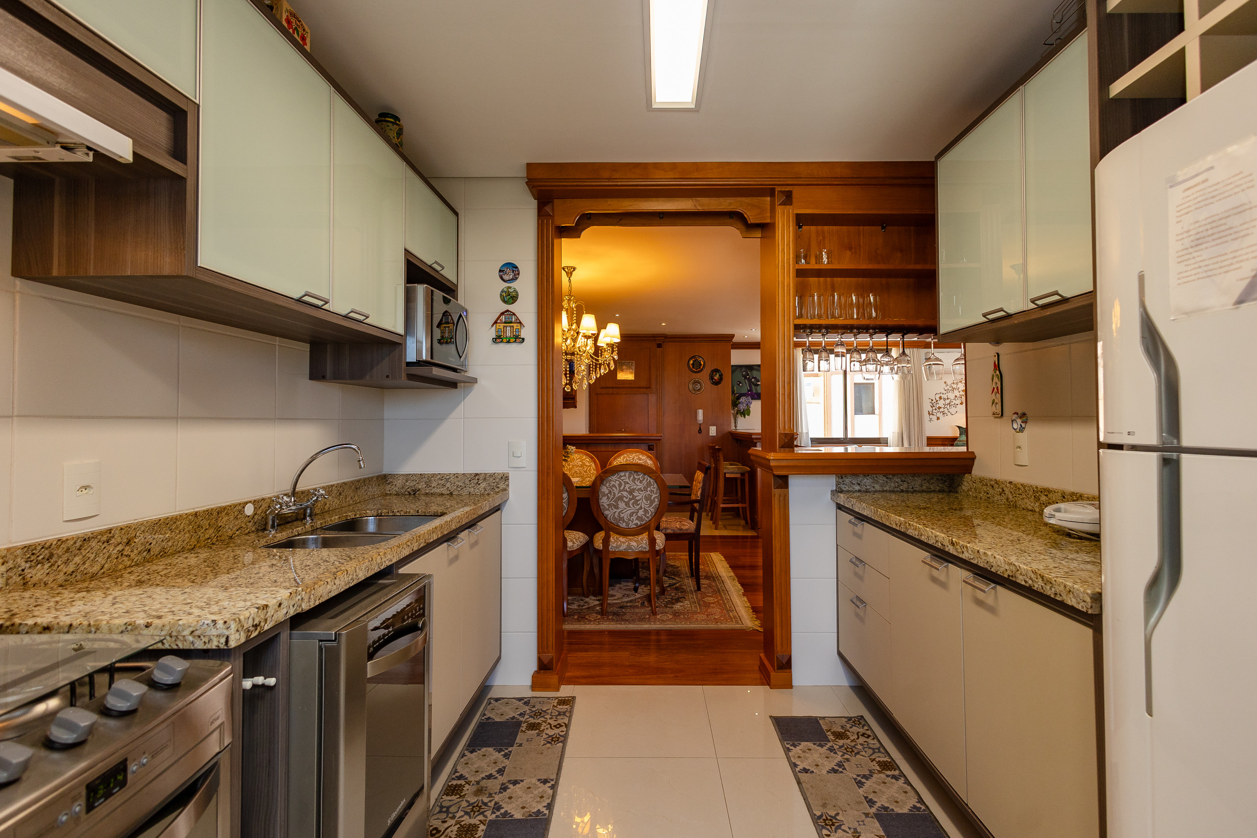 Espaçoso apartamento distribuído em 3 suítes, uma delas com sacada, lavabo, amplo living 3 ambientes com estar, jantar e cozinha americana integrada, área de serviço, internet Wi-Fi, uma smartTV. Estacionamento privativo com 2 vagas de garagem, adiciona ainda mais tranquilidade à sua estadia.