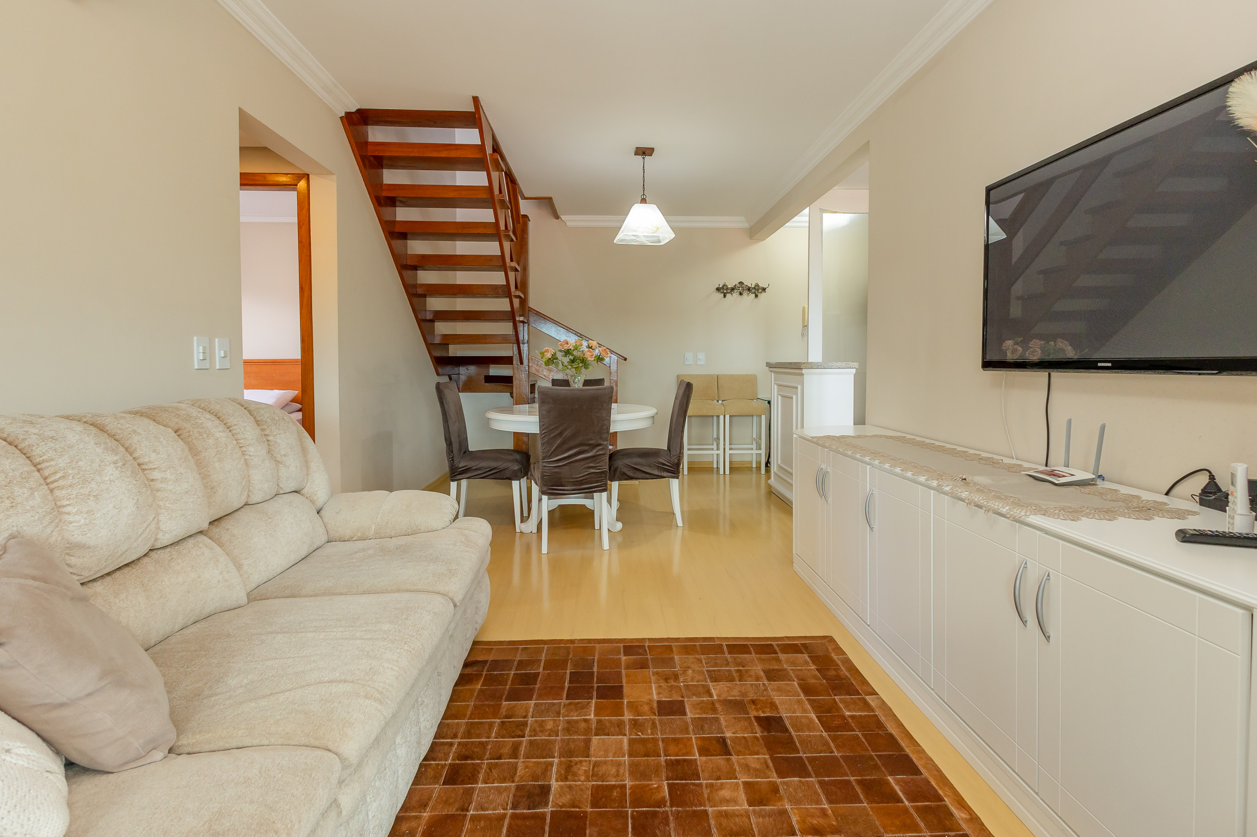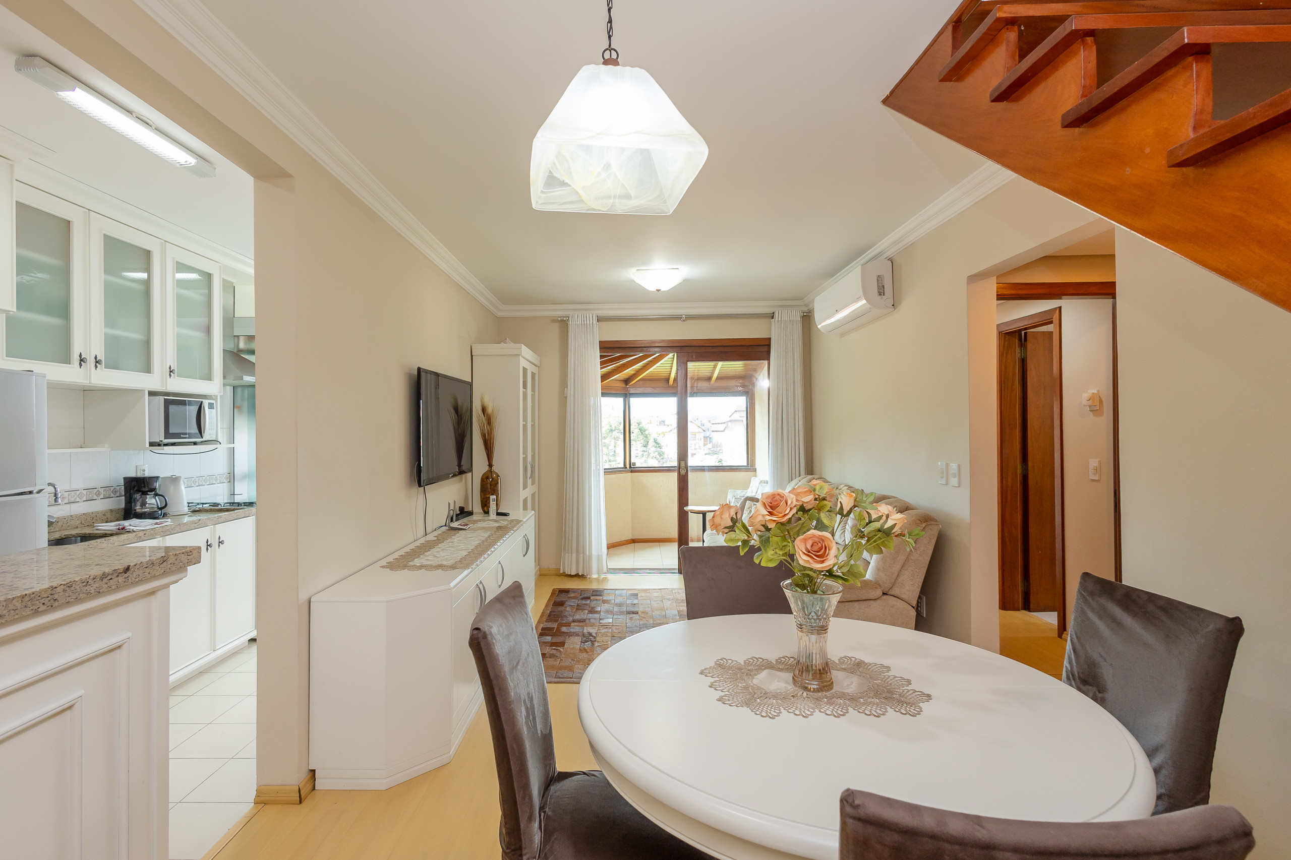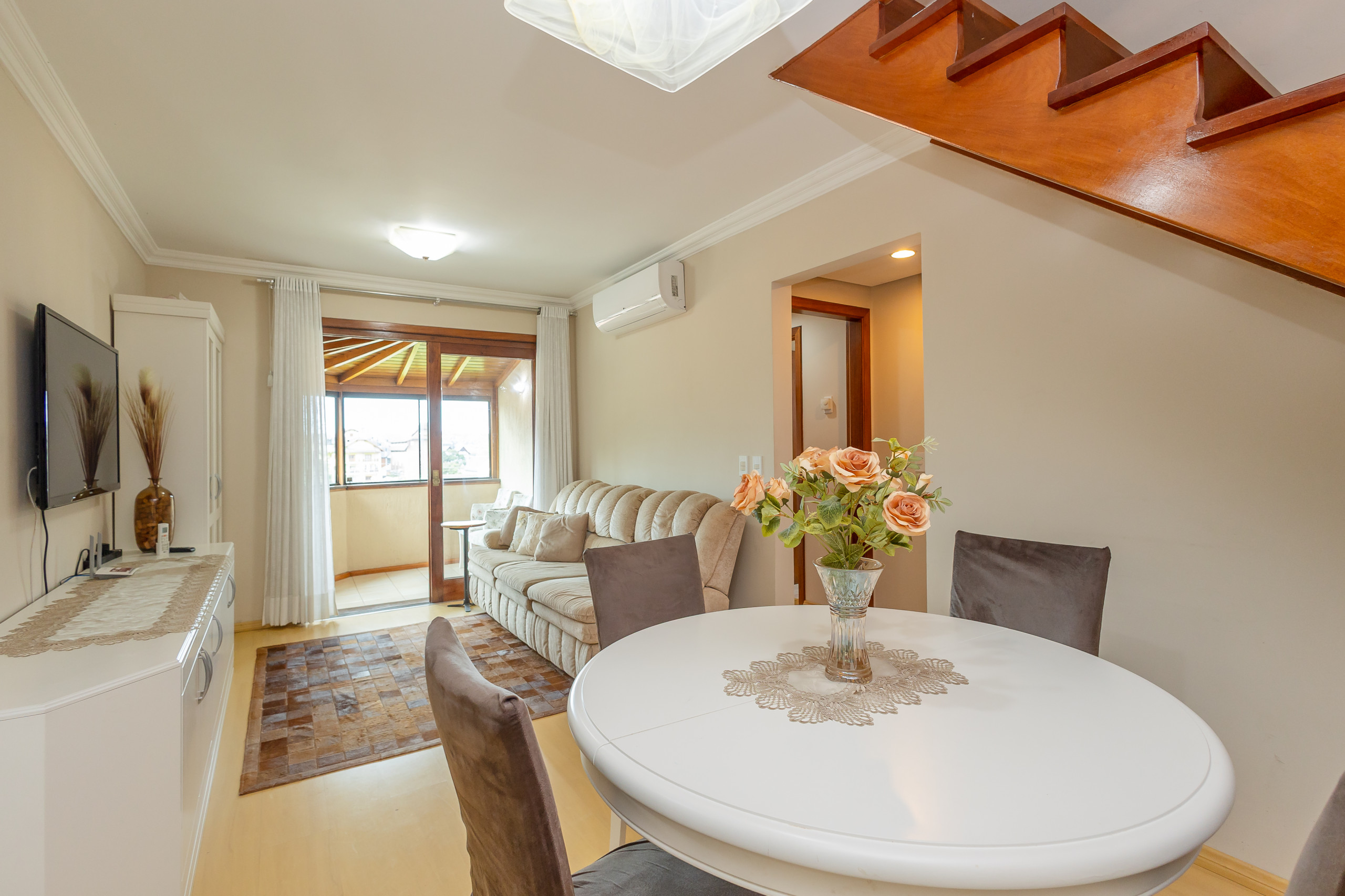 Este apartamento é a sua nova oportunidade de Viver o centro de Gramado, a cerca de 900m da Rua Coberta, sem precisar de carro! Acolhedor em todos os sentidos, disponibilizará: duas vagas de garagem, internet de alta velocidade, três quartos e três banheiros (sendo 2 suítes), split Q/f no living e nos quartos, lareira e enxoval completo para sua estadia!
