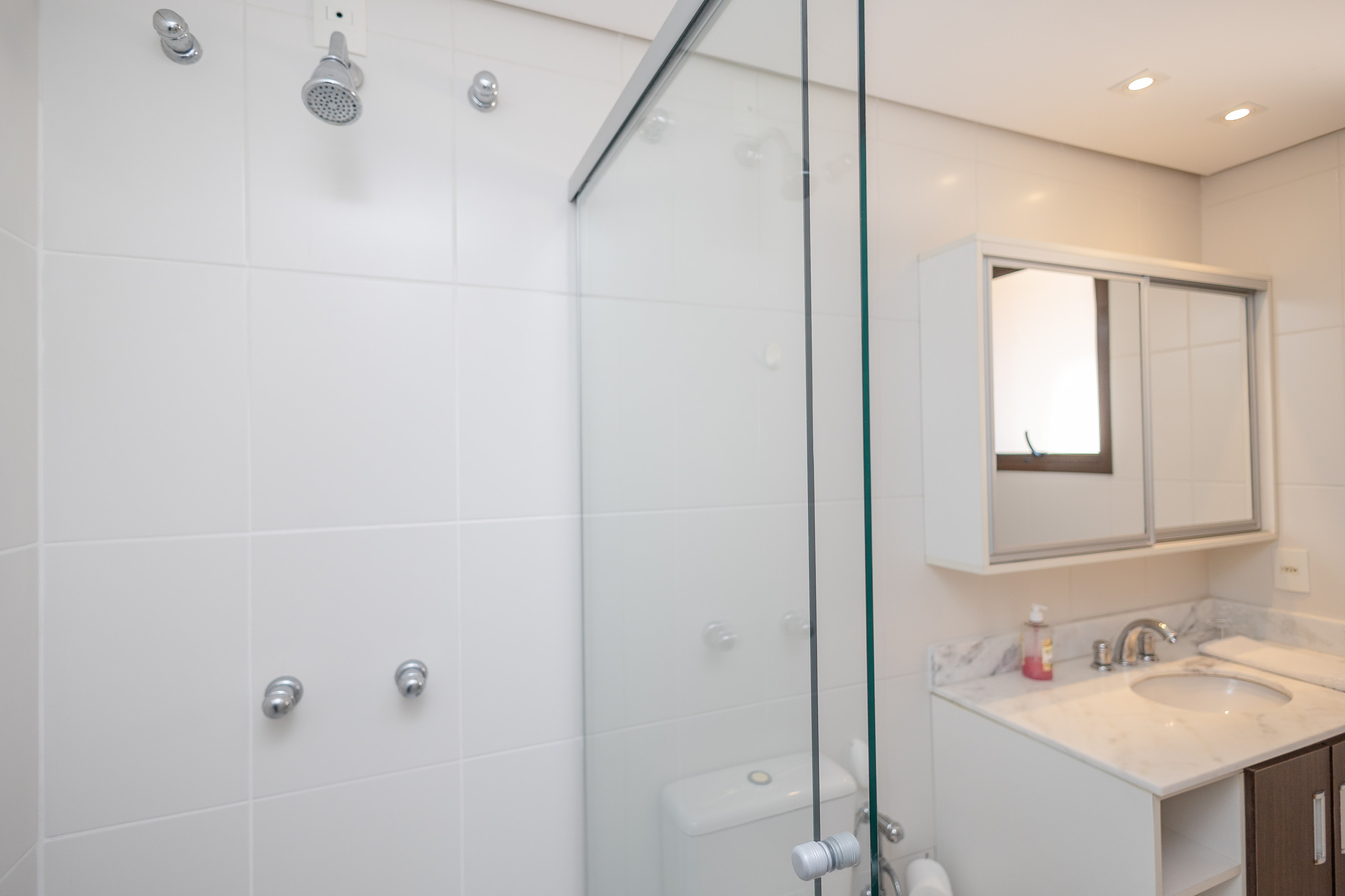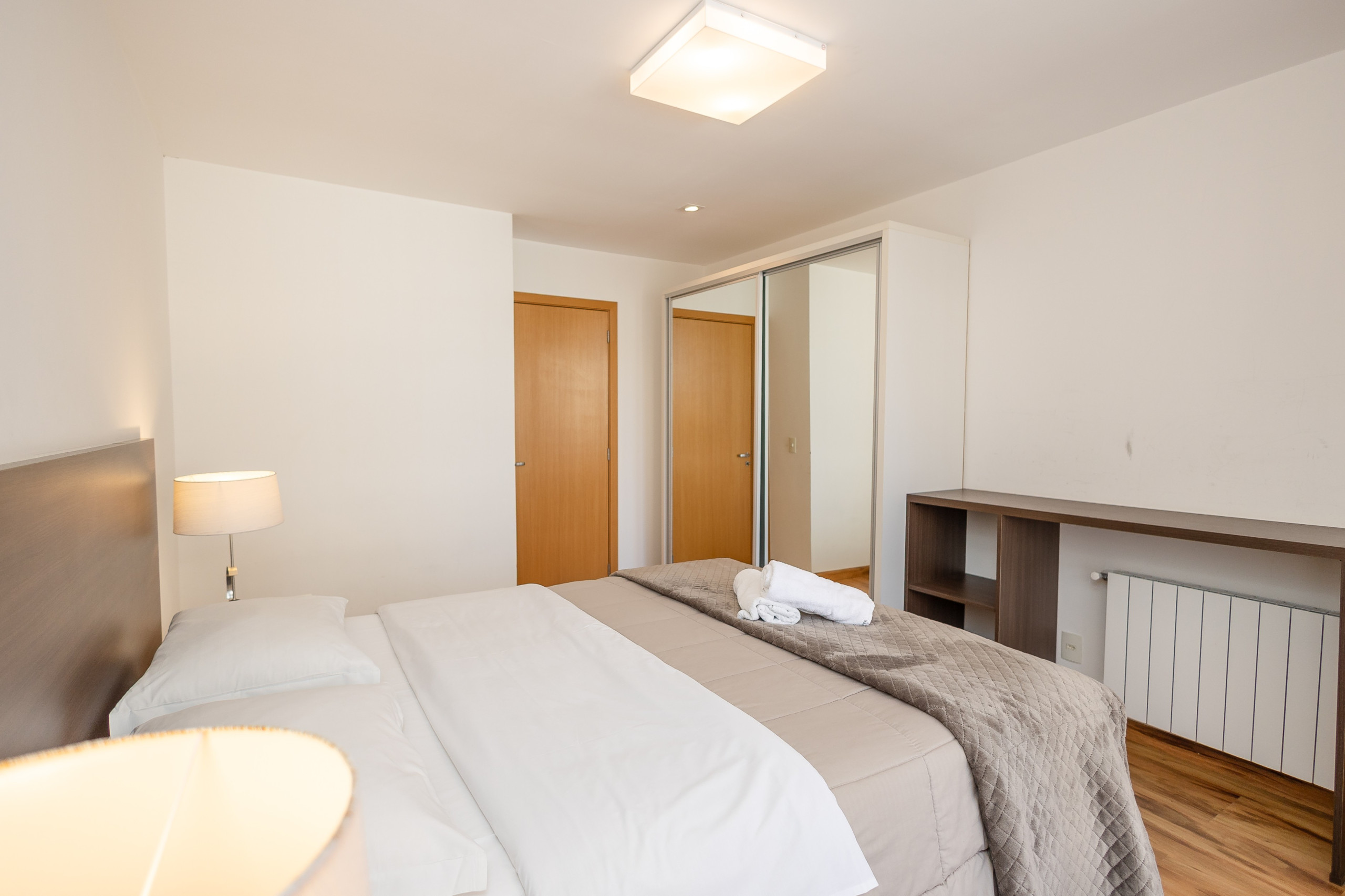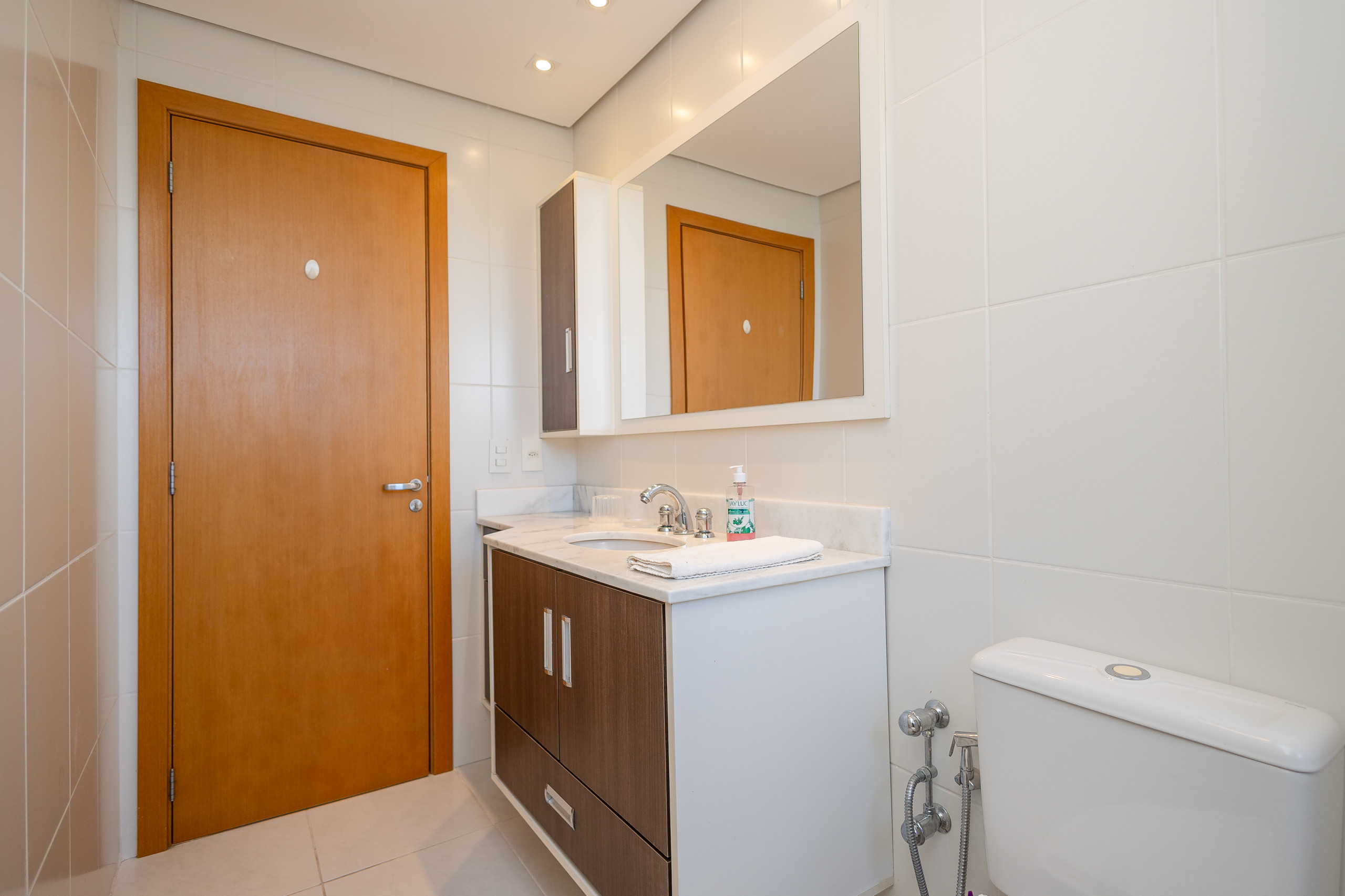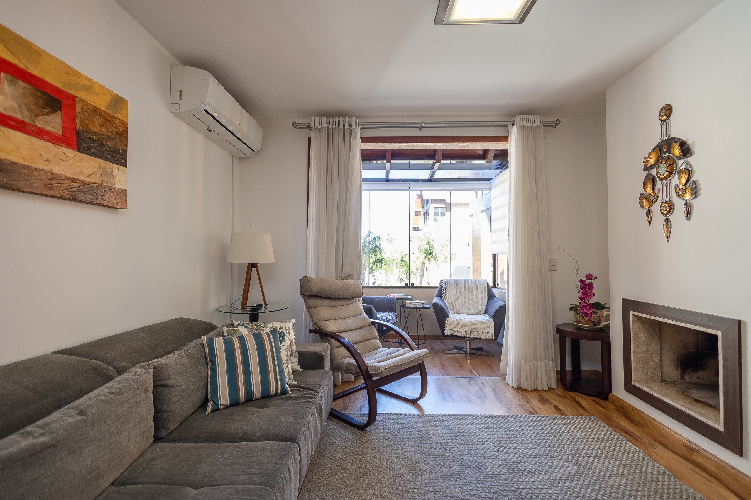 São 110m², peças amplas e iluminadas, sendo duas suítes com split Q/F, sala de estar (com churrasqueira, lareira, Split Q/F, televisão) cozinha equipada, lavabo, lavanderia e 3 sacadas. O apartamento também dispõe de Wi-Fi de alta velocidade, água quente em todos os pontos e demais eletrodomésticos.