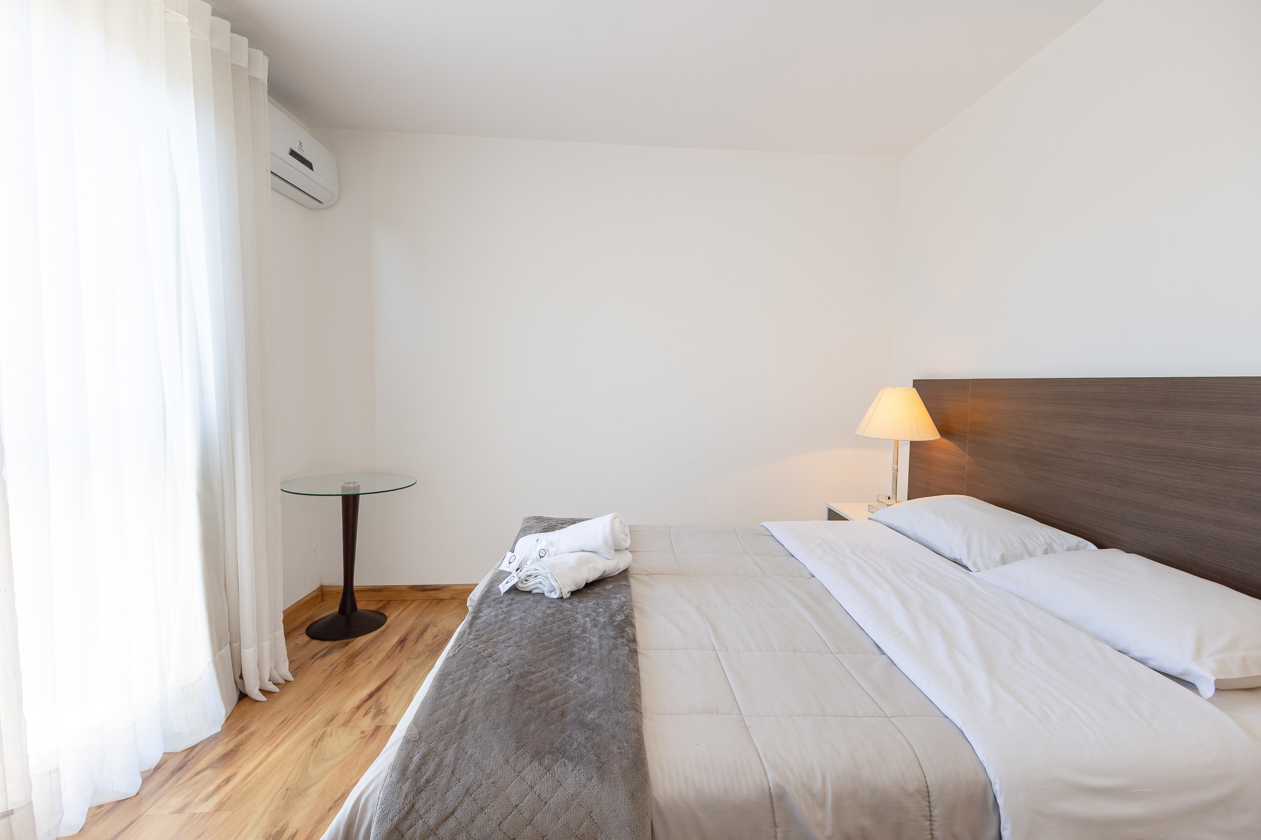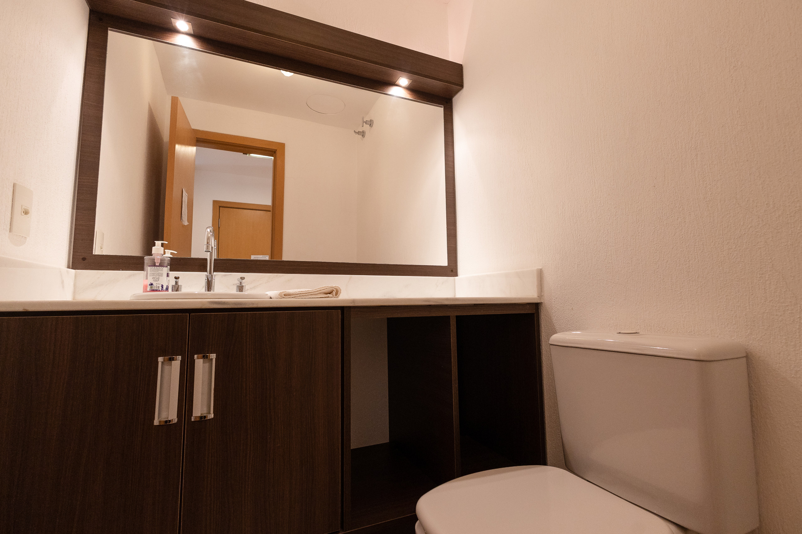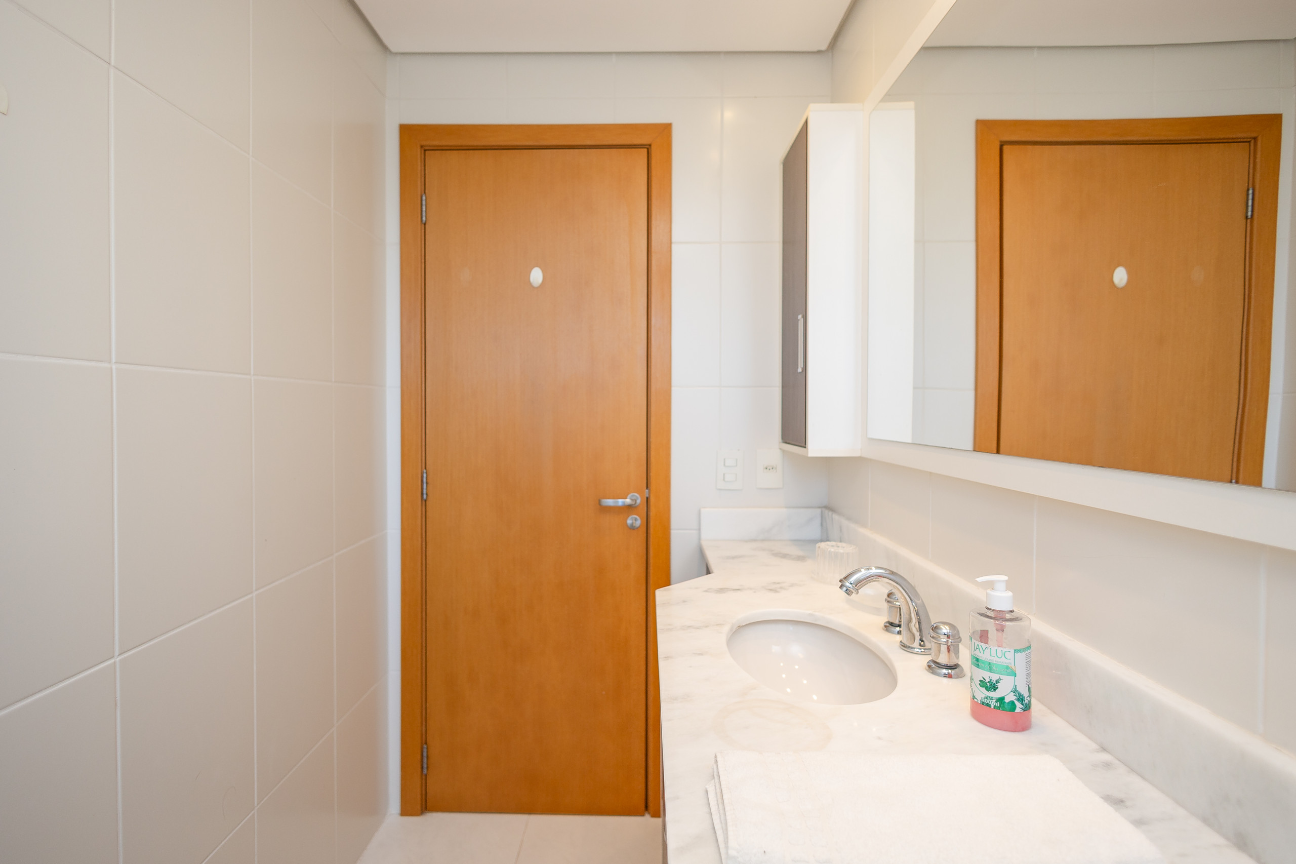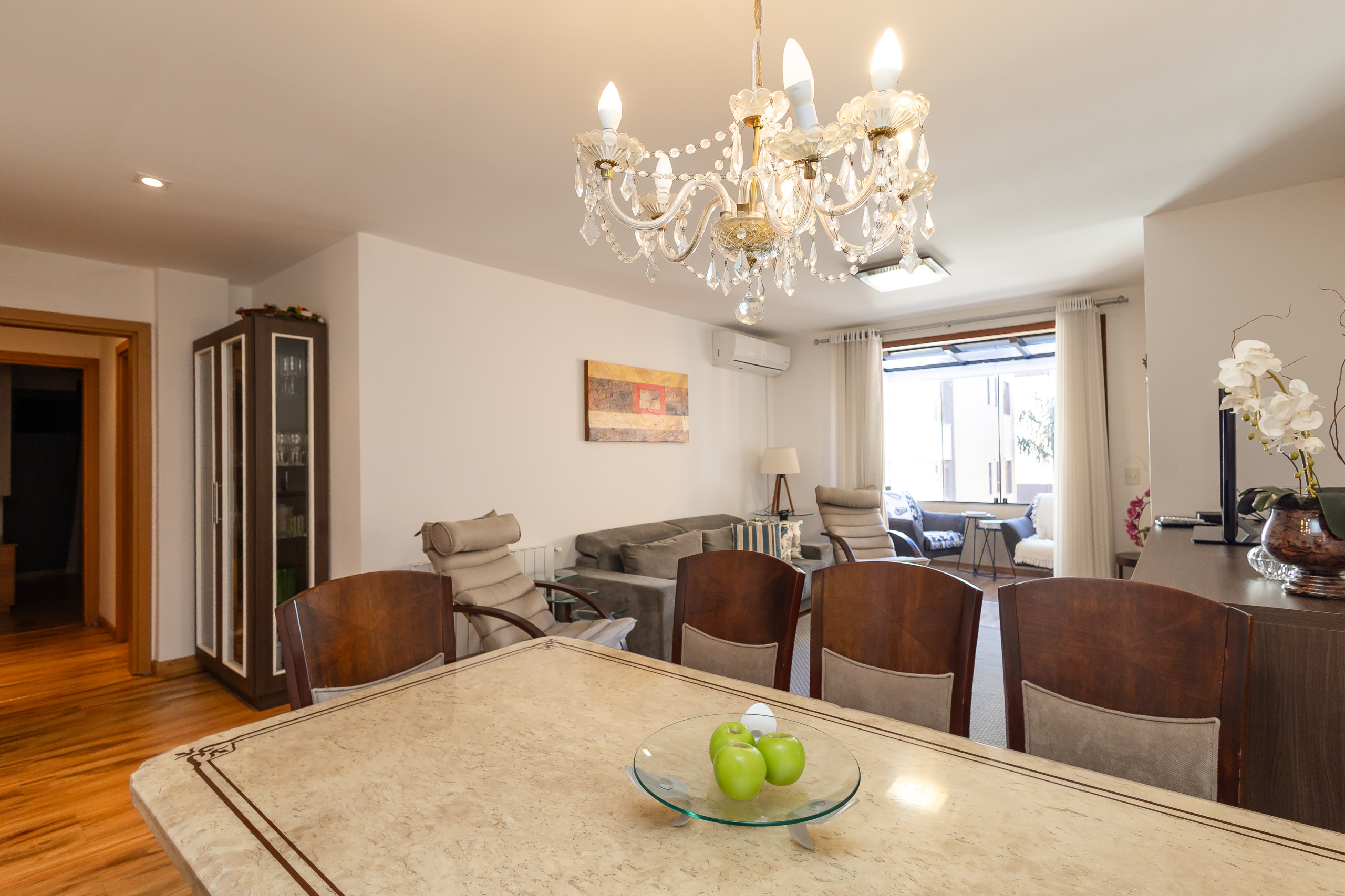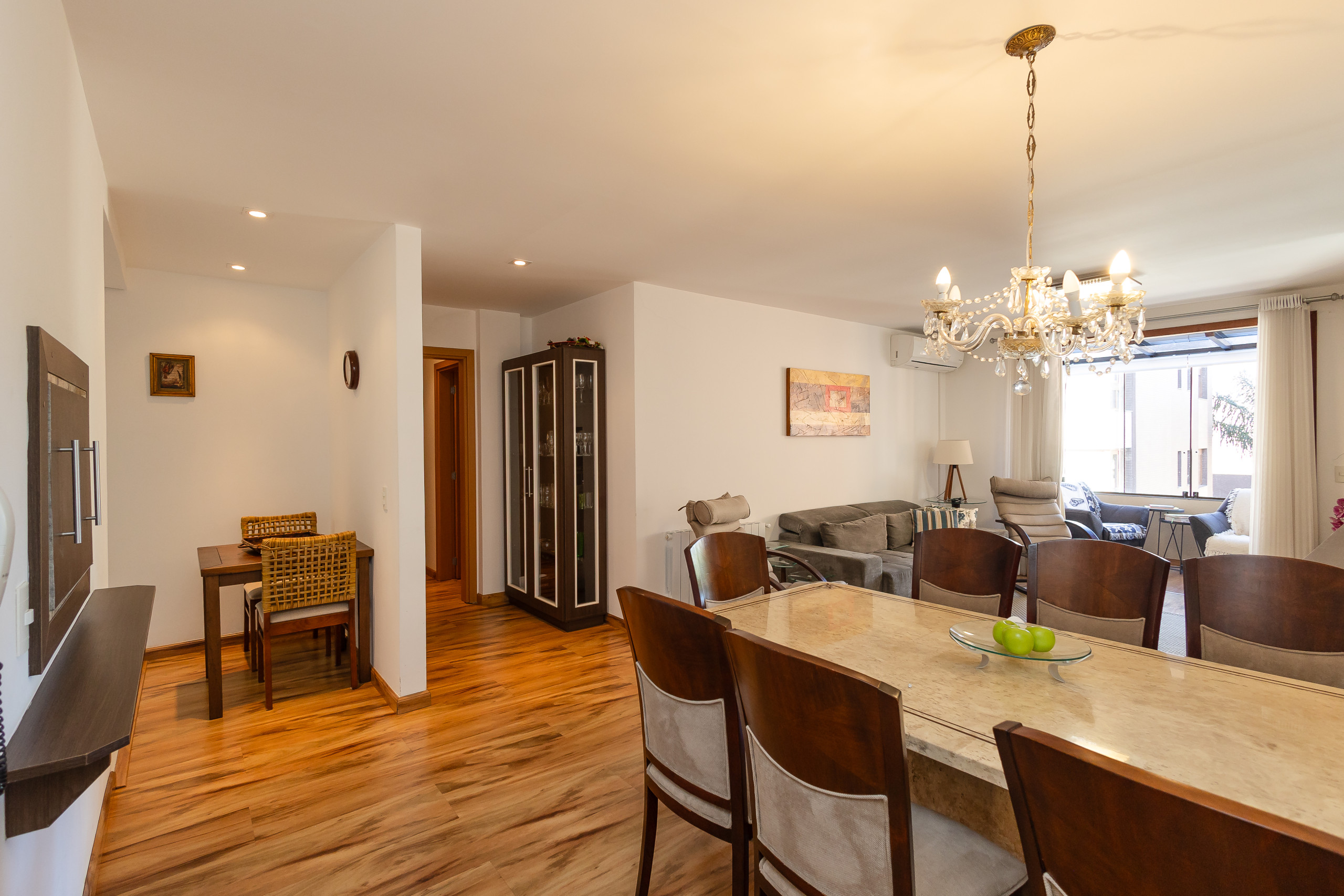 São 110m², peças amplas e iluminadas, sendo duas suítes com split Q/F, sala de estar (com churrasqueira, lareira, Split Q/F, televisão) cozinha equipada, lavabo, lavanderia e 3 sacadas. O apartamento também dispõe de Wi-Fi de alta velocidade, água quente em todos os pontos e demais eletrodomésticos.