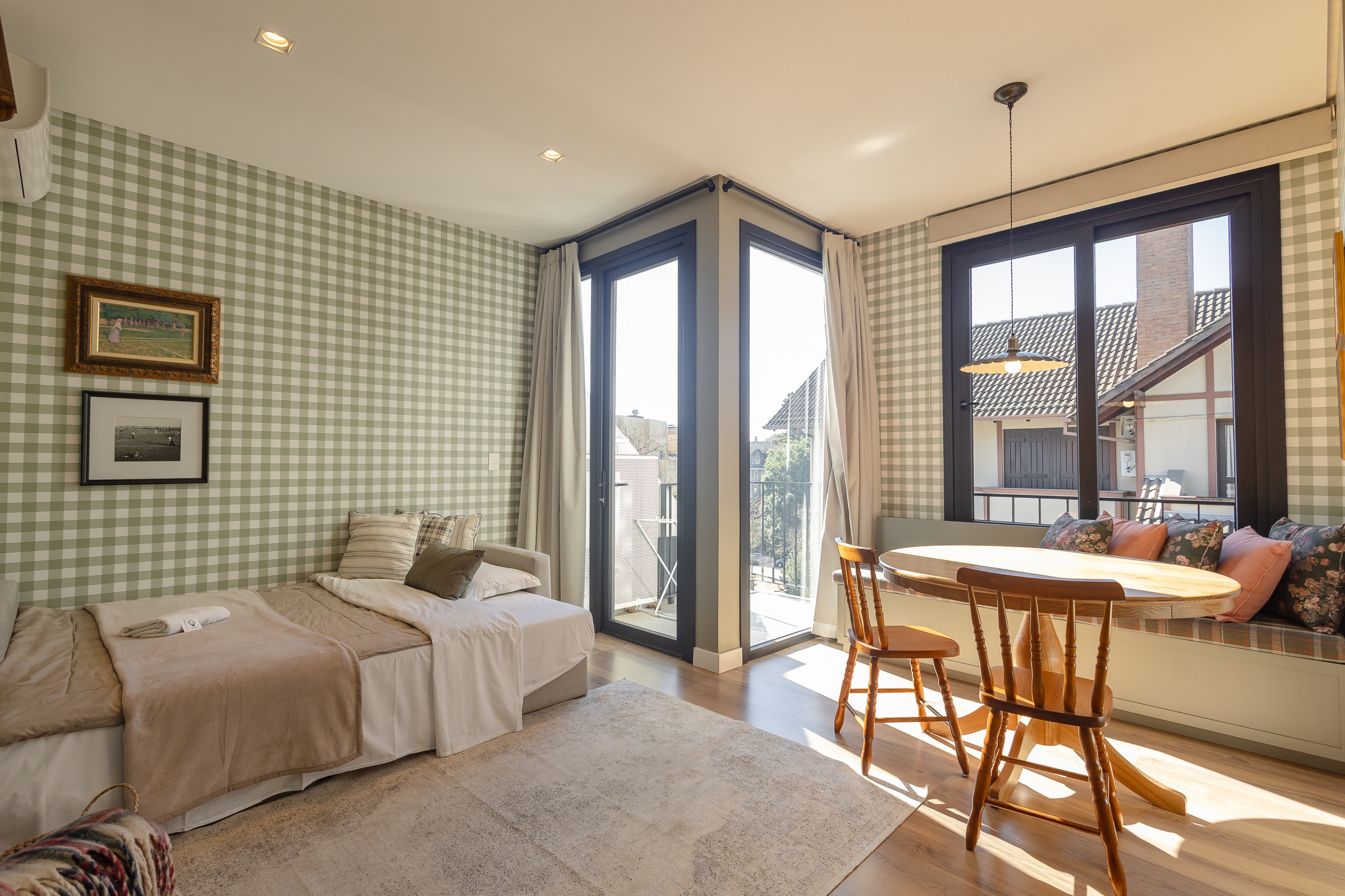 Novo e super aconchegante! Desfrute de um amplo apartamento de 1 quarto no coração de Gramado, a poucos passos das principais atrações da cidade. Localização perfeita para explorar a cidade a pé, sem precisar de carro! O imóvel é totalmente equipado, com cama queen, sofá-cama de casal, Smart TVs, ar-condicionado quente/frio, lava e seca e enxoval de luxo. Conta também com vaga de garagem exclusiva! Reserve e viva o melhor de Gramado!
