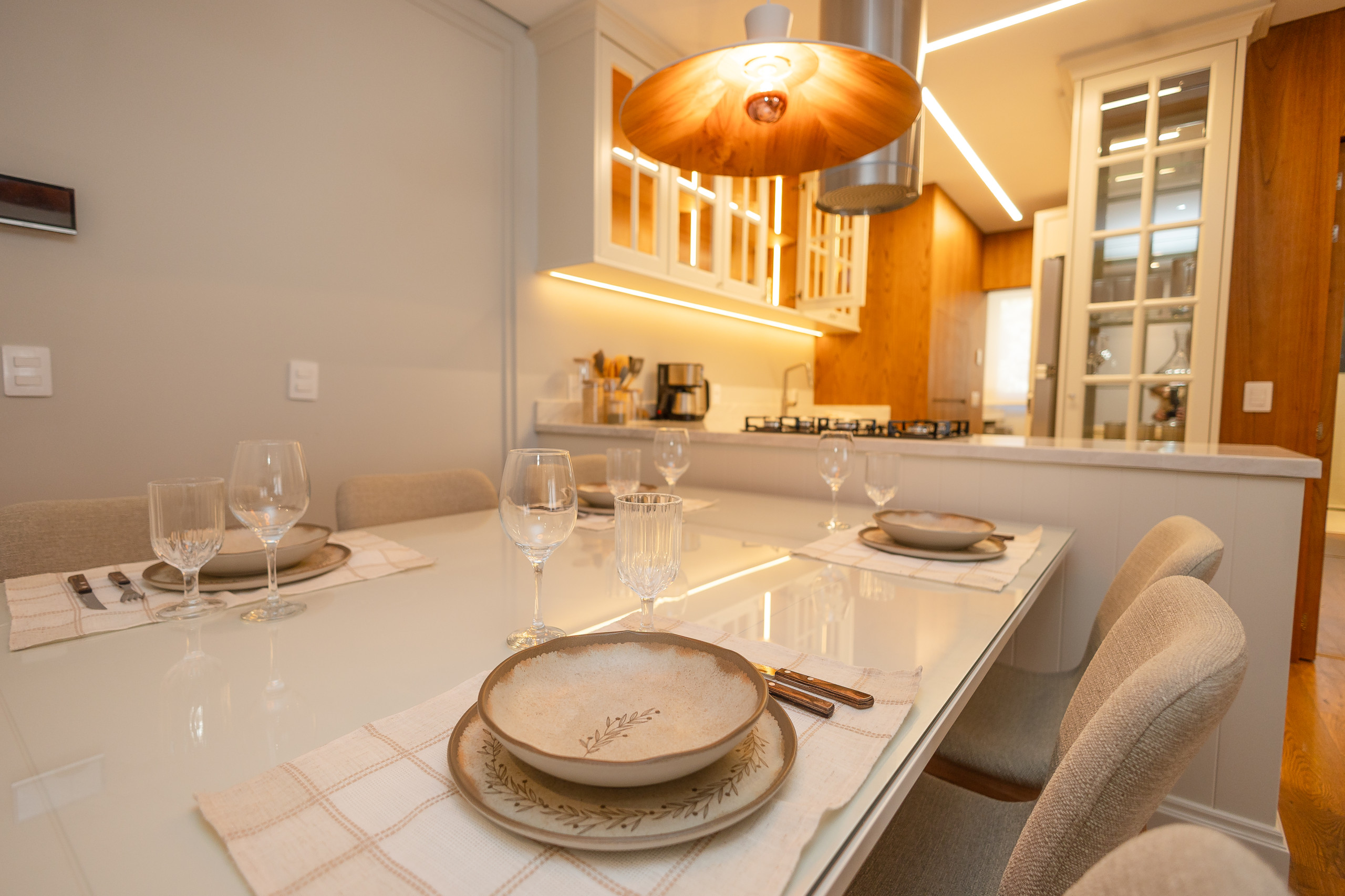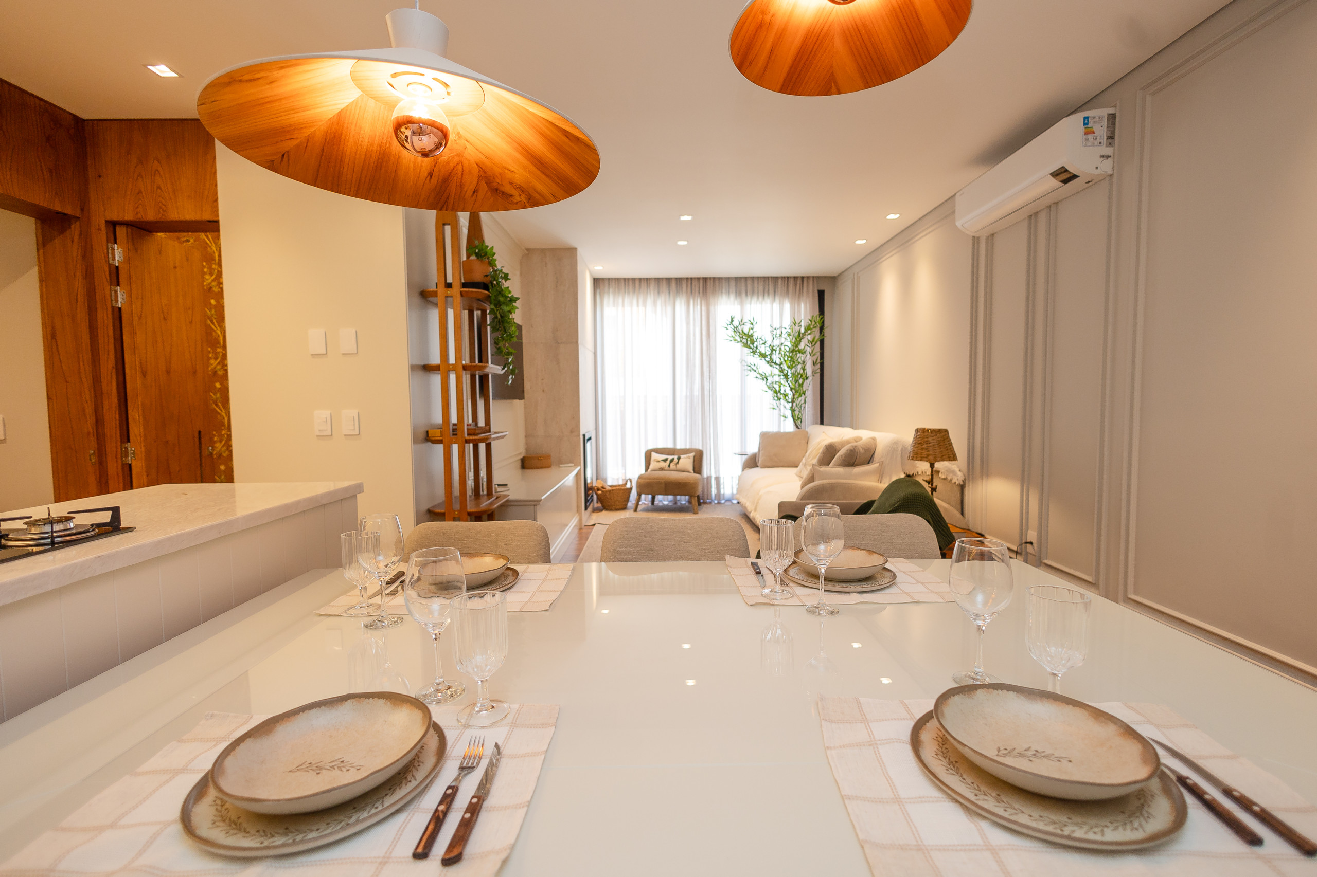 O living conta com três ambientes (cozinha, estar e jantar) e lavabo e vai proporcionar um espaço para que aproveitem os momentos de descontração em grupo, com muito bom gosto! Além de calefator também conta com split Q/F, tornando especiais os dias de verão e inverno!