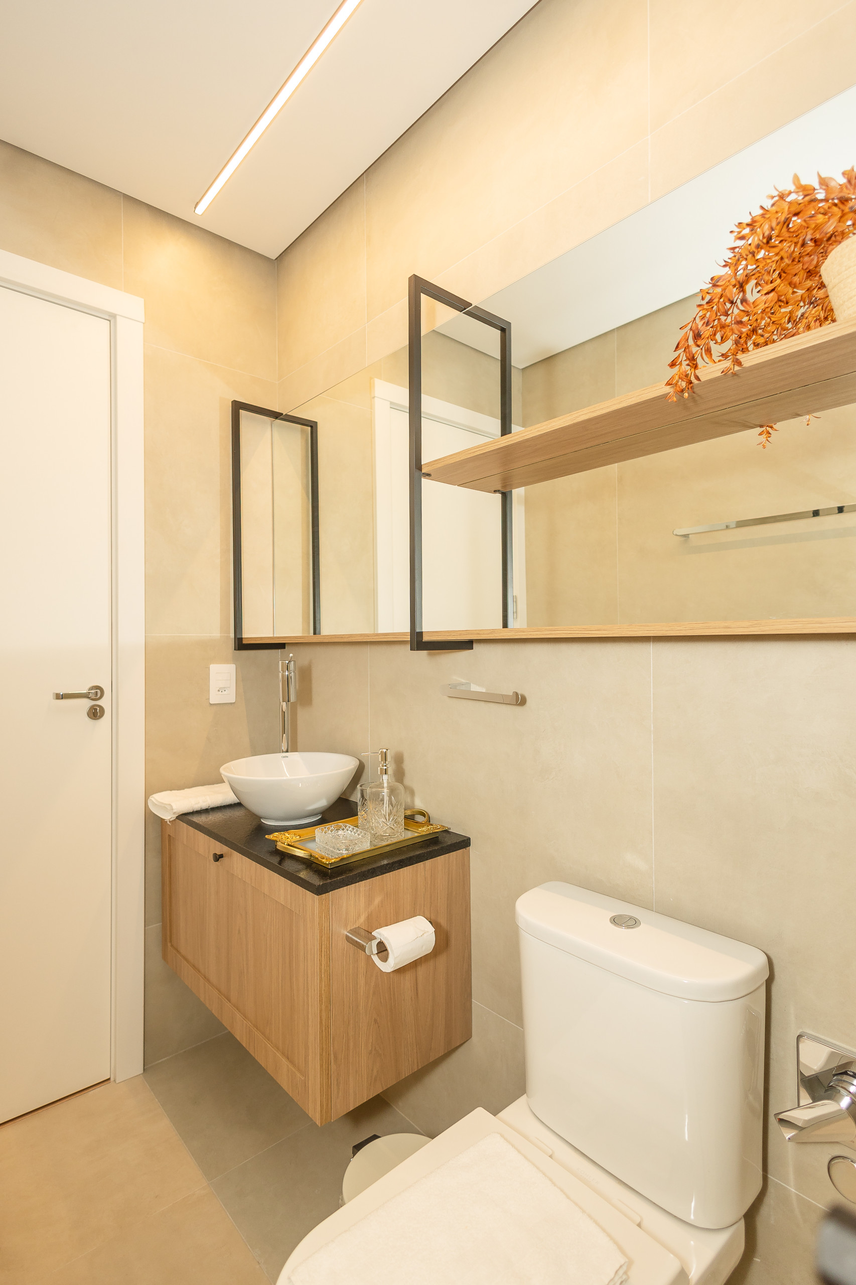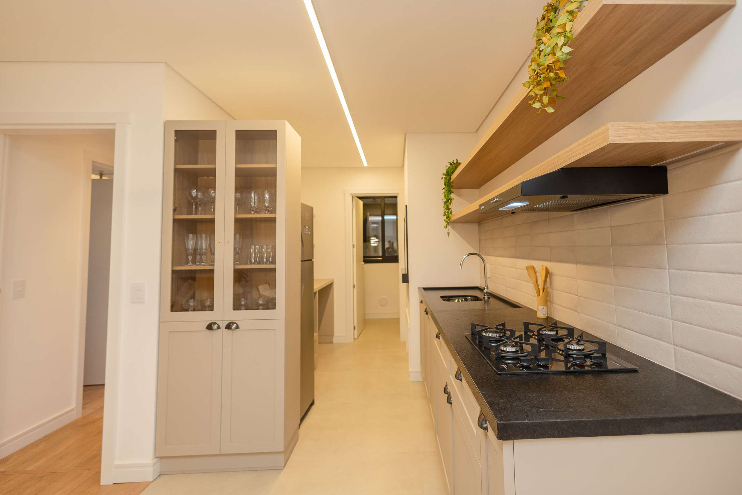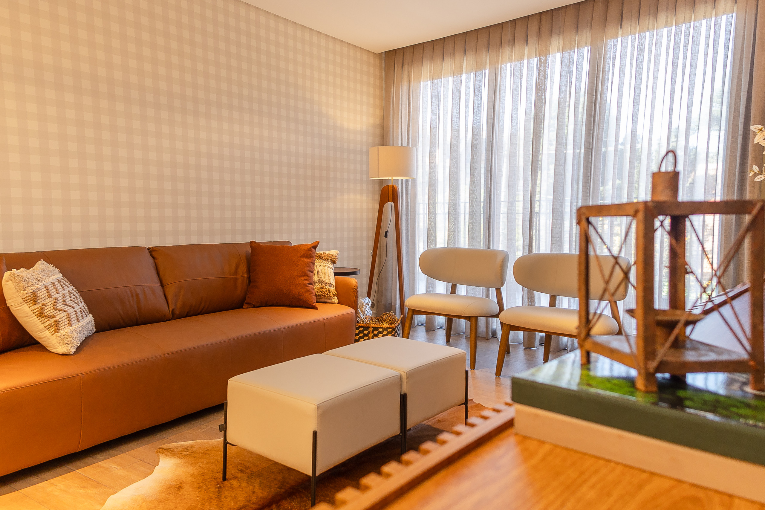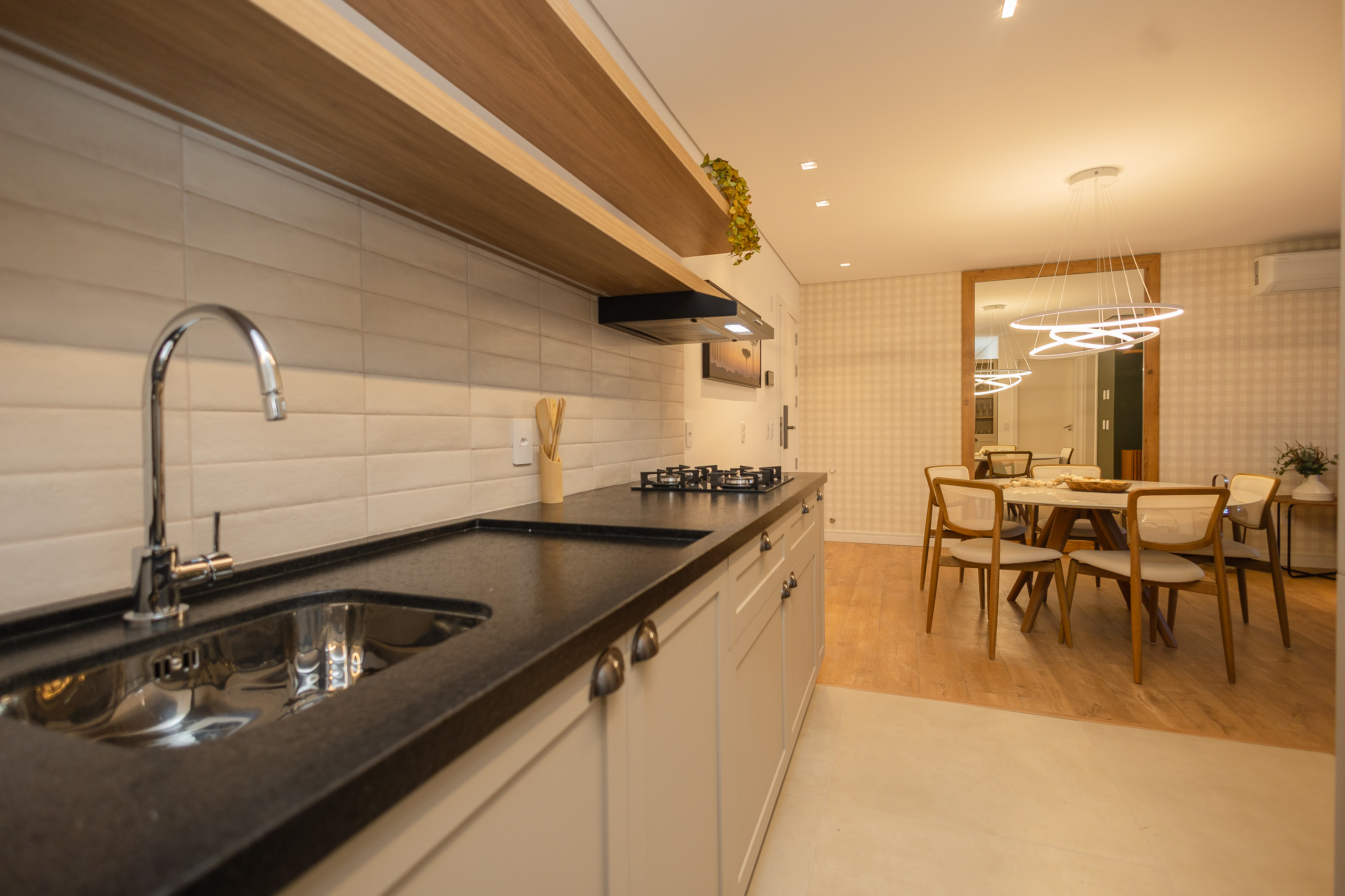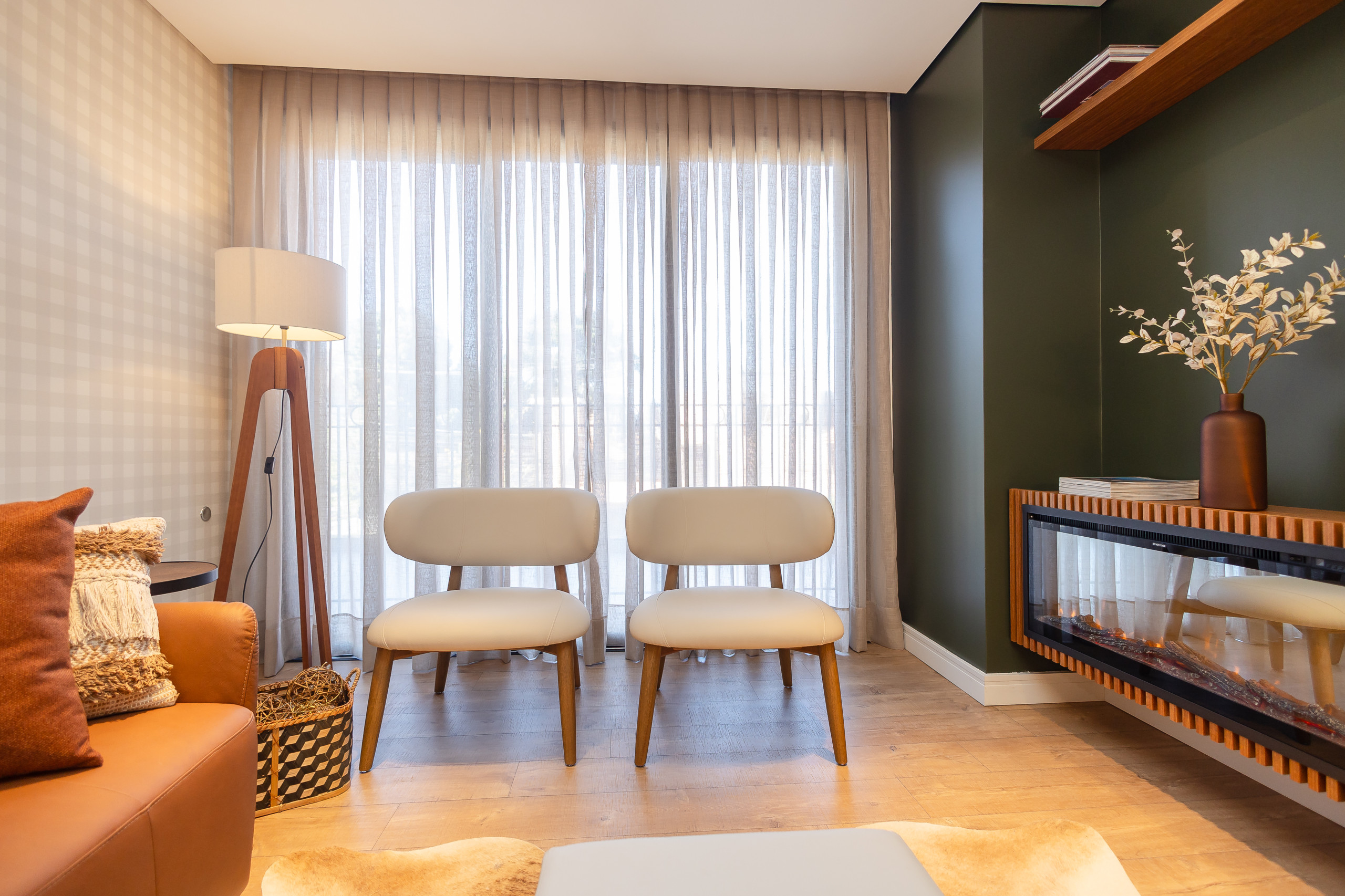 O amplo living com três ambientes (cozinha, estar e jantar) e lavabo vai proporcionar um espaço aconchegante para que aproveitem os momentos de descontração em grupo! Além da lareira elétrica também conta com split Q/F e varanda, tornando especiais os dias de verão e inverno!