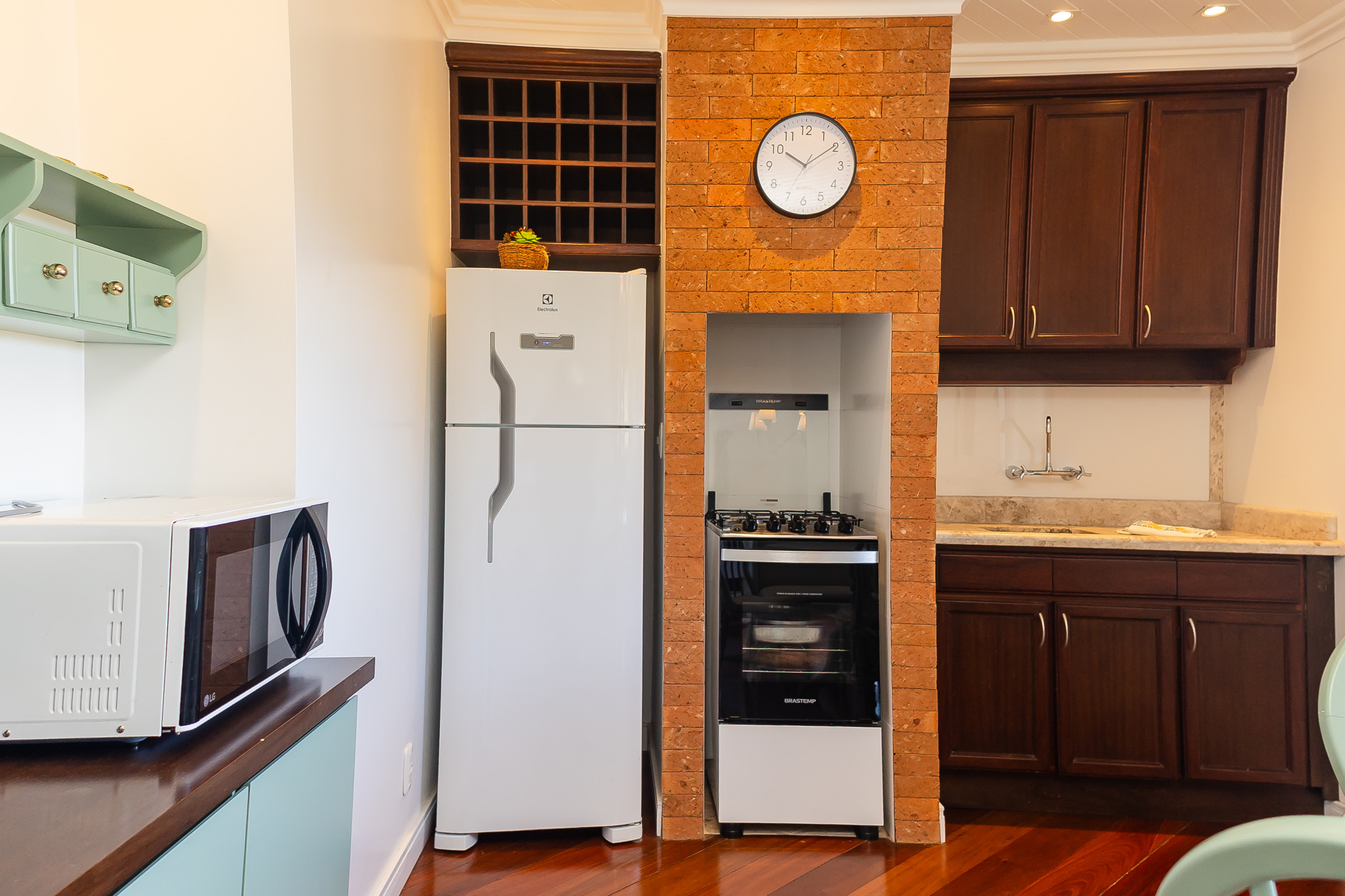 A cozinha americana completamente equipada é um verdadeiro ponto alto da propriedade. Com geladeira, freezer, forno, microondas, máquina de café, liquidificador e todos os utensílios necessários, você terá liberdade para preparar refeições deliciosas e momentos especiais em família.
