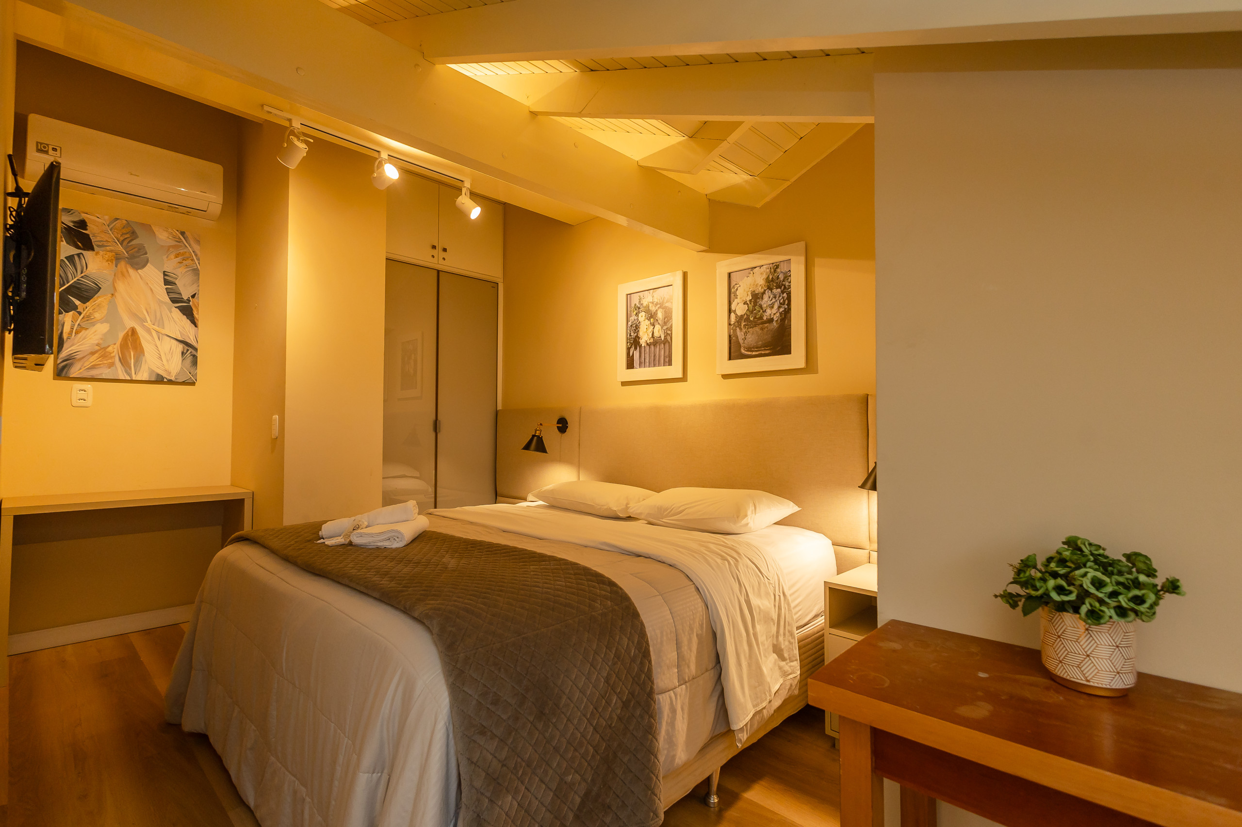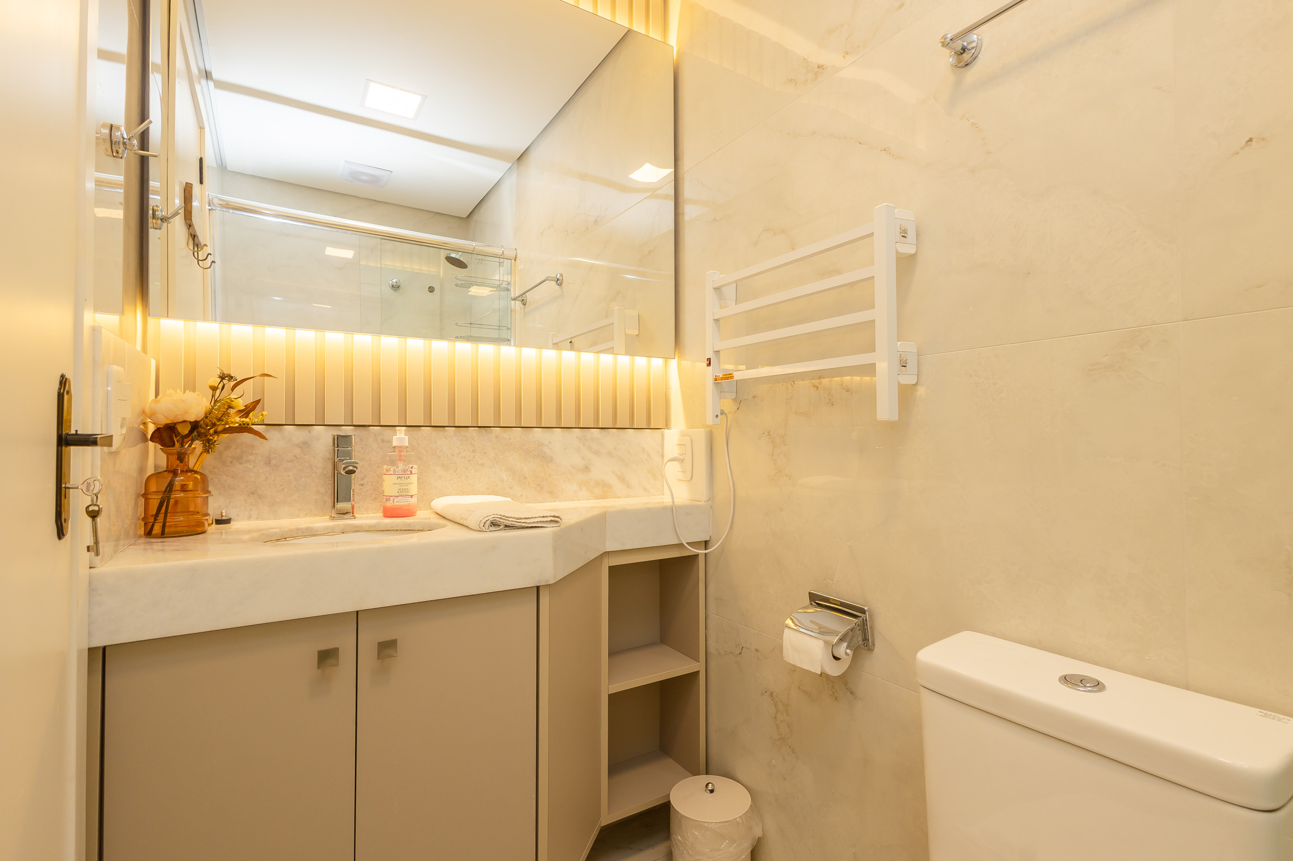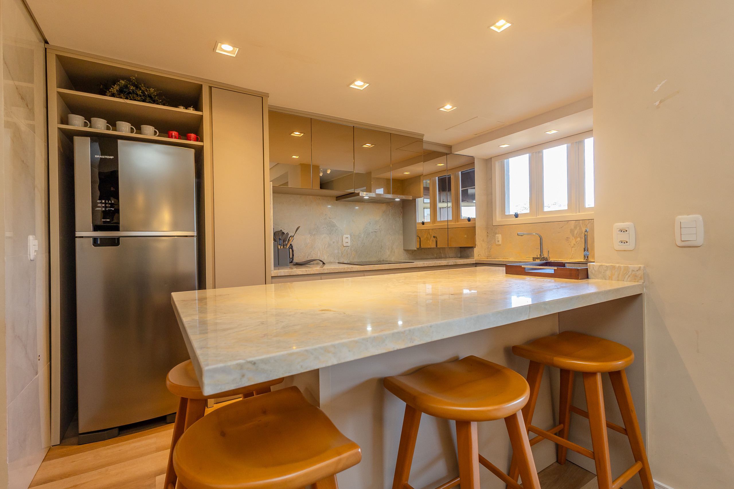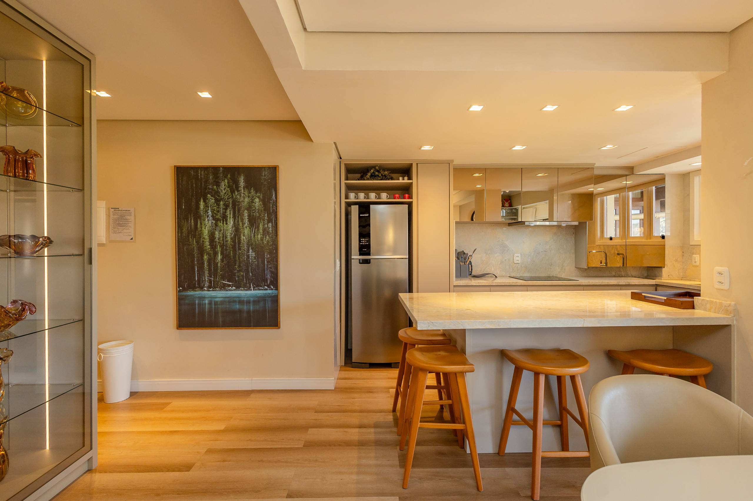 São 4 quartos e 4 banheiros (sendo 3 suítes, um dorm. e 1 banho social completo) climatizados com split Q/F e smart TV. Também conta com living climatizado com 4 ambientes (estar, jantar, cozinha americana completa e varanda fechada com vista para praça) com lareira e churrasqueira. Você ainda terá à sua disposição lava e seca, lava-louças, internet de alta velocidade e enxoval alto padrão completo para sua estadia.