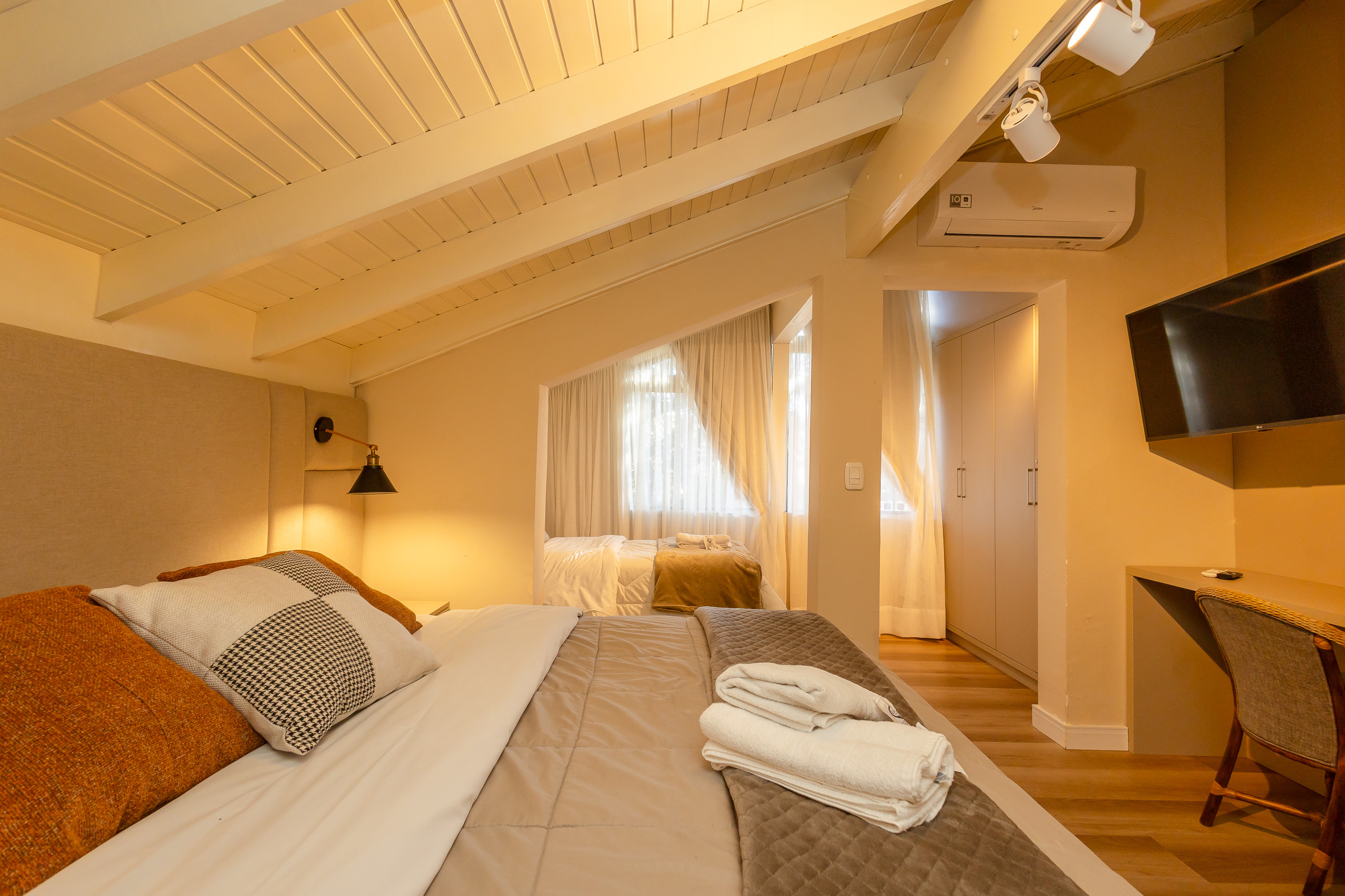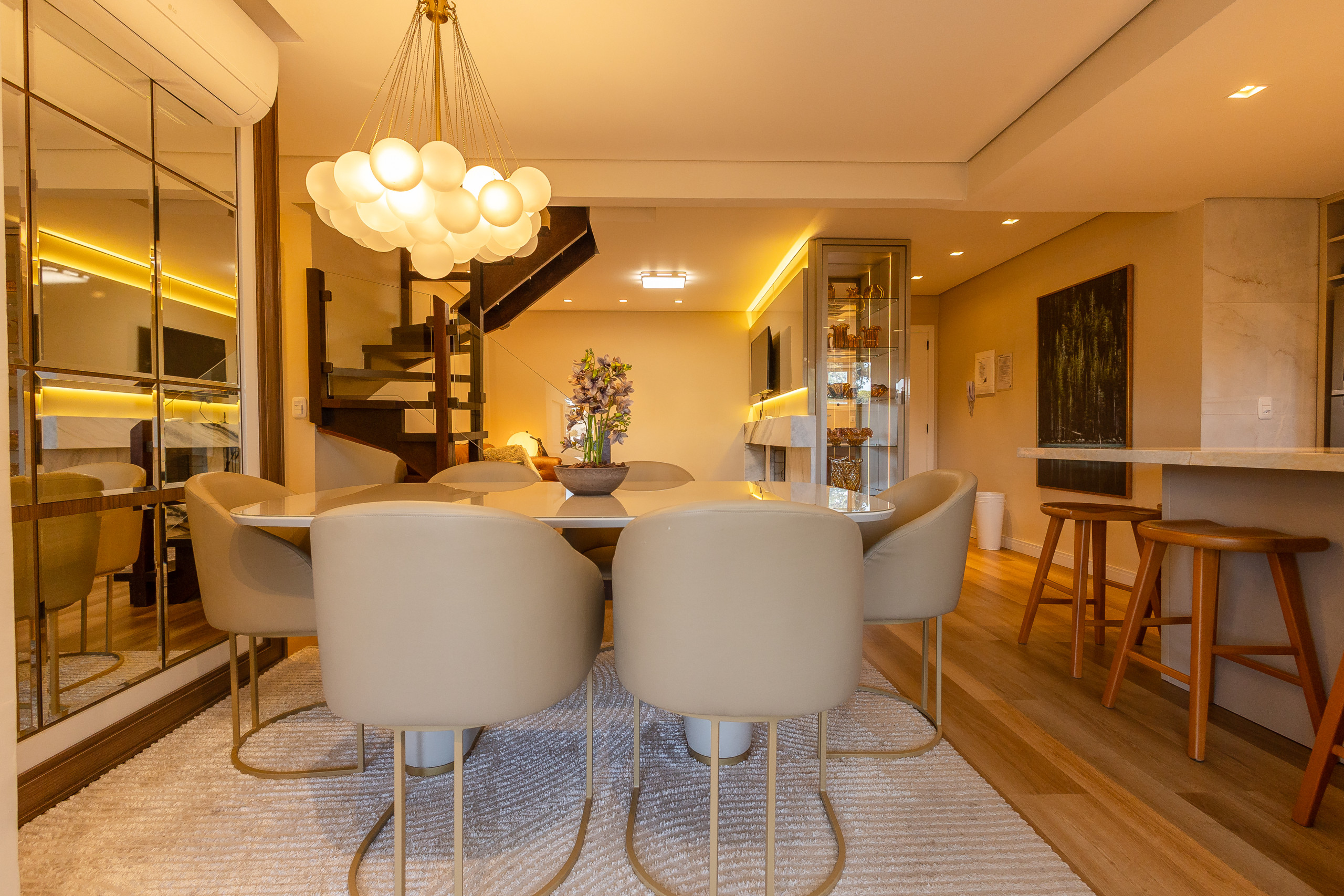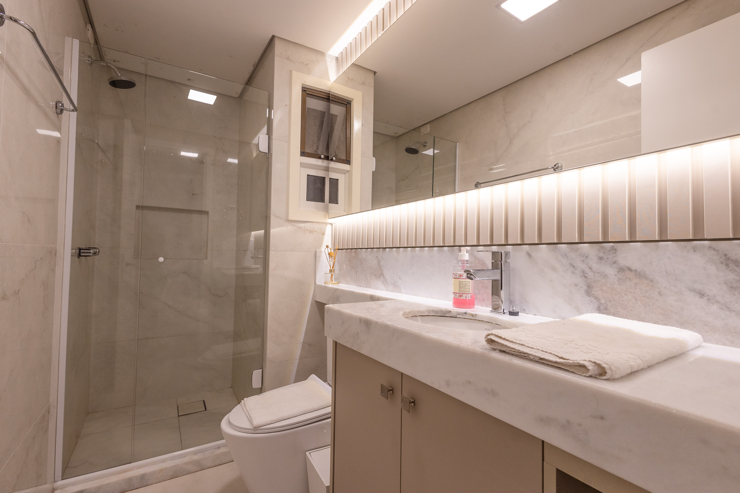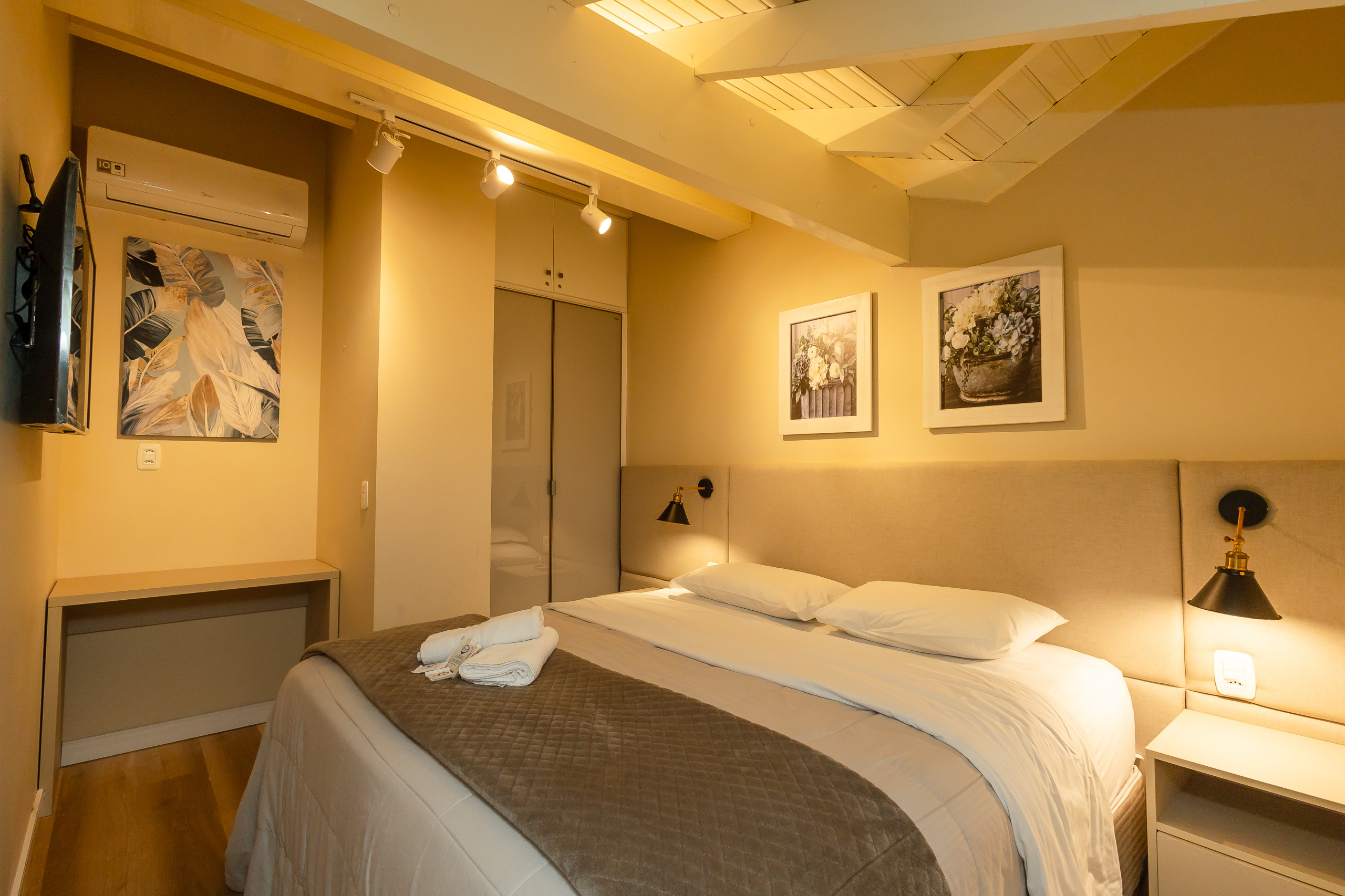 São 4 quartos e 4 banheiros (sendo 3 suítes, um dorm. e 1 banho social completo) climatizados com split Q/F e smart TV. Também conta com living climatizado com 4 ambientes (estar, jantar, cozinha americana completa e varanda fechada com vista para praça) com lareira e churrasqueira. Você ainda terá à sua disposição lava e seca, lava-louças, internet de alta velocidade e enxoval alto padrão completo para sua estadia.