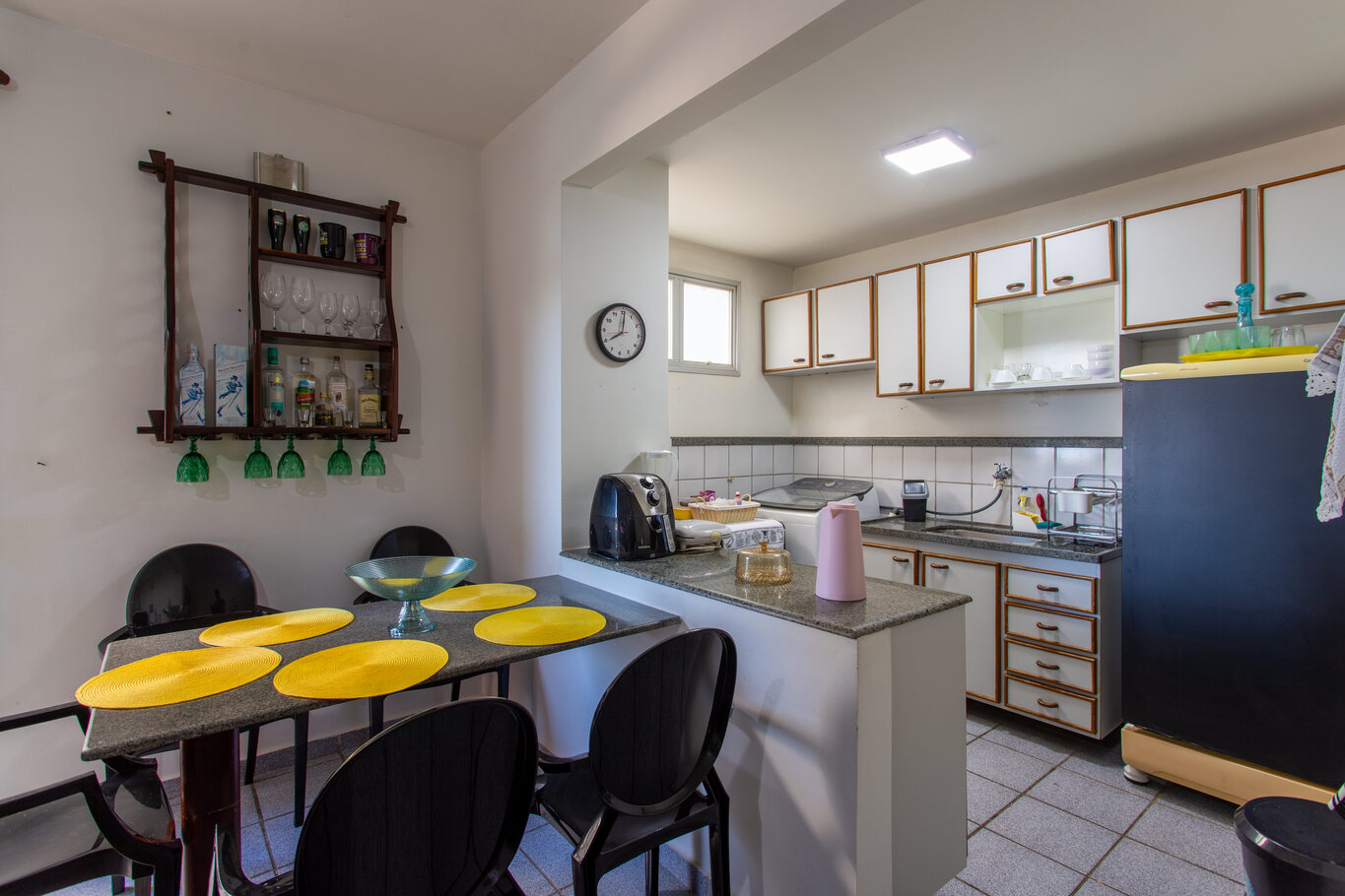 - Cozinha completa com fogão, forno, geladeira, freezer, torradeira, fritadeira, liquidificador utensílios diversos(exceto óleo e sal)