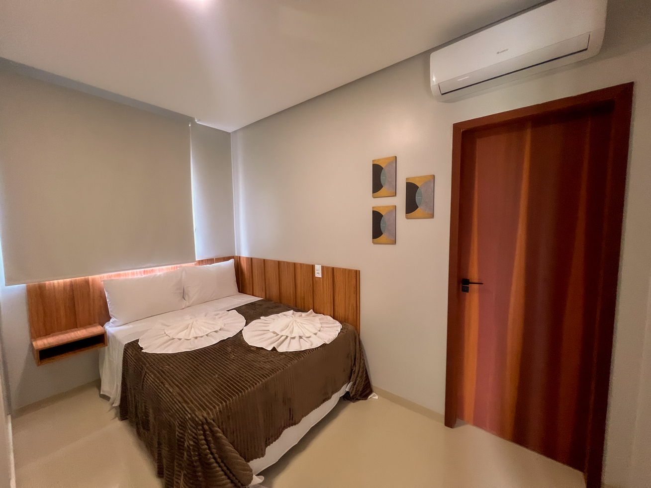 - Quarto 1(suíte): cama de casal, ar-condicionado e banheiro privativo com box de vidro