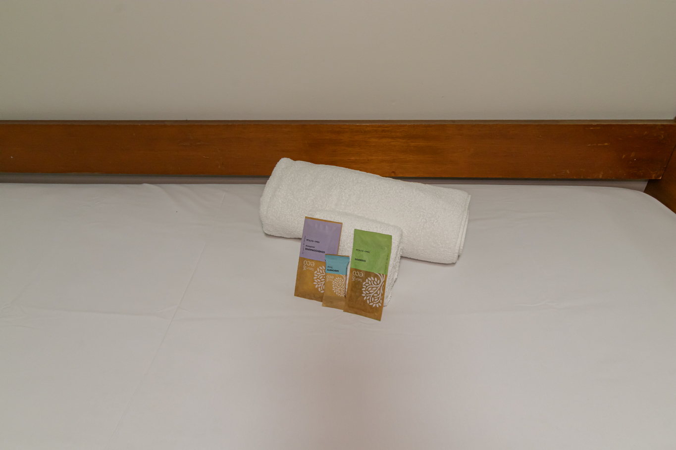 - Disponibilizamos 1 garrafa 500ml de água e kit amenities(1 sachê de shampoo e condicionador + 1 sabonete por hóspede na reserva)