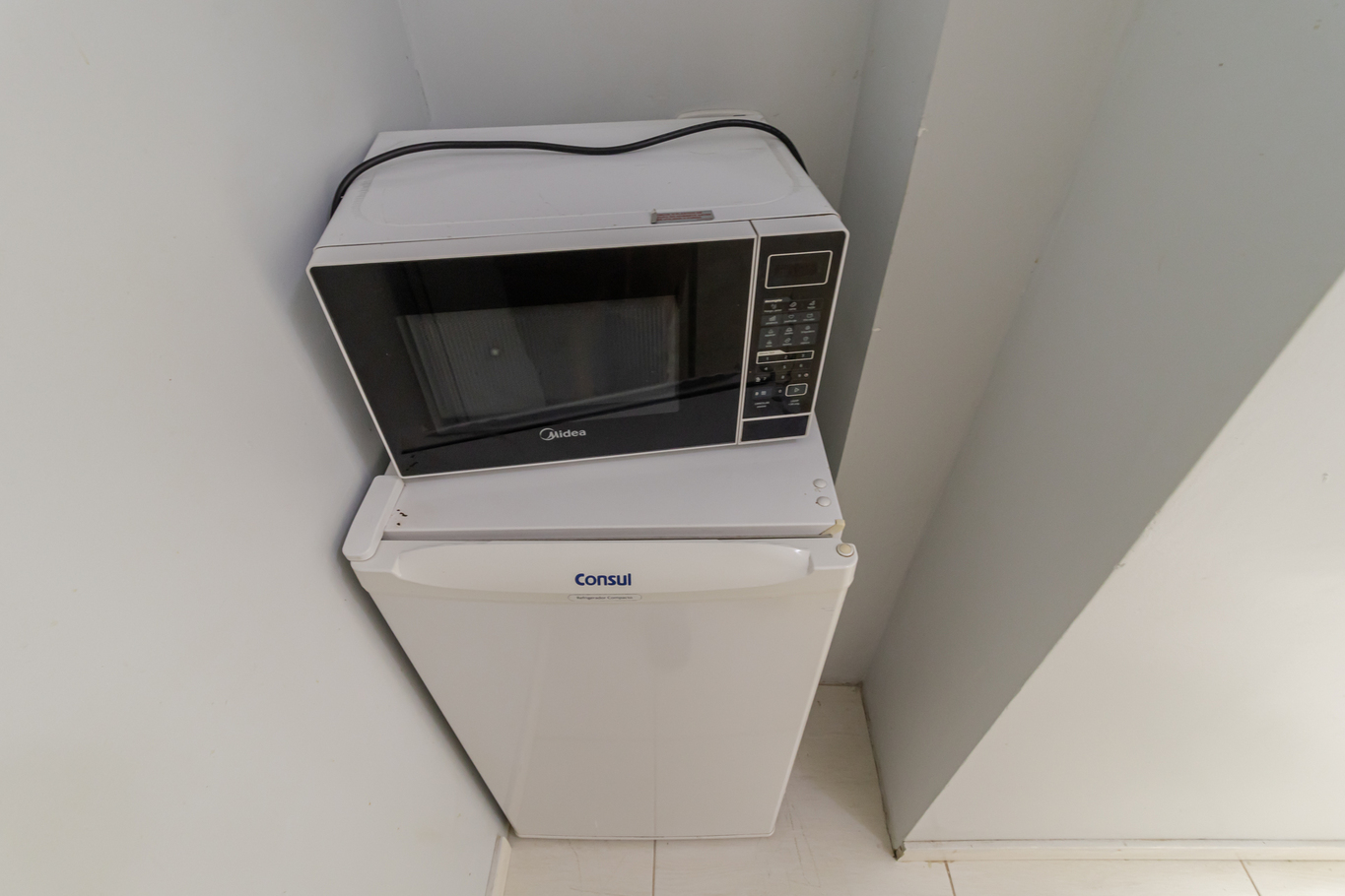 - Cozinha equipada com fogão, geladeira, microondas, pratos, copos, mesa de refeições, talheres, panelas e utensílios de cozinha(exceto óleo e sal)