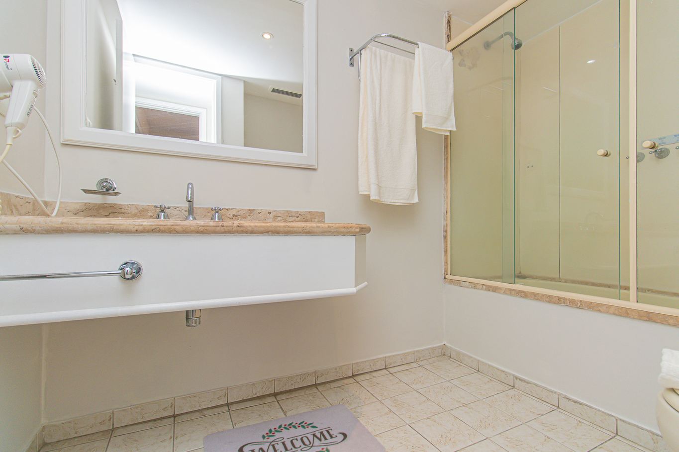 - Suíte confortável com cama de casal, ar-condicionado e banheiro privativo com banheira