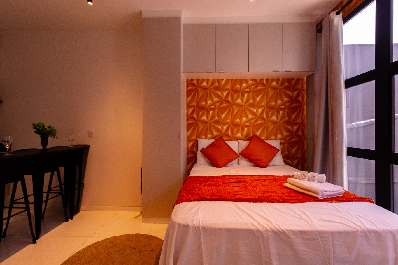 - Quarto com cama de casal, ar-condicionado e armário