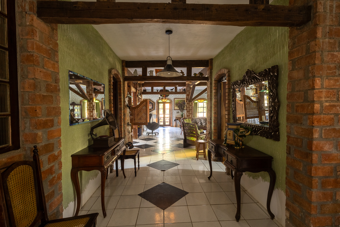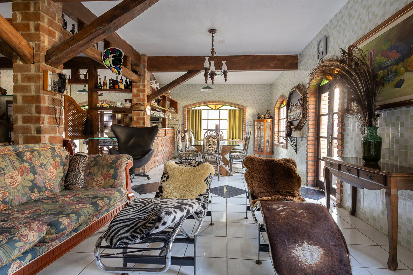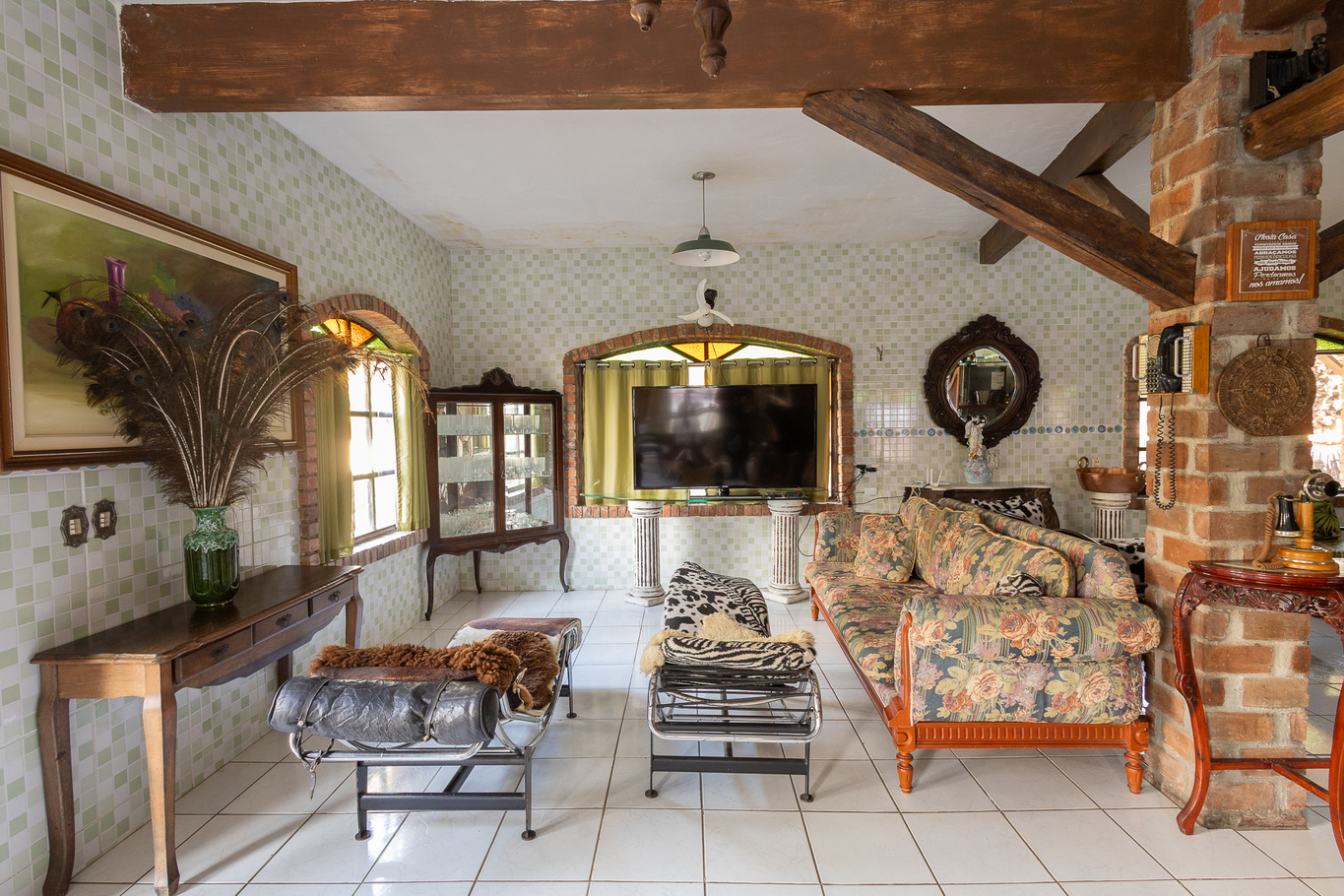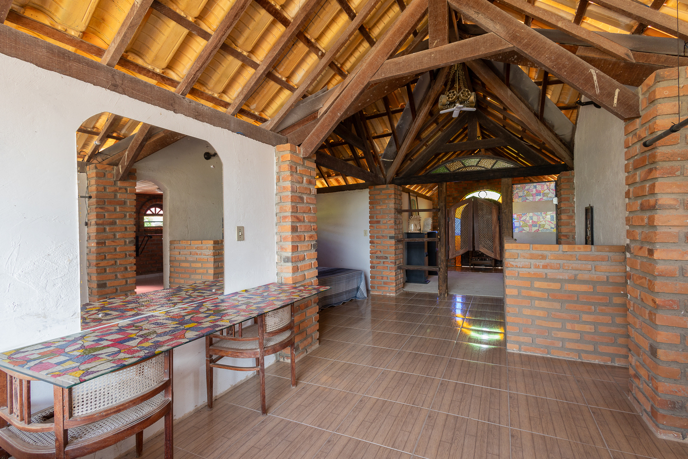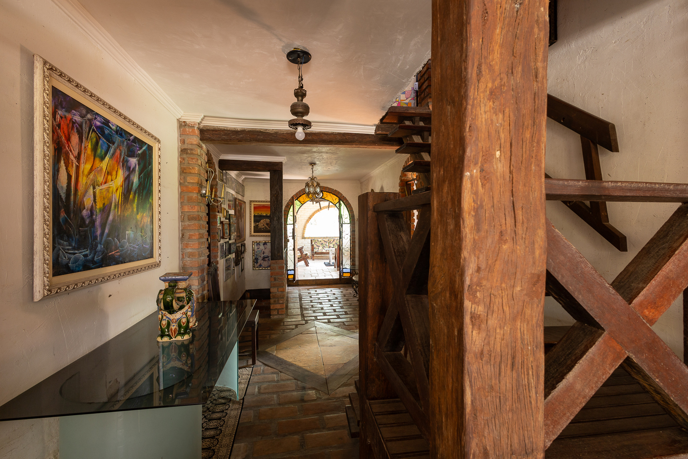 - Decoração artística com peças de madeira e vitrais únicos