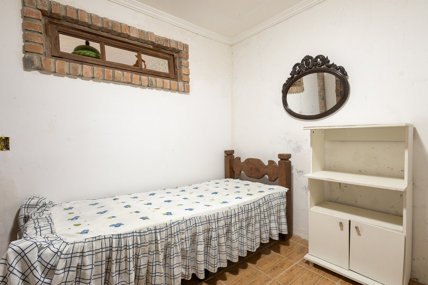 - Quarto 7: cama de solteiro, armário e ventilador de teto