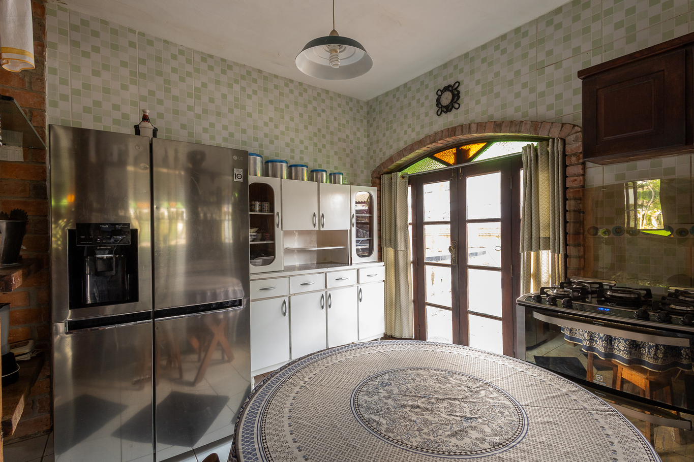 - Cozinha equipada com fogão, forno, geladeira, microondas, fritadeira, liquidificador, louças, tábuas de corte, balcão, mesa para refeições e utensílios diversos(exceto óleo e sal)