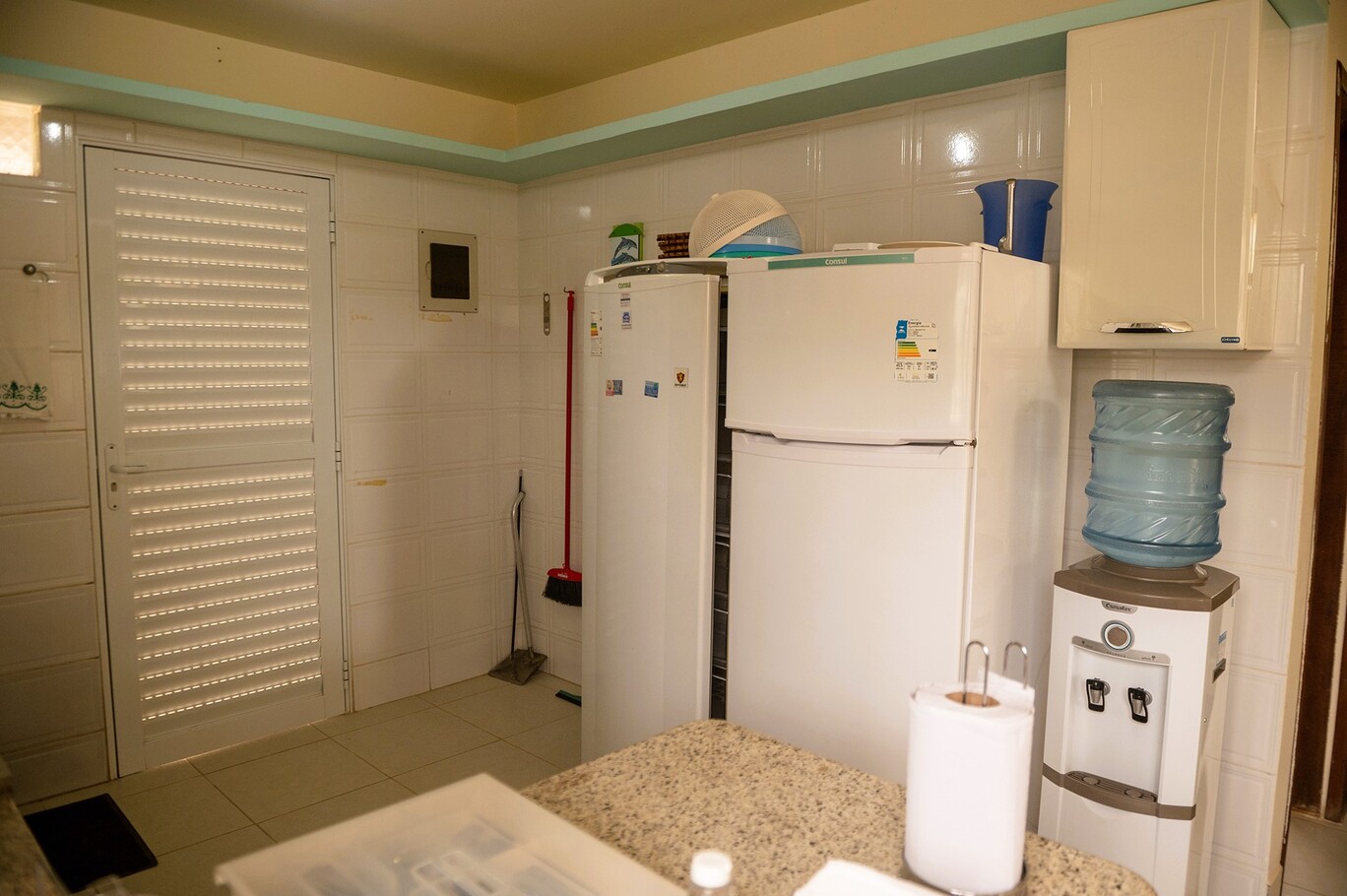 - A cozinha é totalmente equipada com diversos utensílios, incluindo fogão, forno, geladeira, liquidificador e micro-ondas (exceto sal, pimenta e óleo)