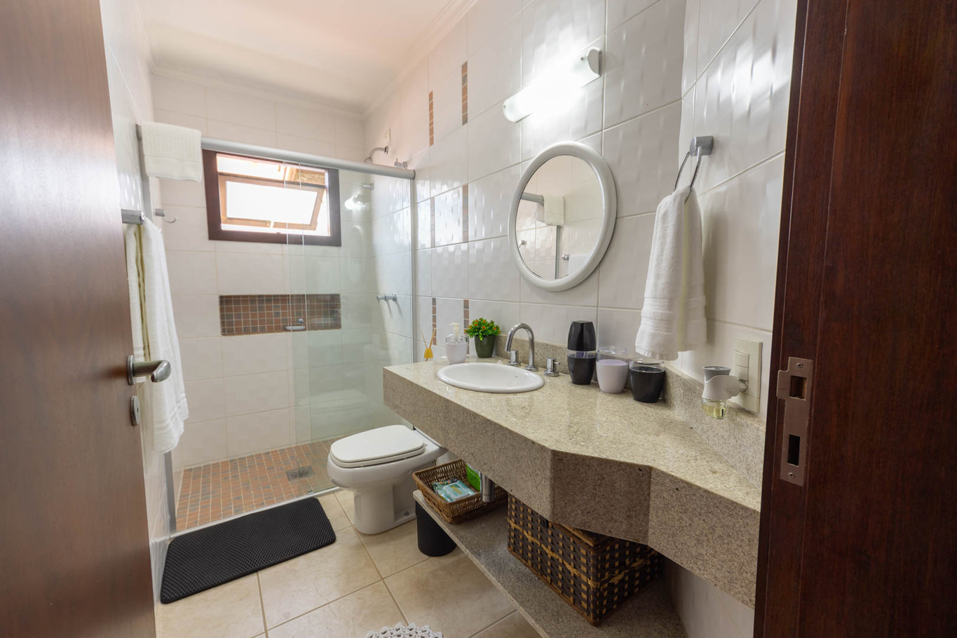 - 3 banheiros sociais (dois sem box e um com box de vidro).
