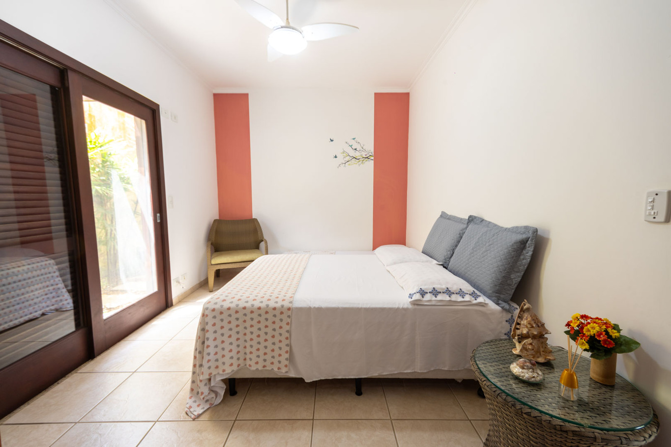 - Quarto 3 (mezanino): cama queen size, armário, ventilador de teto.