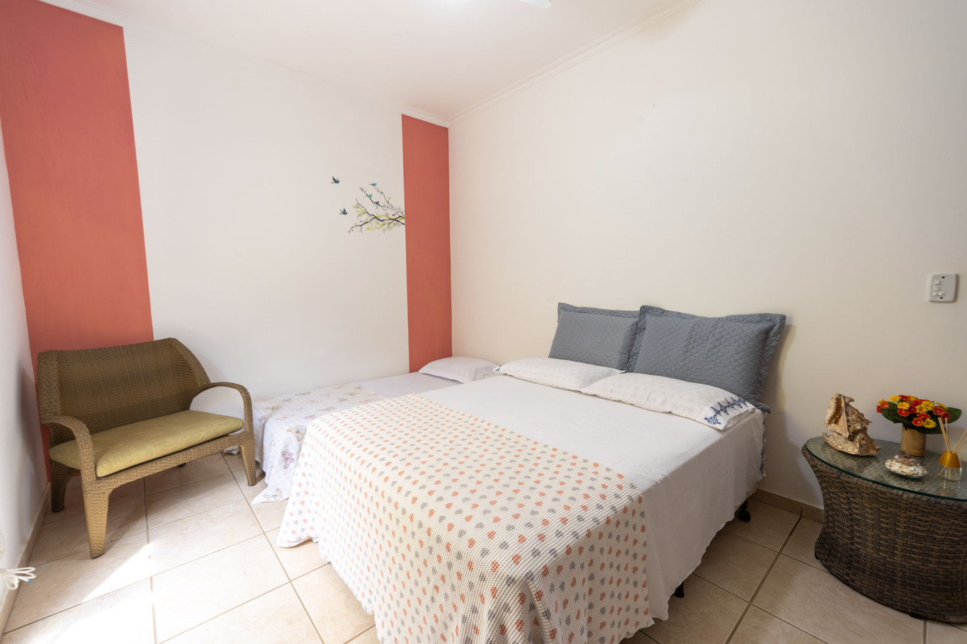 - Suíte 2: cama de casal, armário, ventilador de teto, banheiro privativo com chuveiro elétrico (sem box).