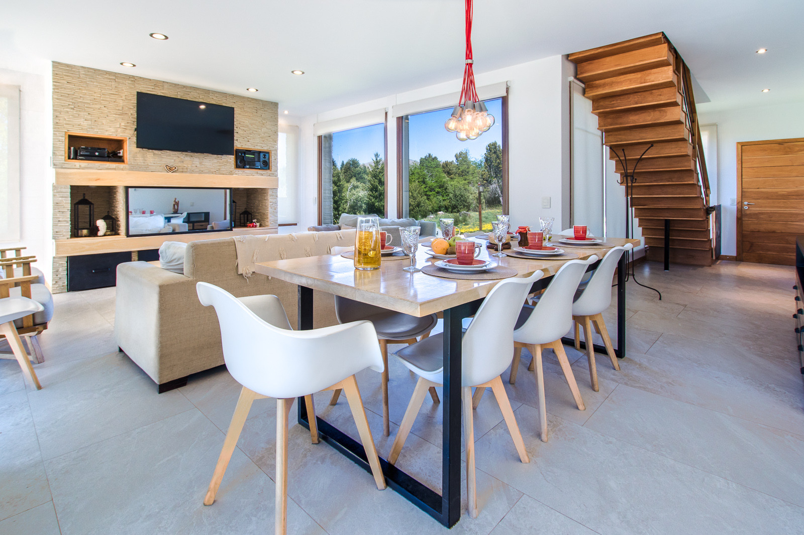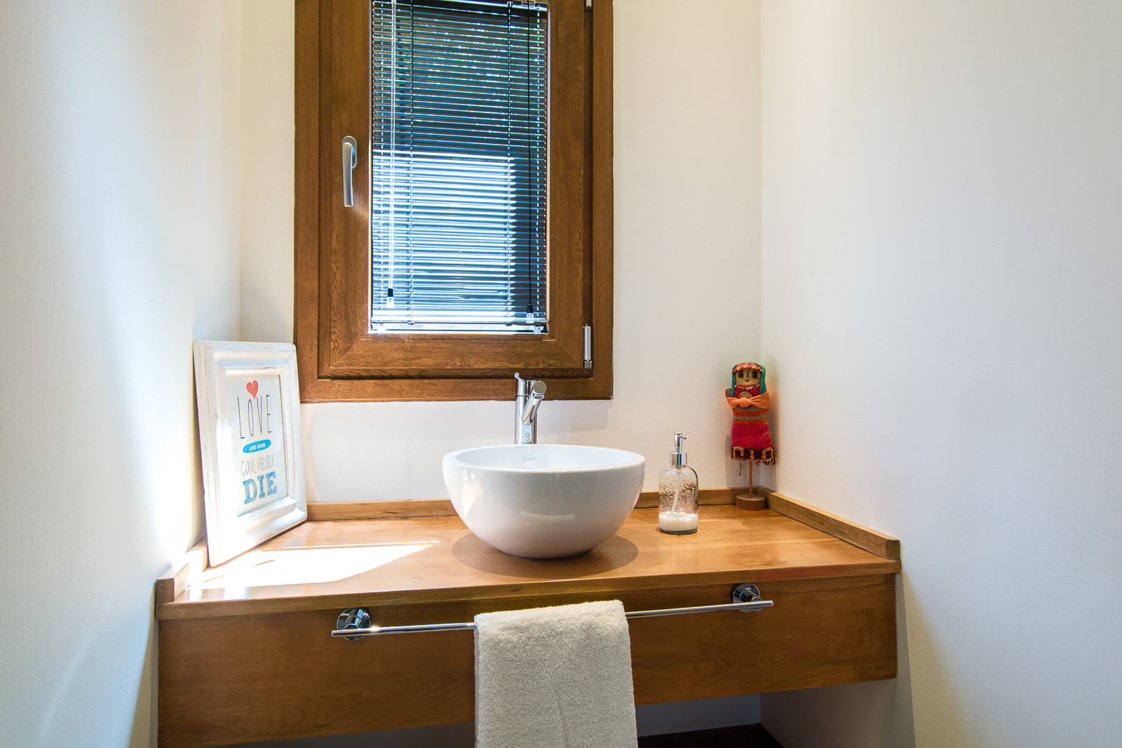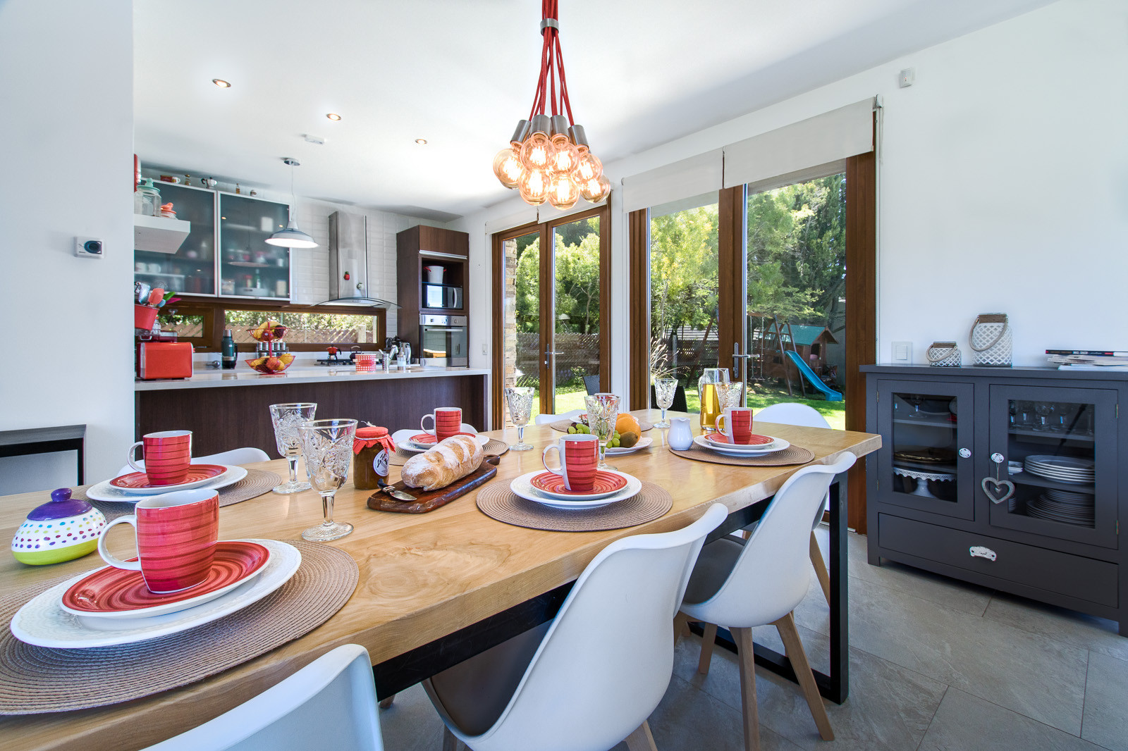 "Casa Familiar é uma casa ideal para famílias, com 4 quartos: um com cama de casal, um com cama de solteiro com cama auxiliar, um com beliches e um no andar térreo com um sofá-cama (cama com cama auxiliar). Inclui 2 banheiros completos, um lavabo, uma cozinha totalmente equipada com área de lavanderia, máquina de lavar e secadora. A sala de estar e jantar possui uma churrasqueira disfarçada atrás de um espelho, realmente prática. O jardim é ideal para desfrutar de uma piscina aquecida e brinquedos para crianças."