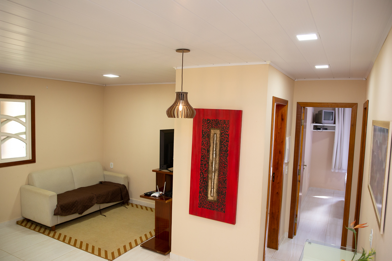 - Quarto 2(suíte): 1 cama de casal, ar-condicionado, smart TV, armário e banheiro privativo com box de vidro e chuveiro elétrico