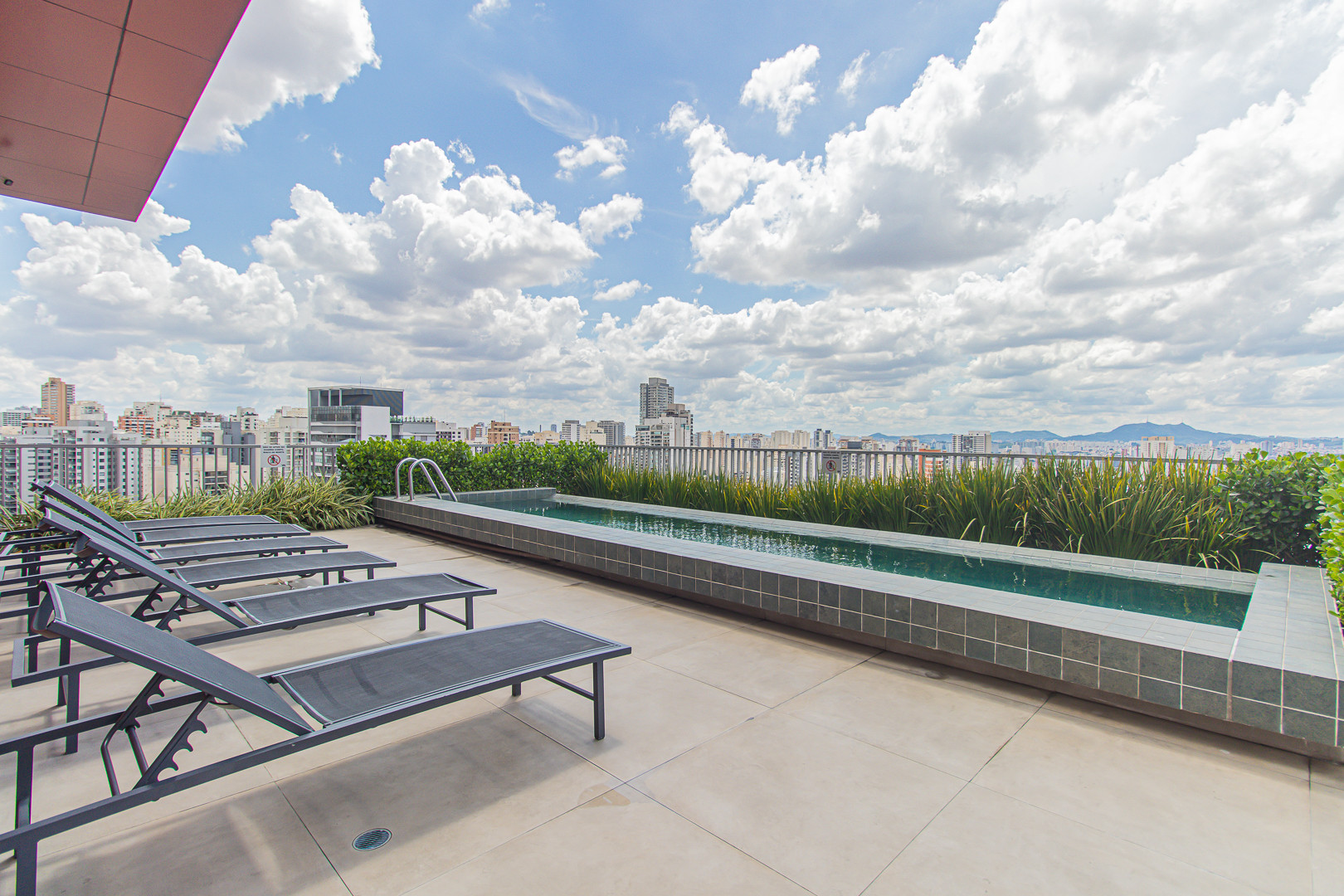 O edifício da acomodação oferece excelente infraestrutura, com piscina e cozinha compartilhada no 24º andar, além de lavanderia, academia e coworking no 5º andar.
