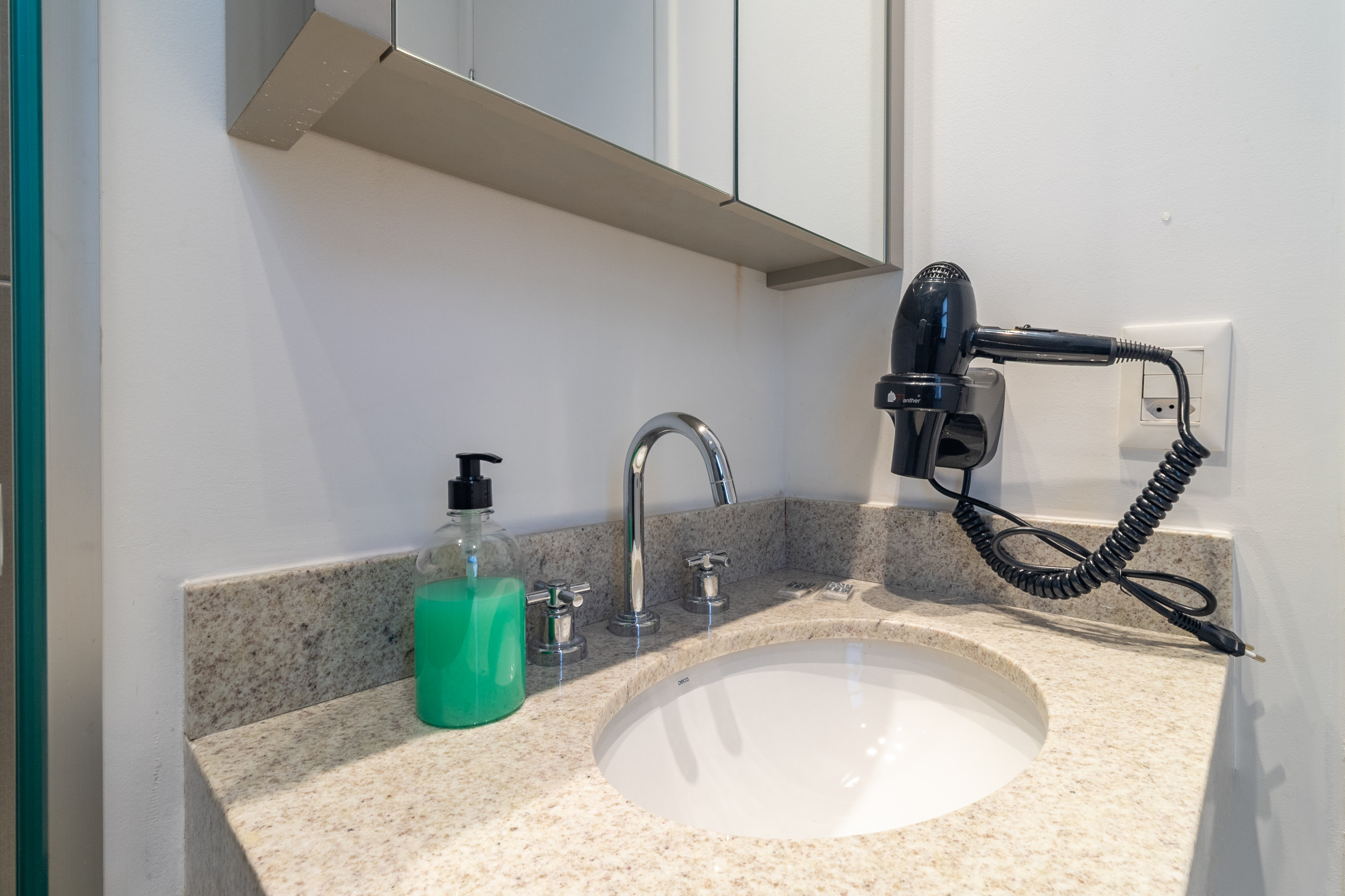 Dispõe de elevador, máquina de lavar roupas, máquina de secar roupas, ferro de passar, acesso à internet (wifi), secador de cabelo, academia, ar-condicionado, 1 Televisão.