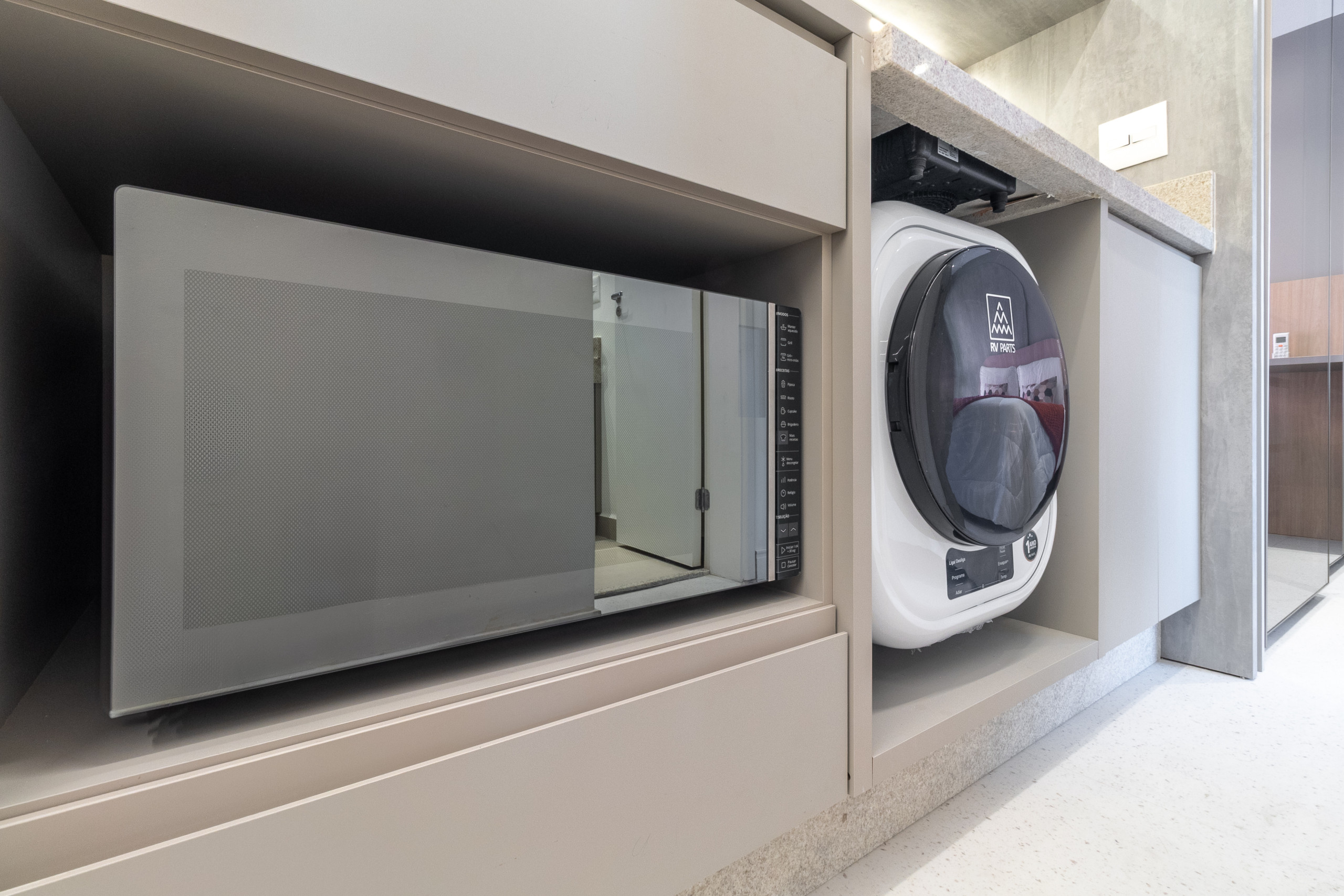 Dispõe de elevador, máquina de lavar roupas, máquina de secar roupas, ferro de passar, acesso à internet (wifi), secador de cabelo, academia, aquecimento central, ar-condicionado, 1 Televisão.