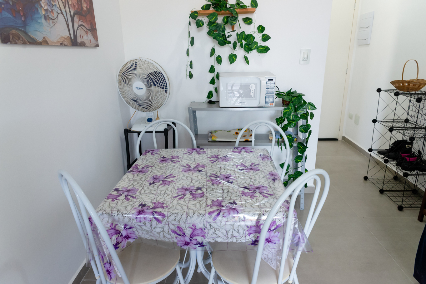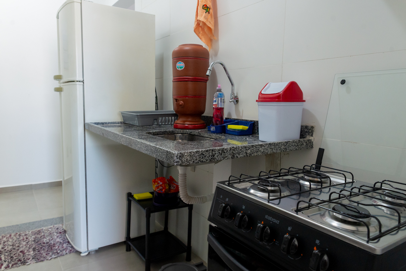- Complete kitchen with stove, oven, refrigerator, microwave, freezer, blender, strainer, thermal flask and basic utensils (except oil and salt)
