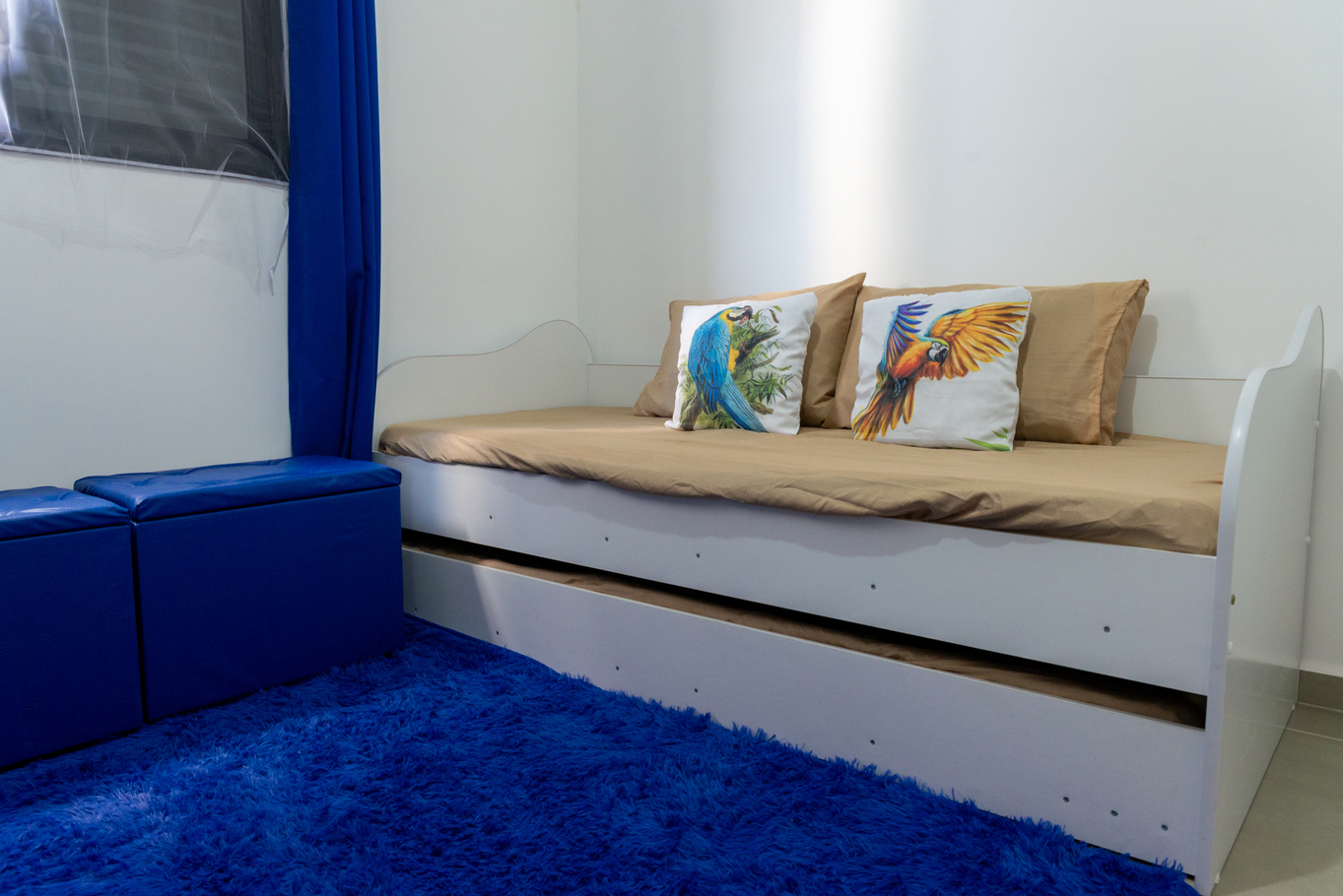 - Bedroom 2: Trundle bed and bunk bed with mattress protector and clothes rack