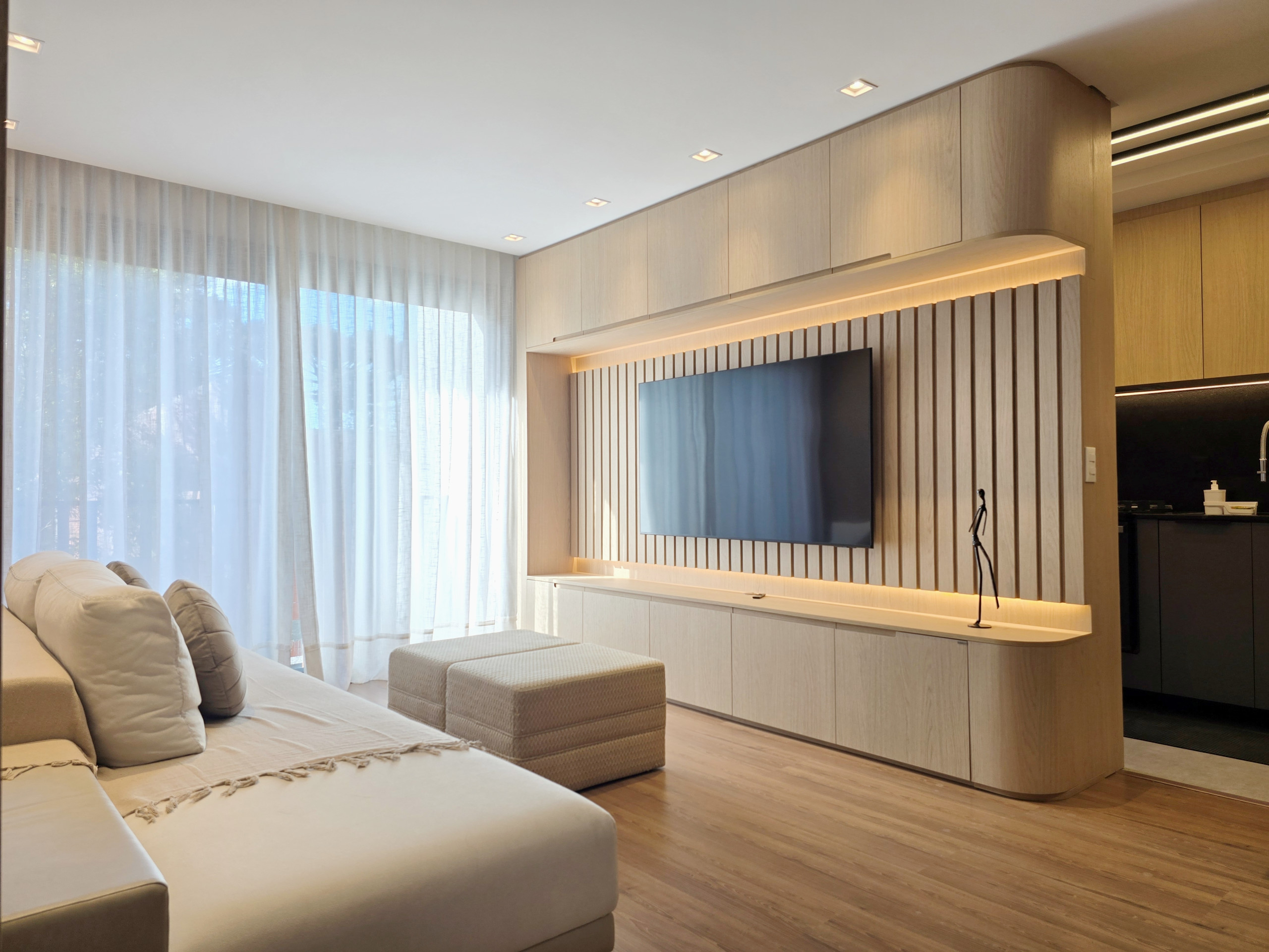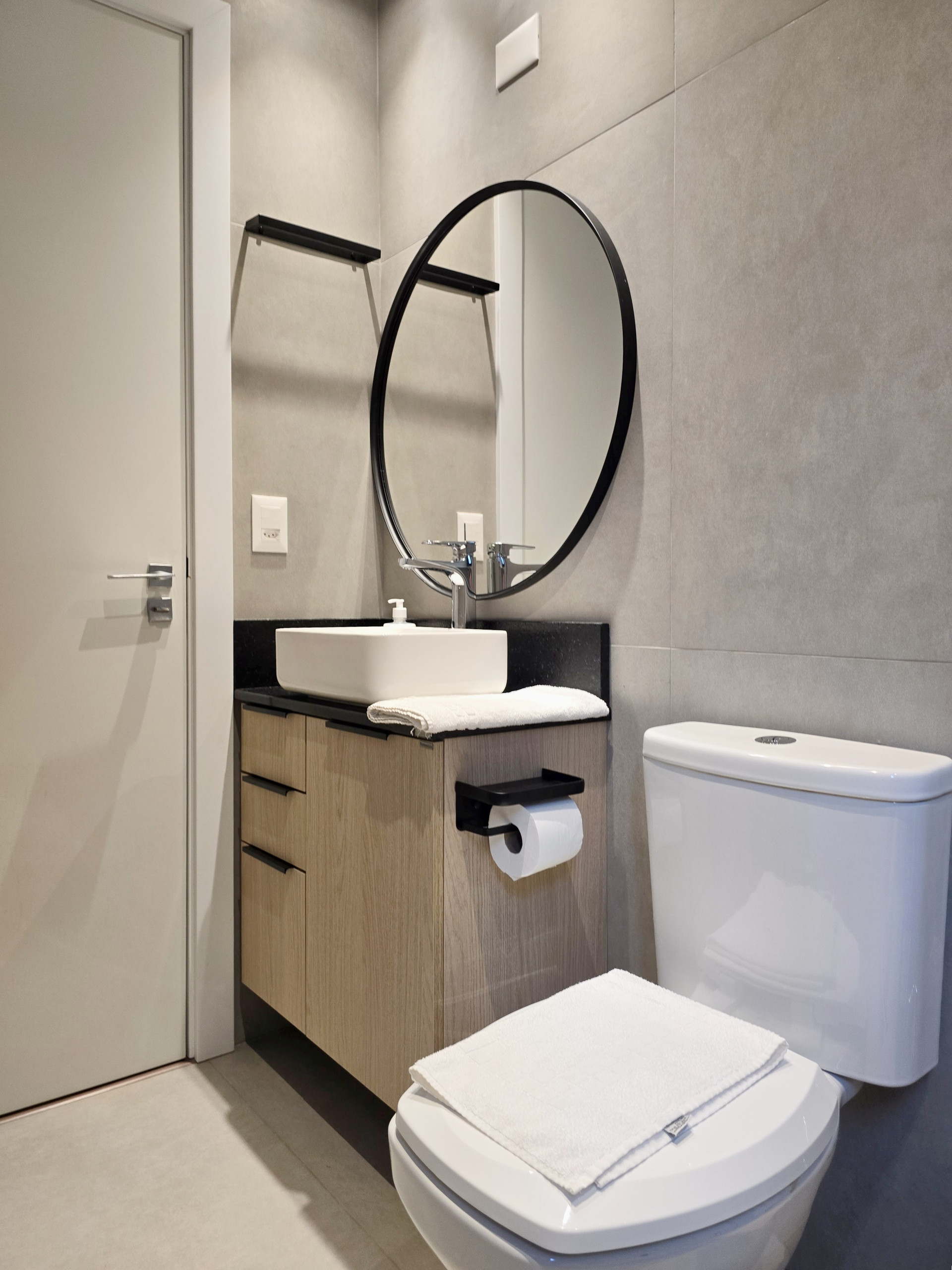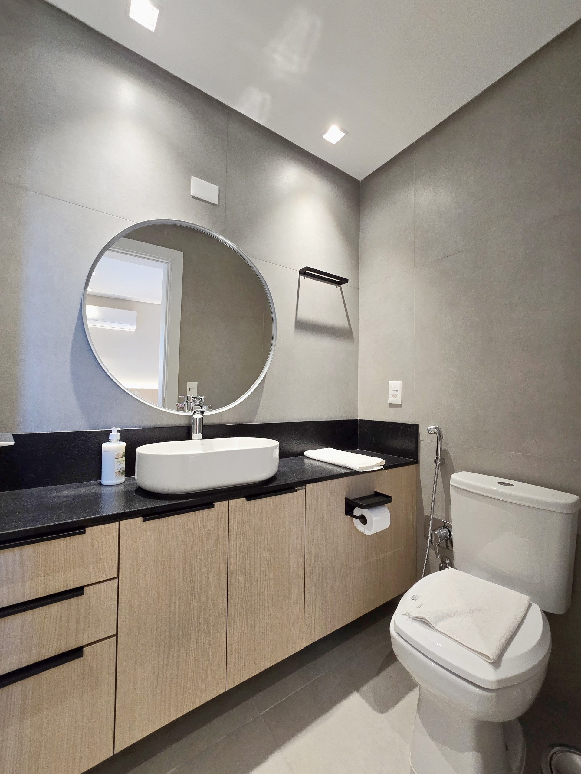 The living room has three environments (kitchen, living and dining) and a lavatory and will provide a space to enjoy moments of relaxation in group, with great taste! It also has split A/C in the living room and suites, making summer and winter days special!