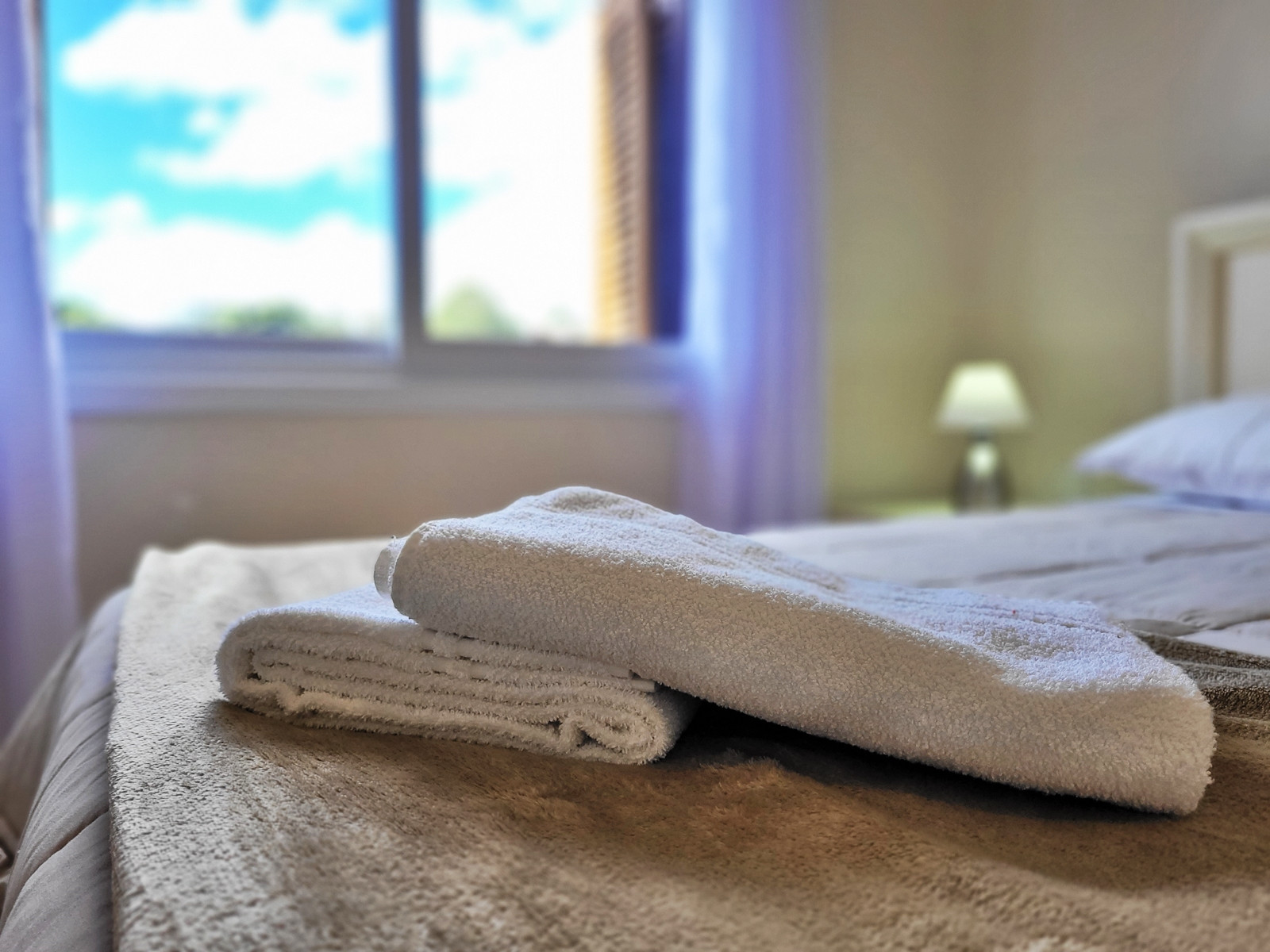 In the gas open plan kitchen, refrigerator, microwave, oven, freezer, dishes/cutlery, kitchen utensils, coffee machine, toaster, kettle and juicer are provided.