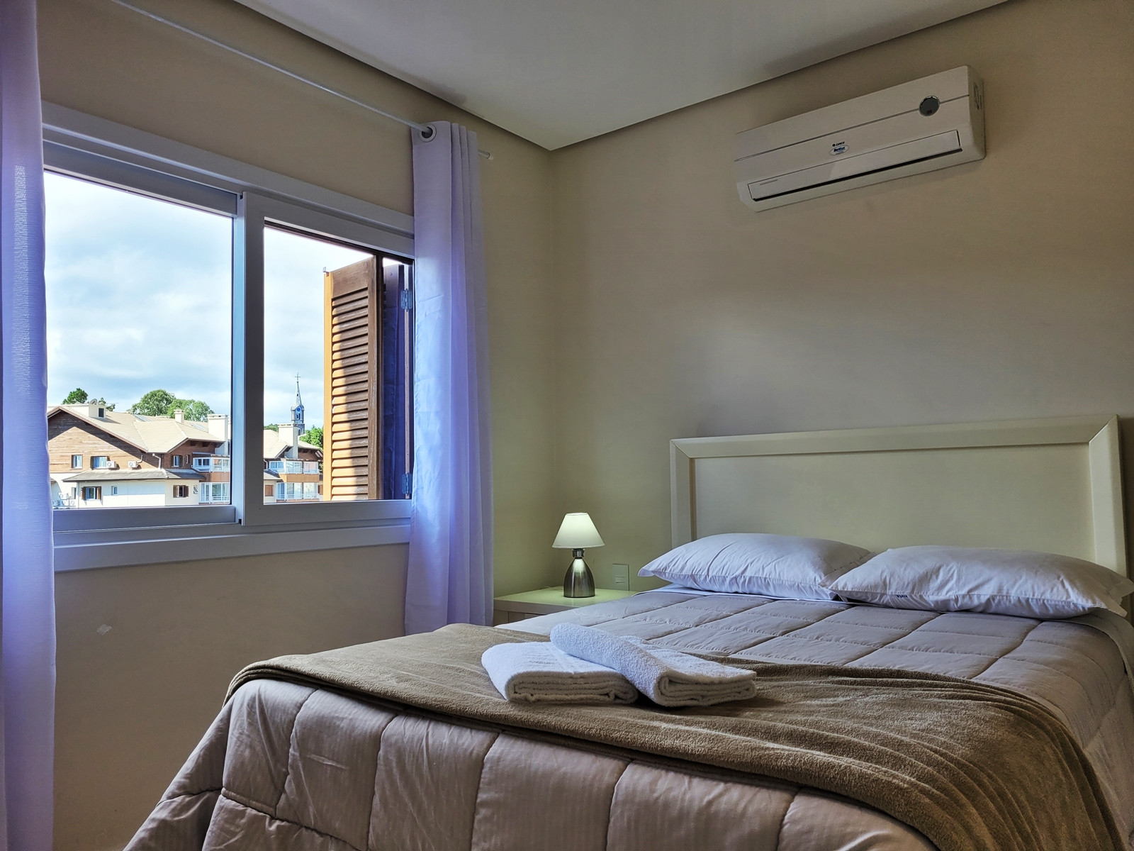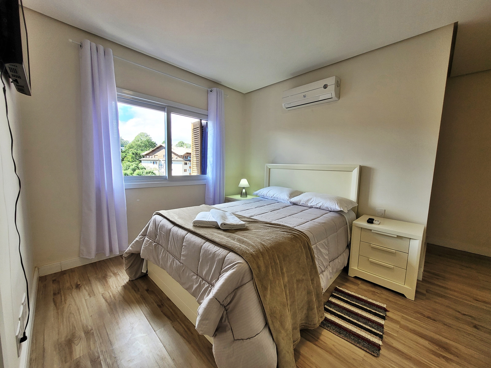 The apartment in Gramado has 2 bedrooms and has capacity for 5 people.