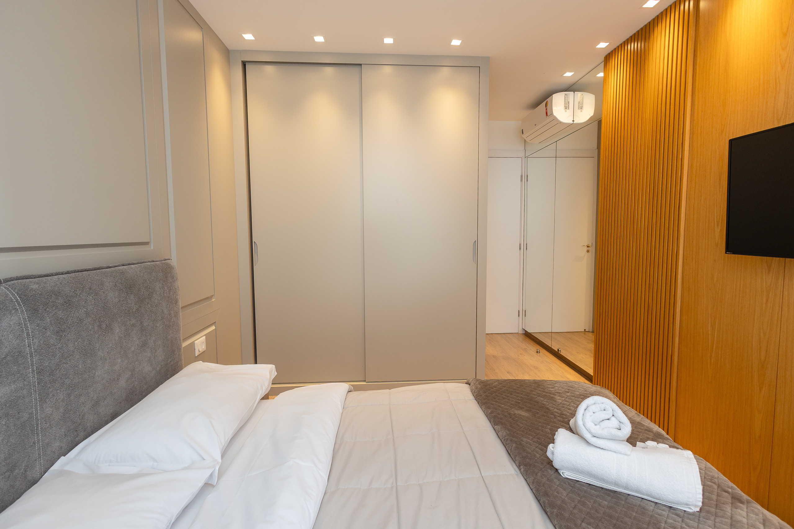 Modern apartment, decorated with great taste and care, features a living room with 2 integrated environments and a fireplace, complete kitchen with dishwasher, 2 suites, powder room. All environments are equipped with smart TV and hot/cold air conditioning. One garage space. Very beautiful and comfortable property!
