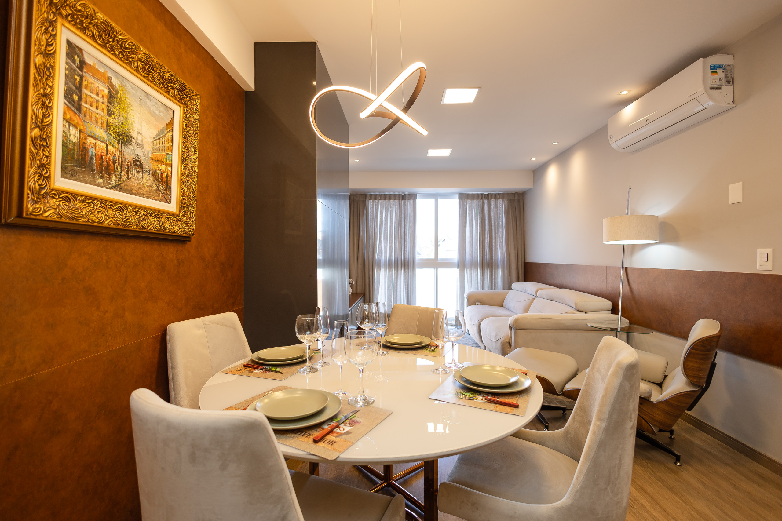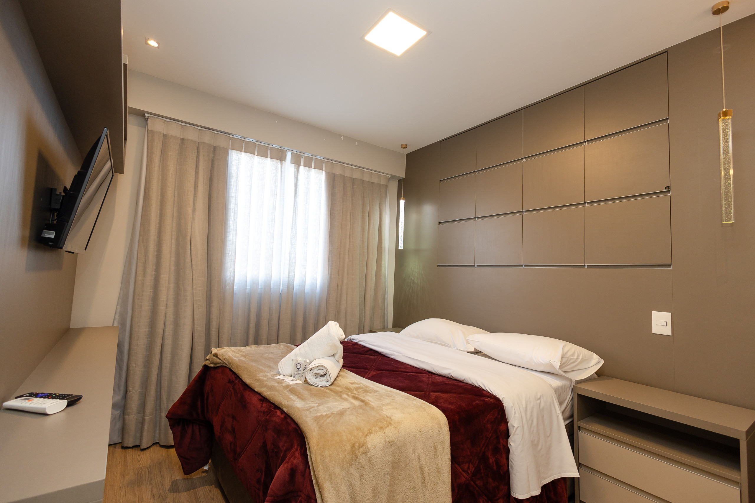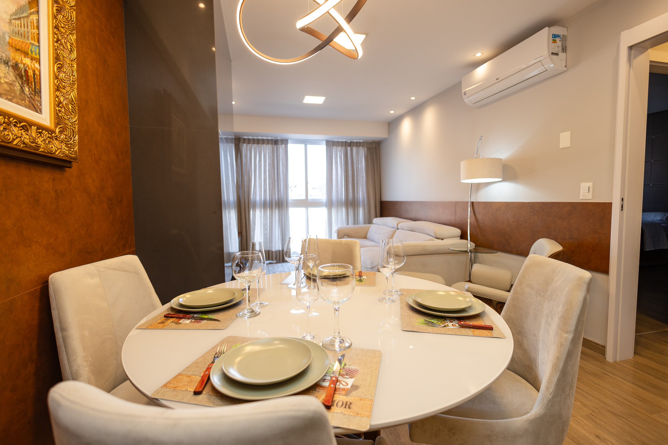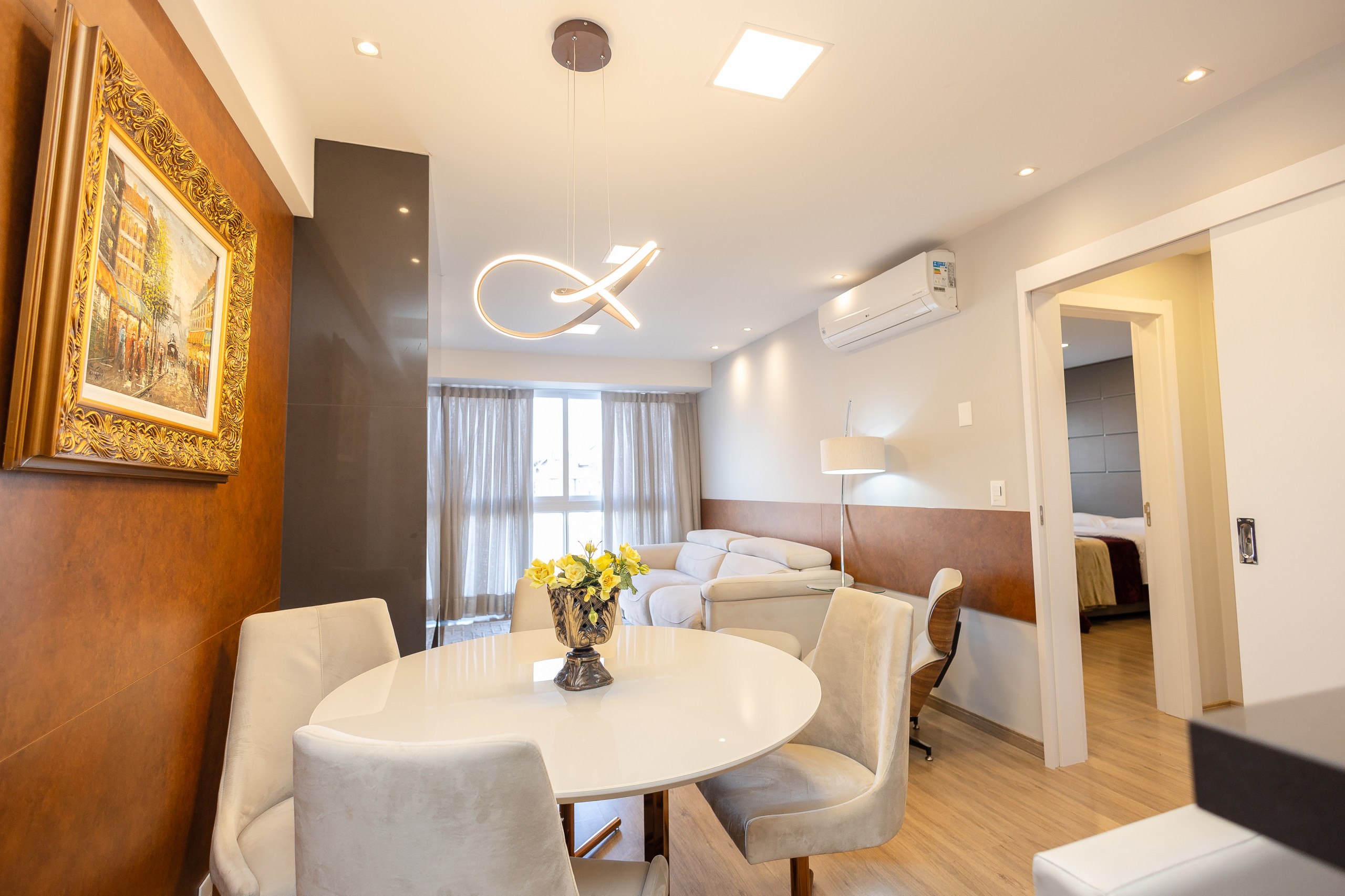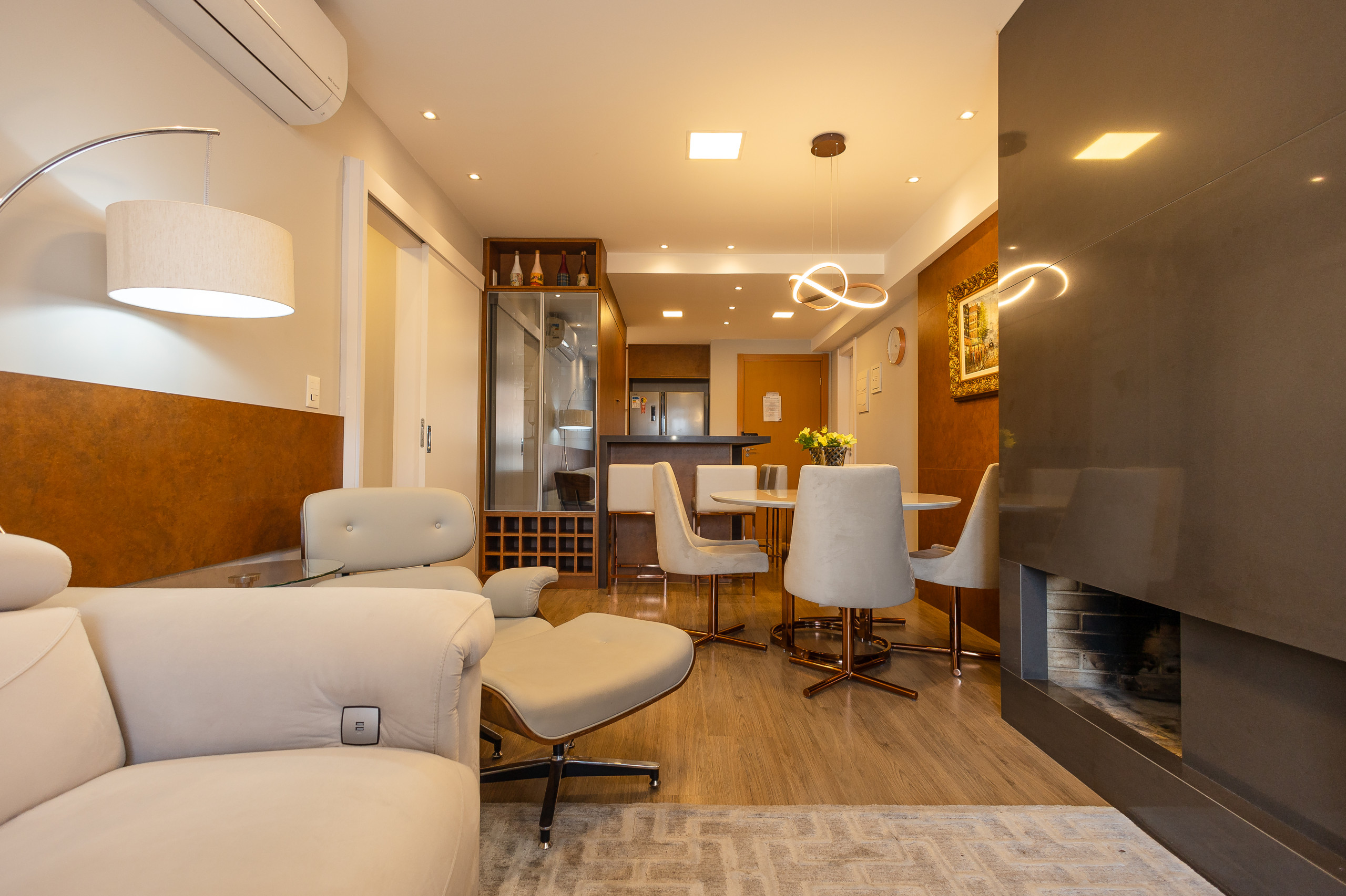 Modern apartment with 2 suites on the new Covered Street of Gramado, the Vita Boulevard. It also features a washroom, integrated living/dining area, fireplace, washer and dryer, complete kitchen, living room equipped with smart TV, hot/cold split in the suites and living room, and 1 garage space. Located in the heart of Gramado, about 4 blocks from the Covered Street (approximately 500m), it will allow you to enjoy the centre while leaving the car in the garage. Enjoy the best of life here, with restaurants, bars, cafés, markets, and shops at your feet!