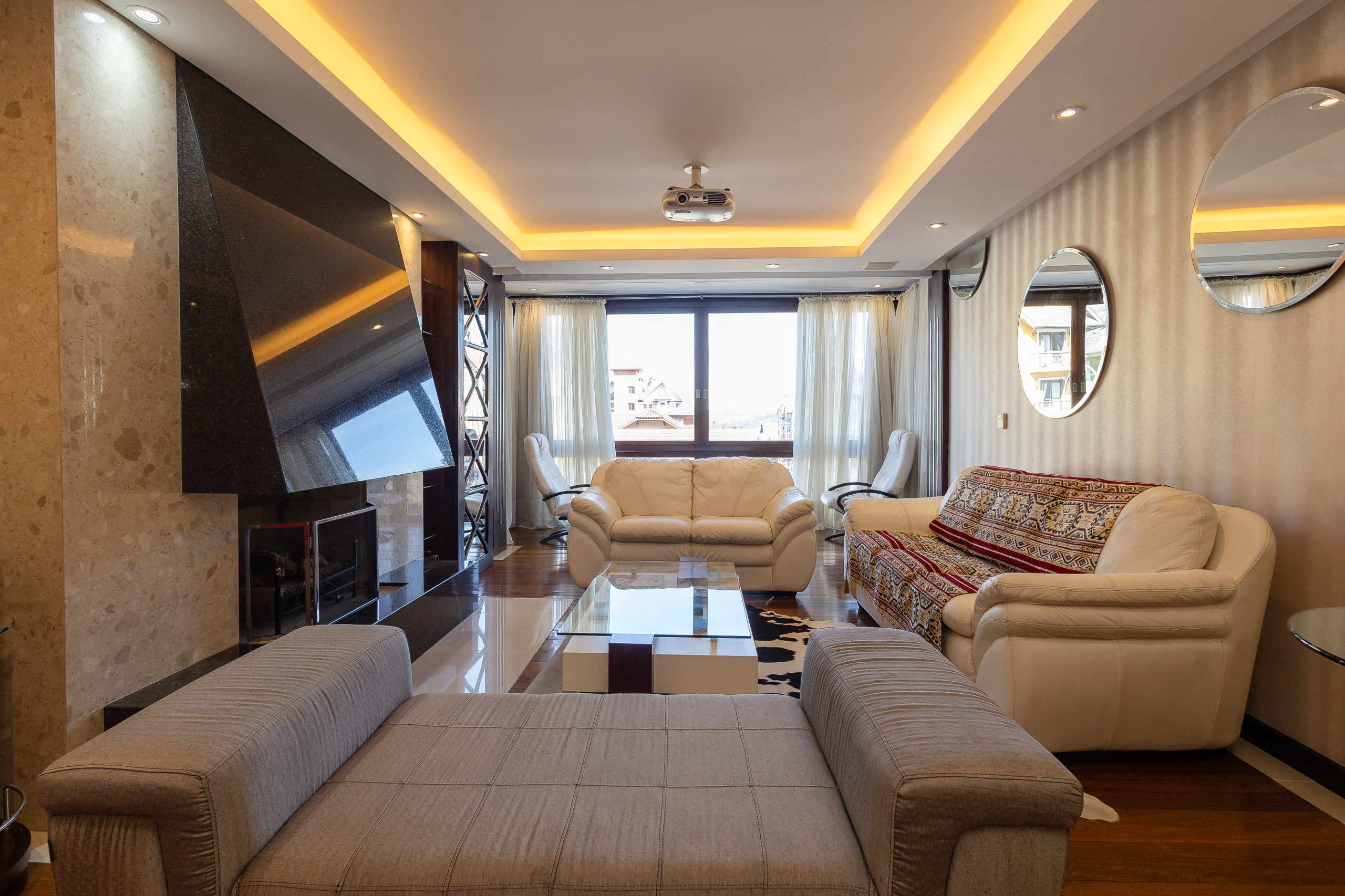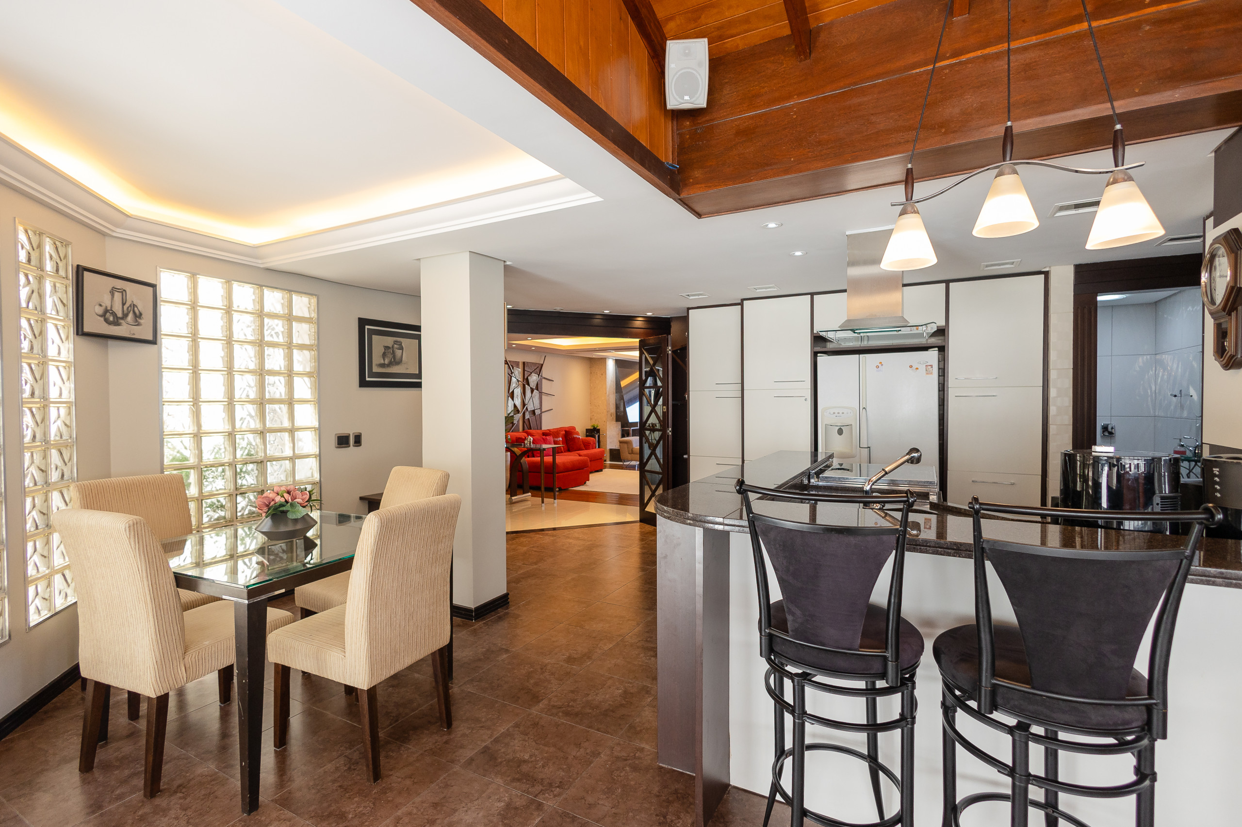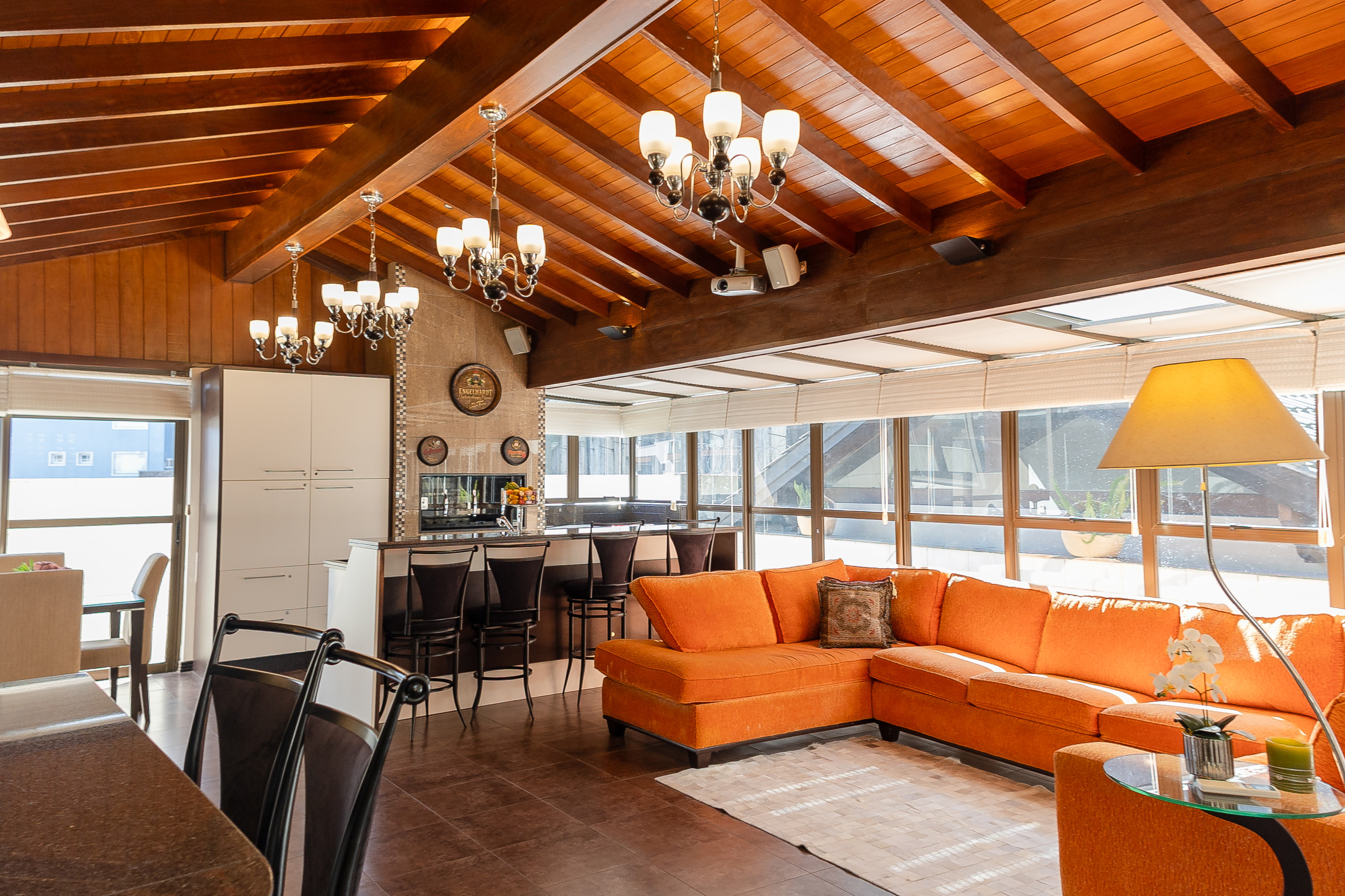 The apartment has 3 bedrooms with a view of the main avenue in the centre, with one suite featuring a walk-in closet, plus two complete social bathrooms, a powder room, and a fully equipped laundry room with washer and dryer. There are also two spacious social areas, one with a fireplace and another with a complete American kitchen, gourmet barbecue, and a large, sunny balcony. The property is complete and features split air conditioning (hot/cold) in all rooms, including bathrooms, and will be prepared with a complete trousseau for the stay.