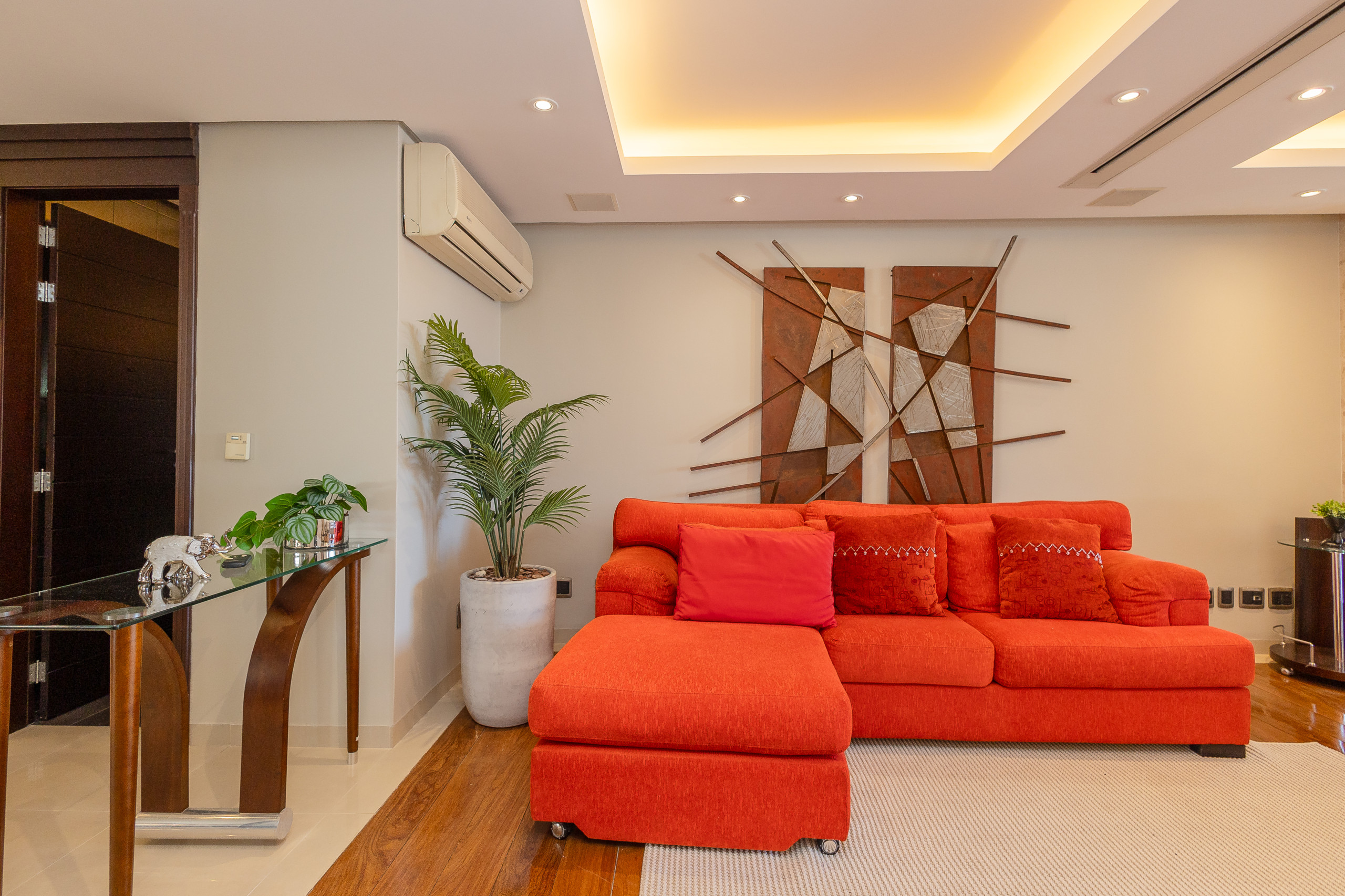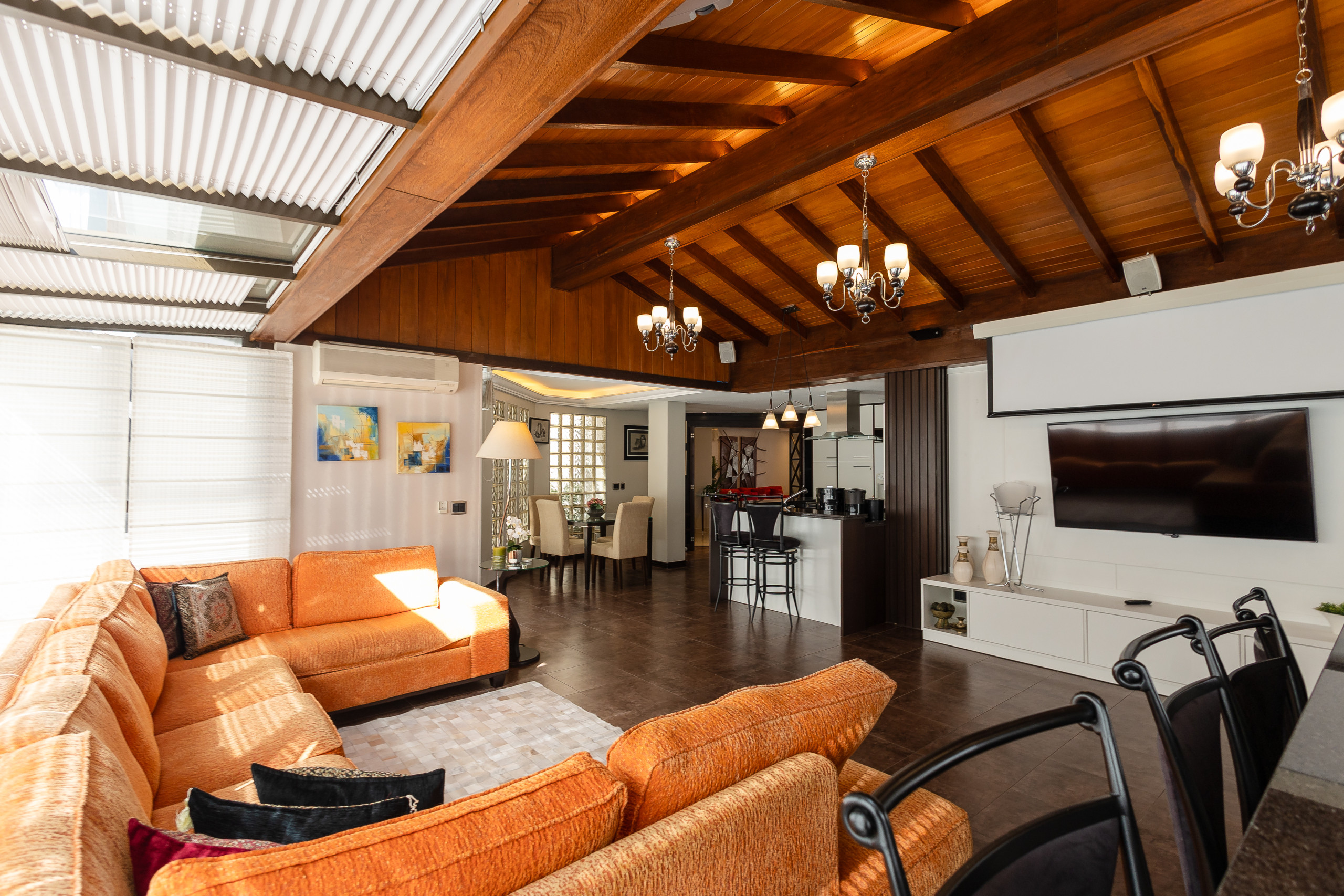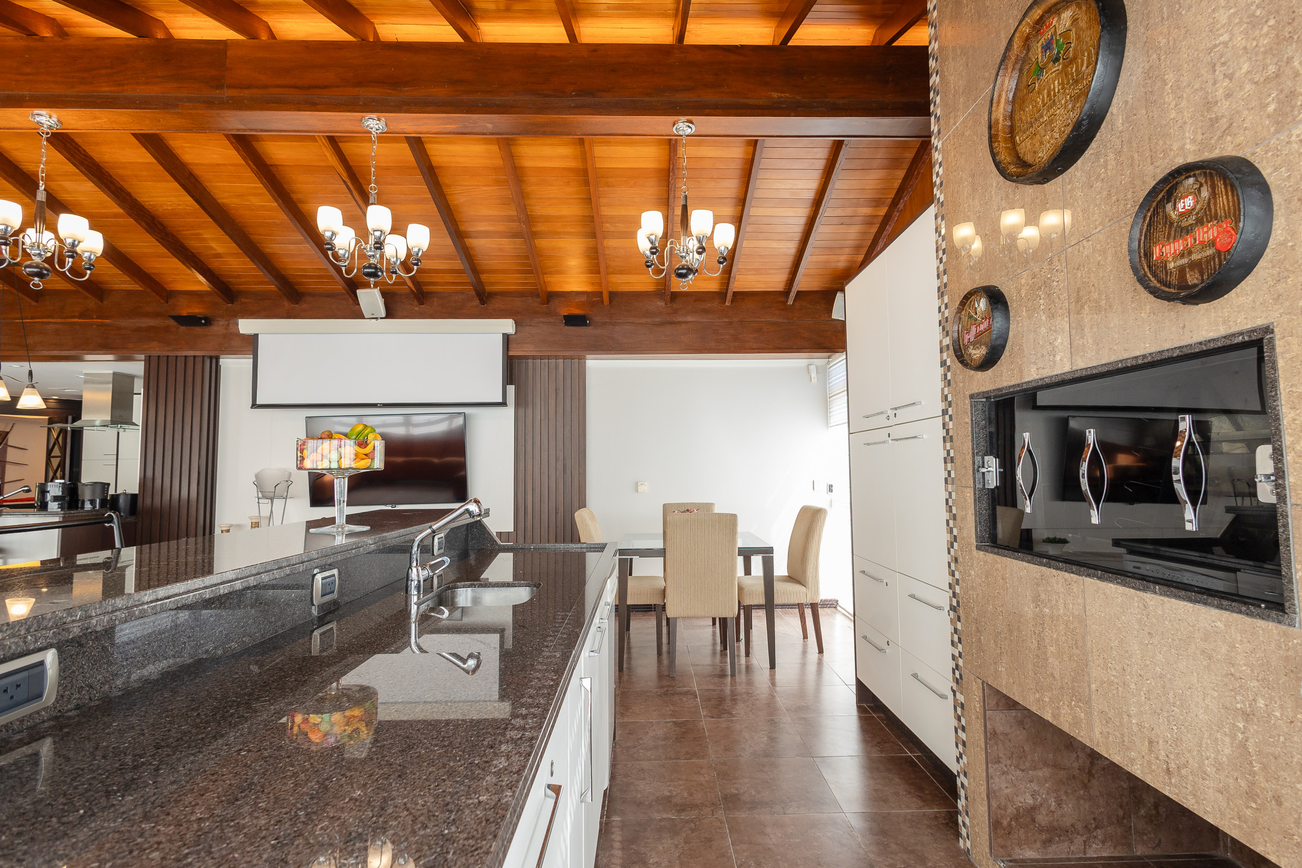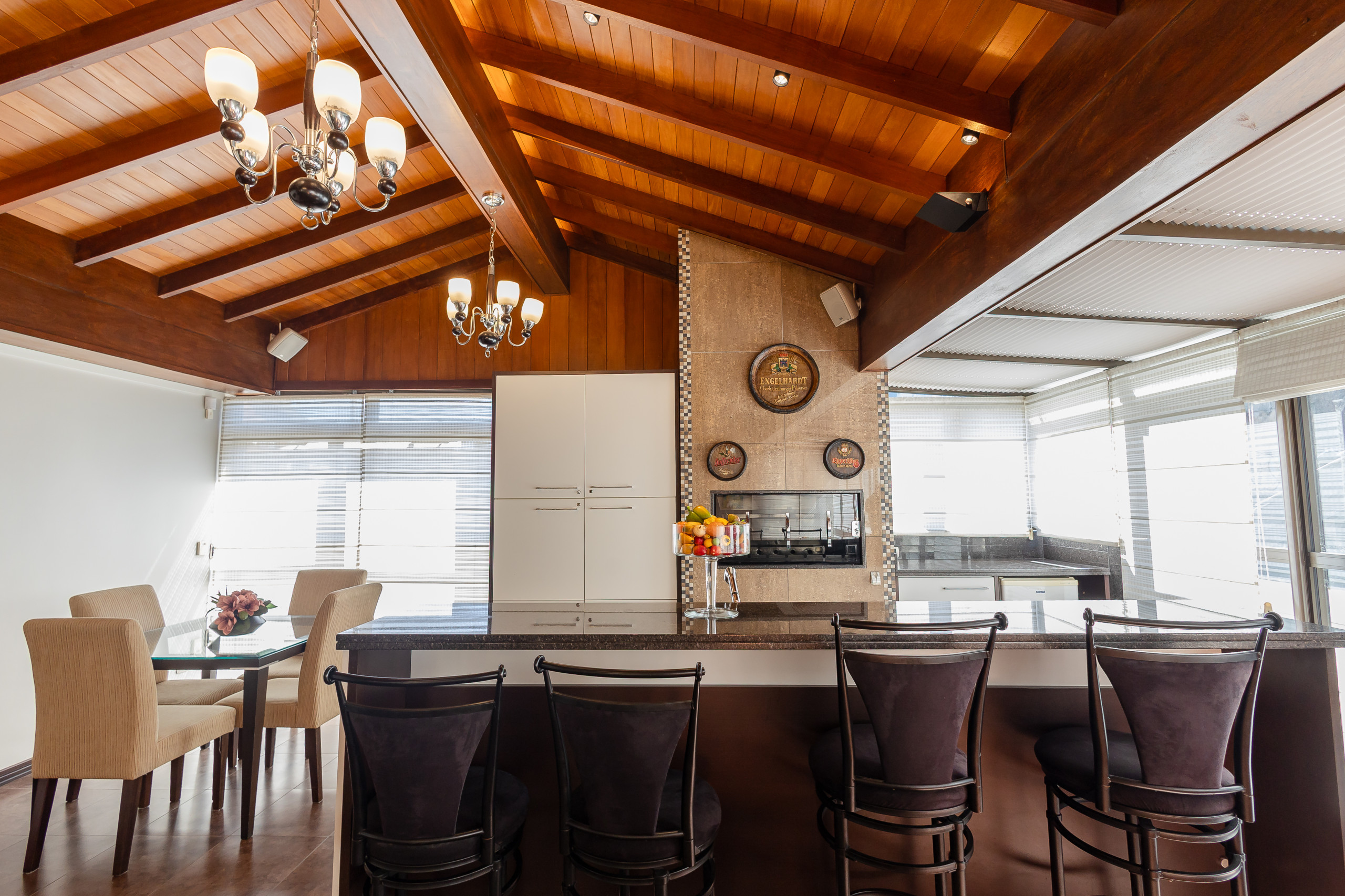 The apartment has 3 bedrooms with a view of the main avenue in the centre, with one suite featuring a walk-in closet, plus two complete social bathrooms, a powder room, and a fully equipped laundry room with washer and dryer. There are also two spacious social areas, one with a fireplace and another with a complete American kitchen, gourmet barbecue, and a large, sunny balcony. The property is complete and features split air conditioning (hot/cold) in all rooms, including bathrooms, and will be prepared with a complete trousseau for the stay.