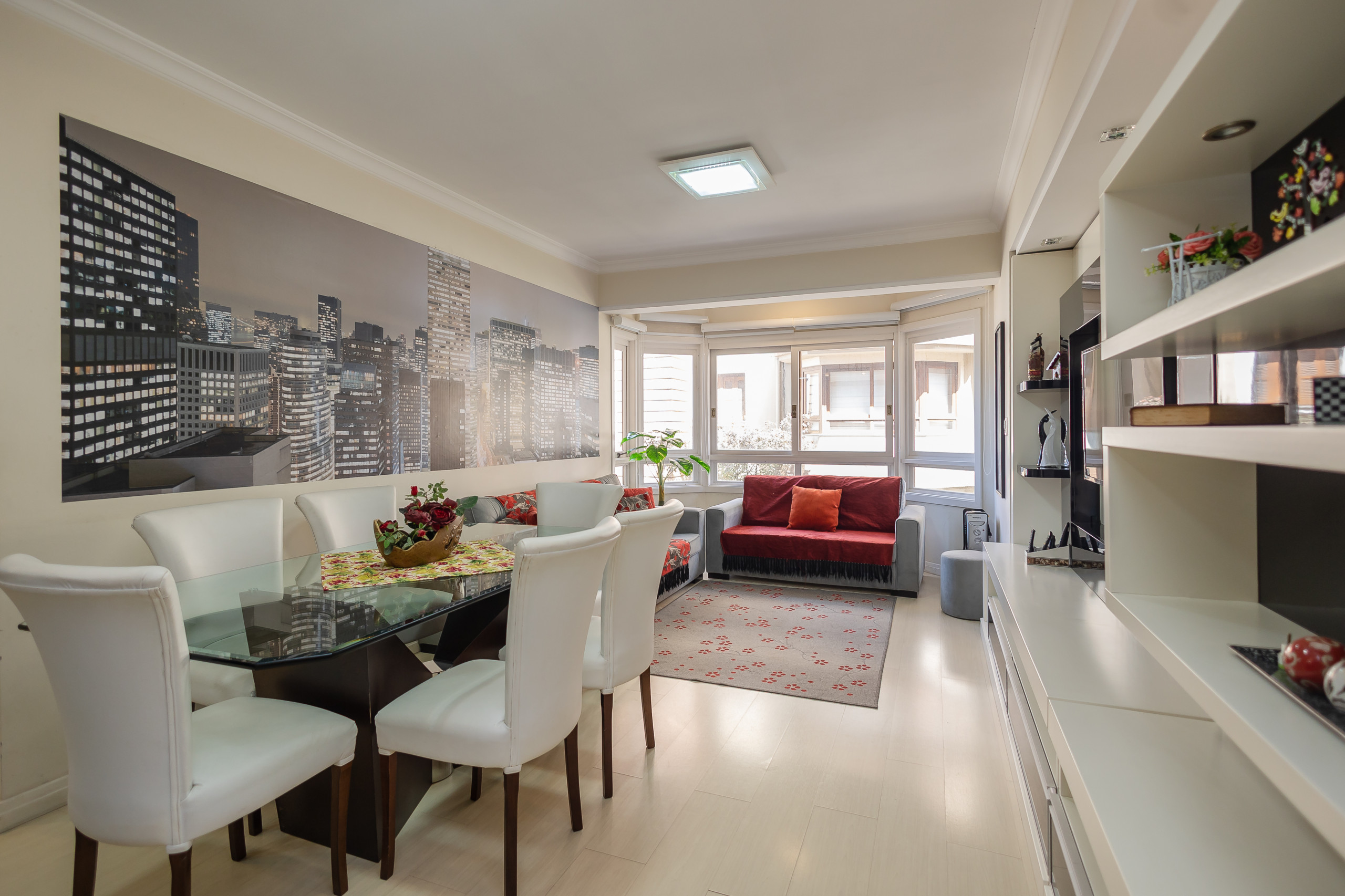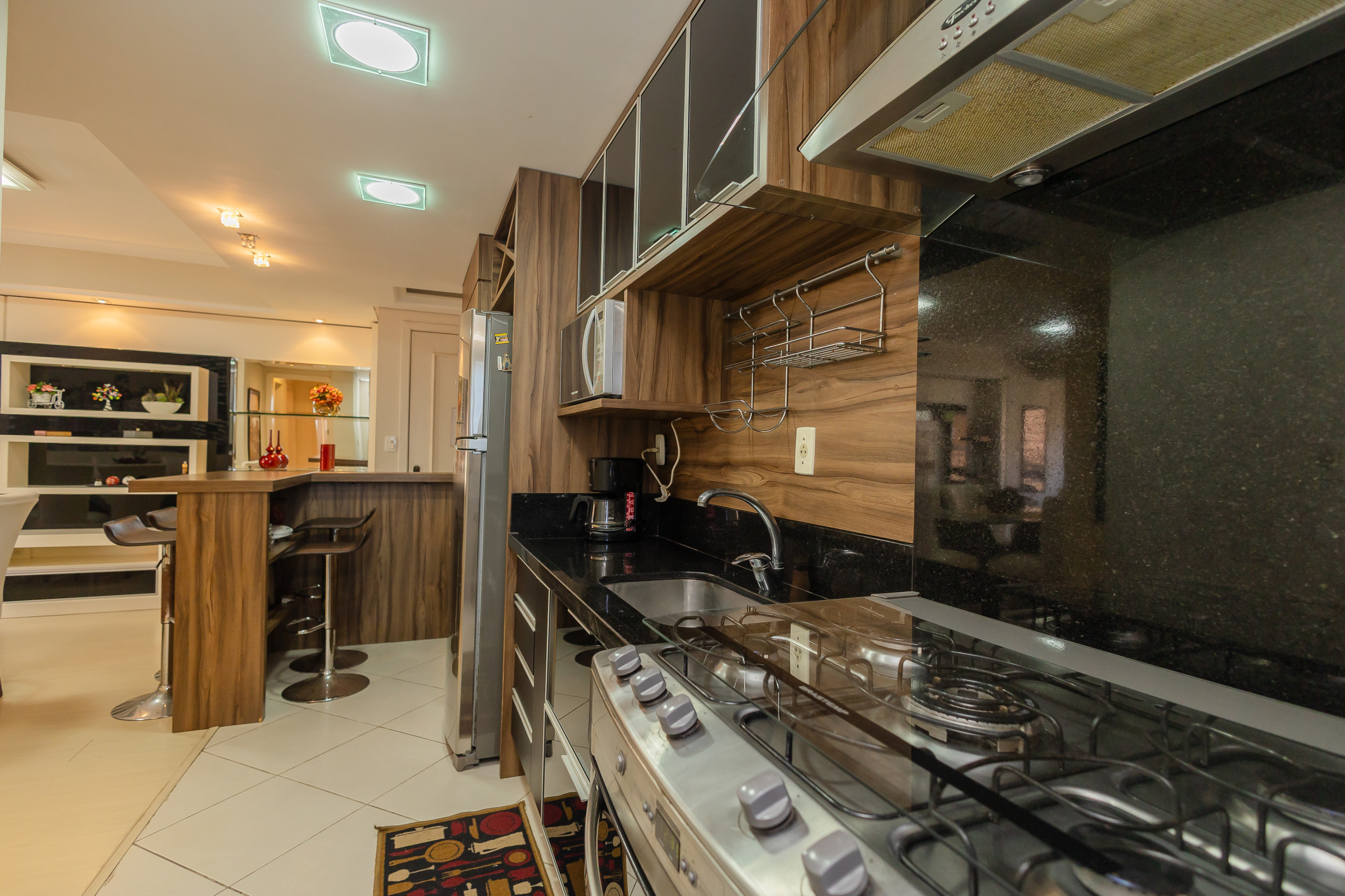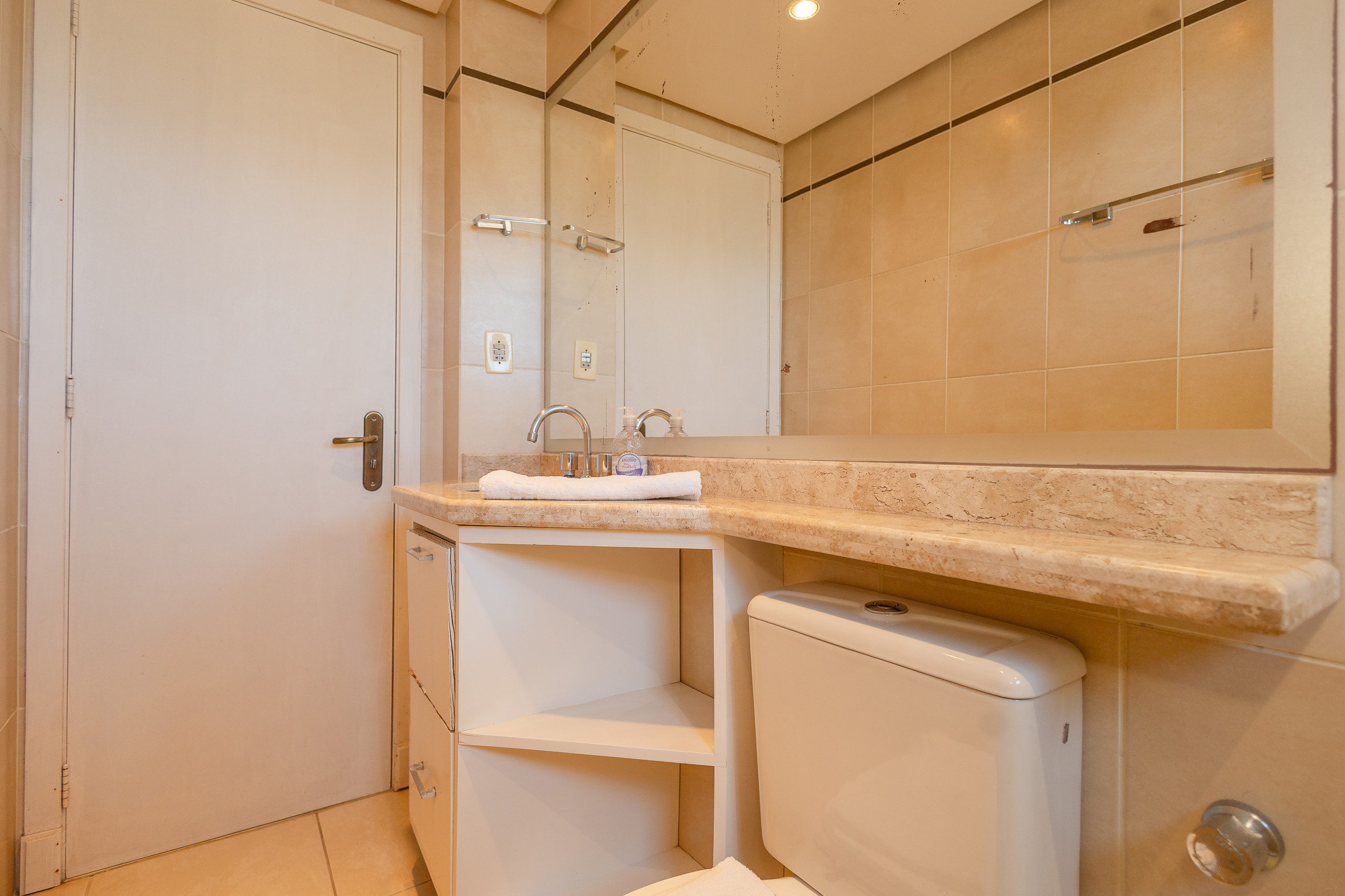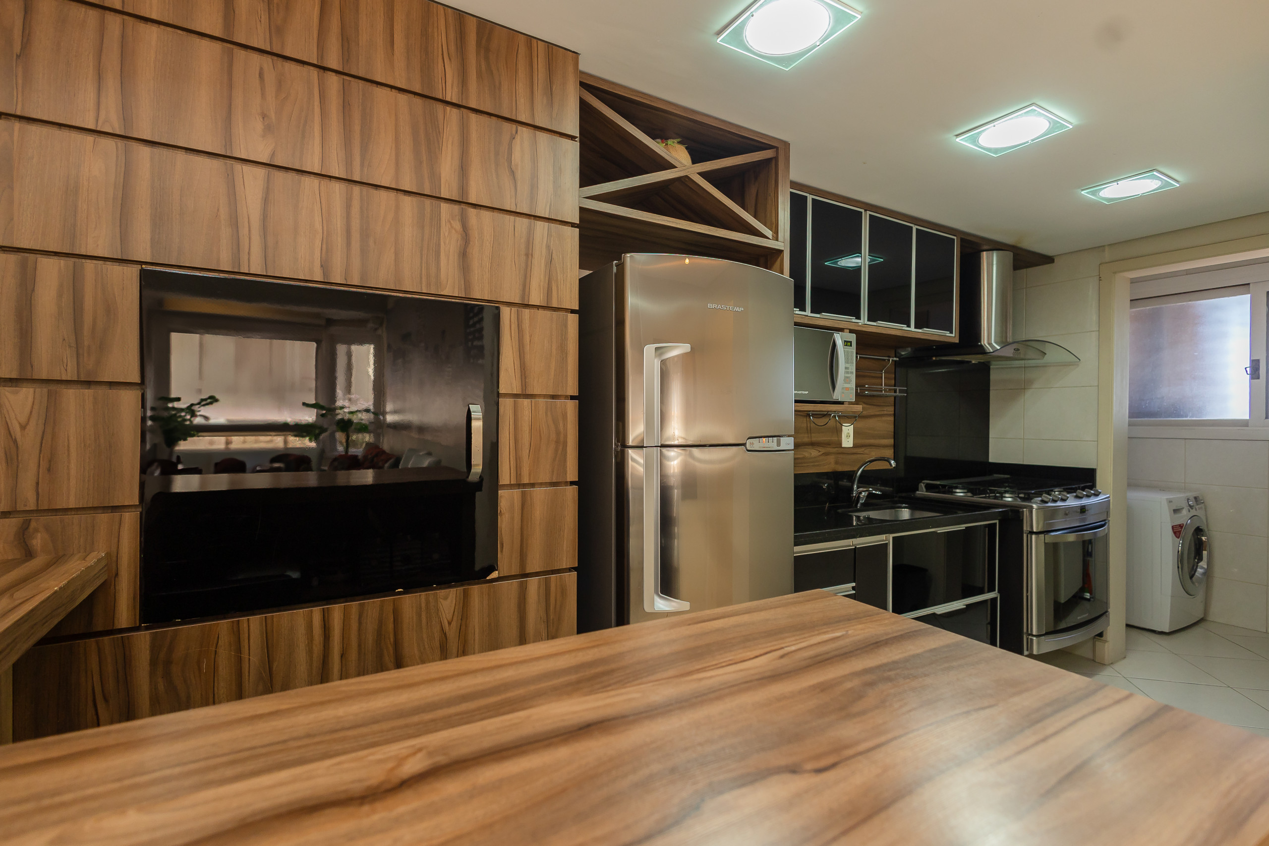 Modern apartment with 2 bedrooms, including one suite, spacious integrated living and dining area connected to the kitchen (fully equipped) and gourmet barbecue area. It also features a service area with a washing machine, complete social bathroom, 1 parking space, and full bed and bath linen for all guests during their stay. Located on one of the city's main avenues, approximately 1km from the covered street, you will find the best of life here without needing to take the car out of the garage.