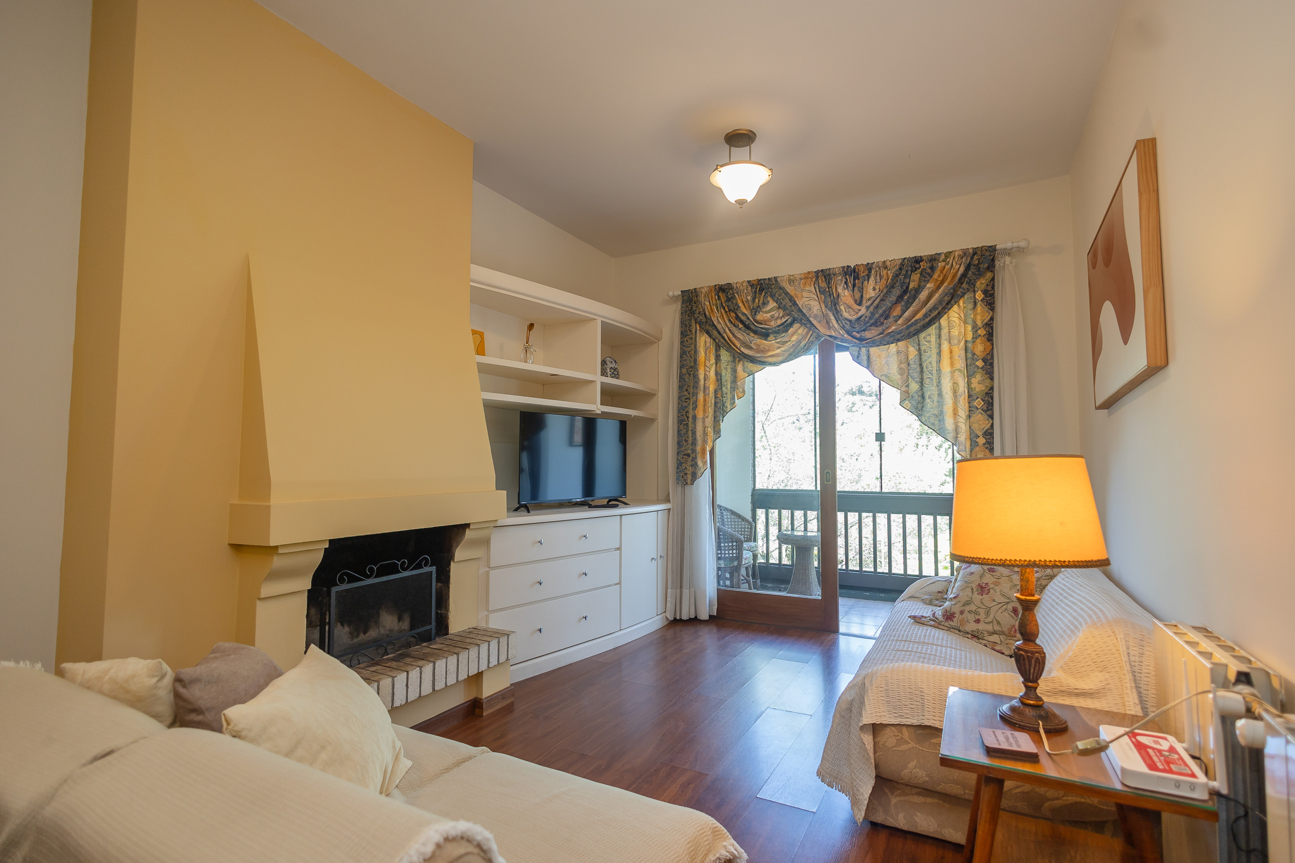 With two bedrooms, it comfortably accommodates up to 04 guests, with two in each room (one with a queen bed and another with two single beds that, when united, form a queen bed). It also has a living room with two environments (living and dining) with a fireplace and balcony, a complete social bathroom, a washroom and a complete kitchen with a washing machine.