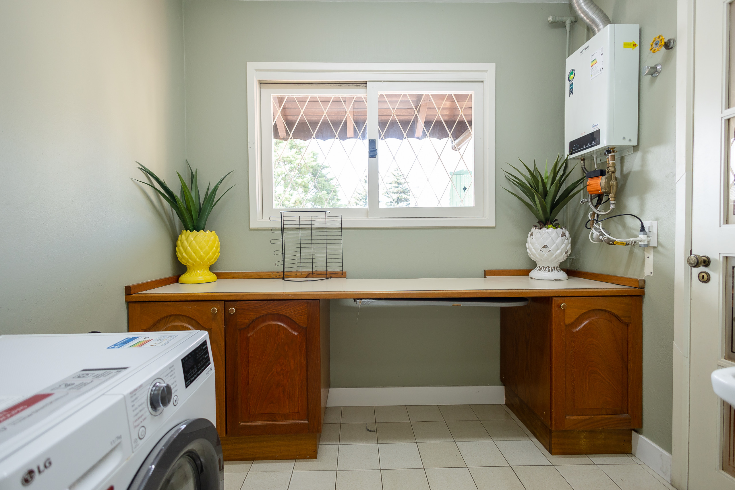 The complete kitchen has a barbecue, refrigerator, coffee maker, sandwich maker, microwave, oven and stove. At the table, up to 10 guests can sit for meals or to simply enjoy a hot chocolate.