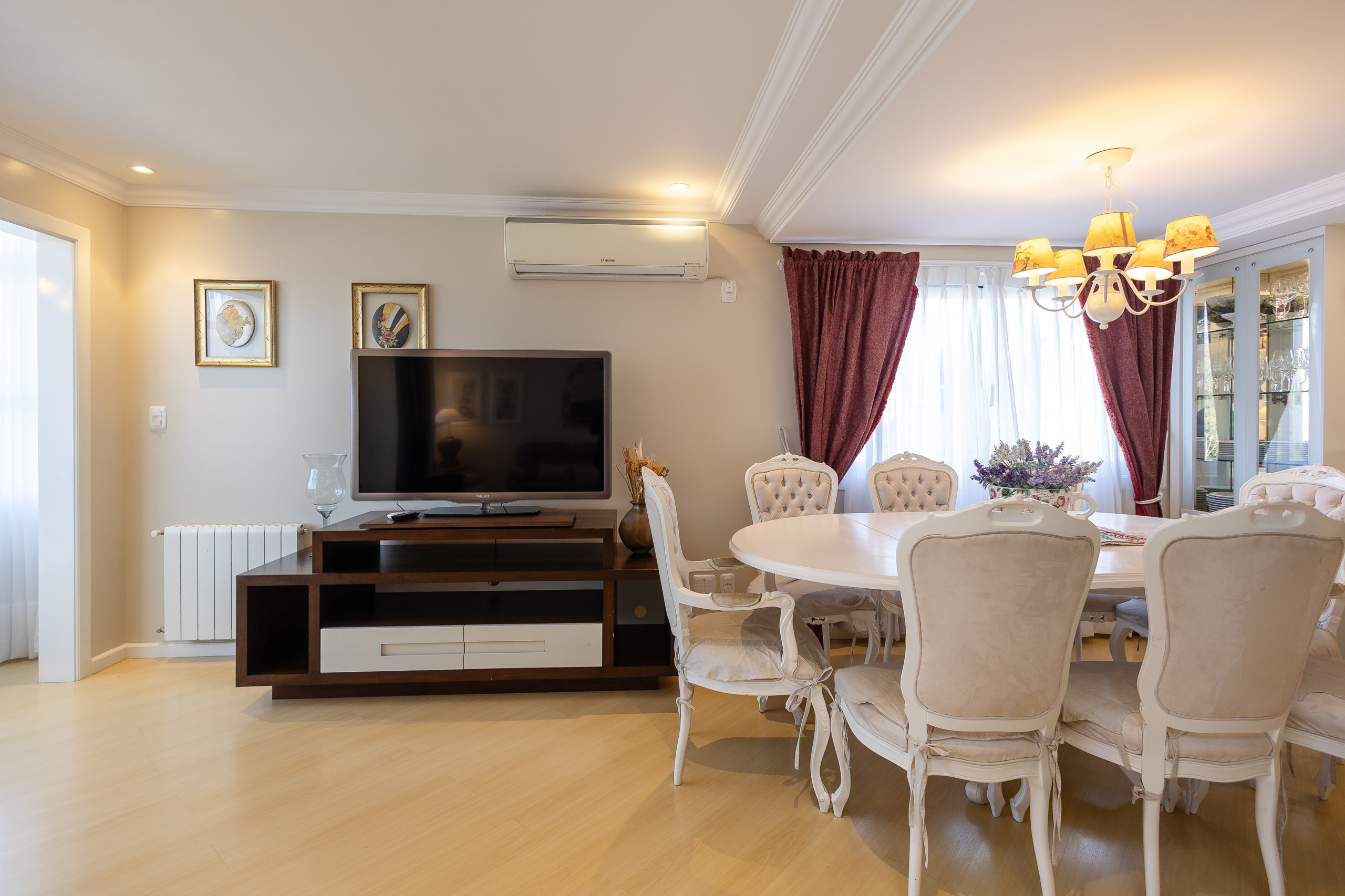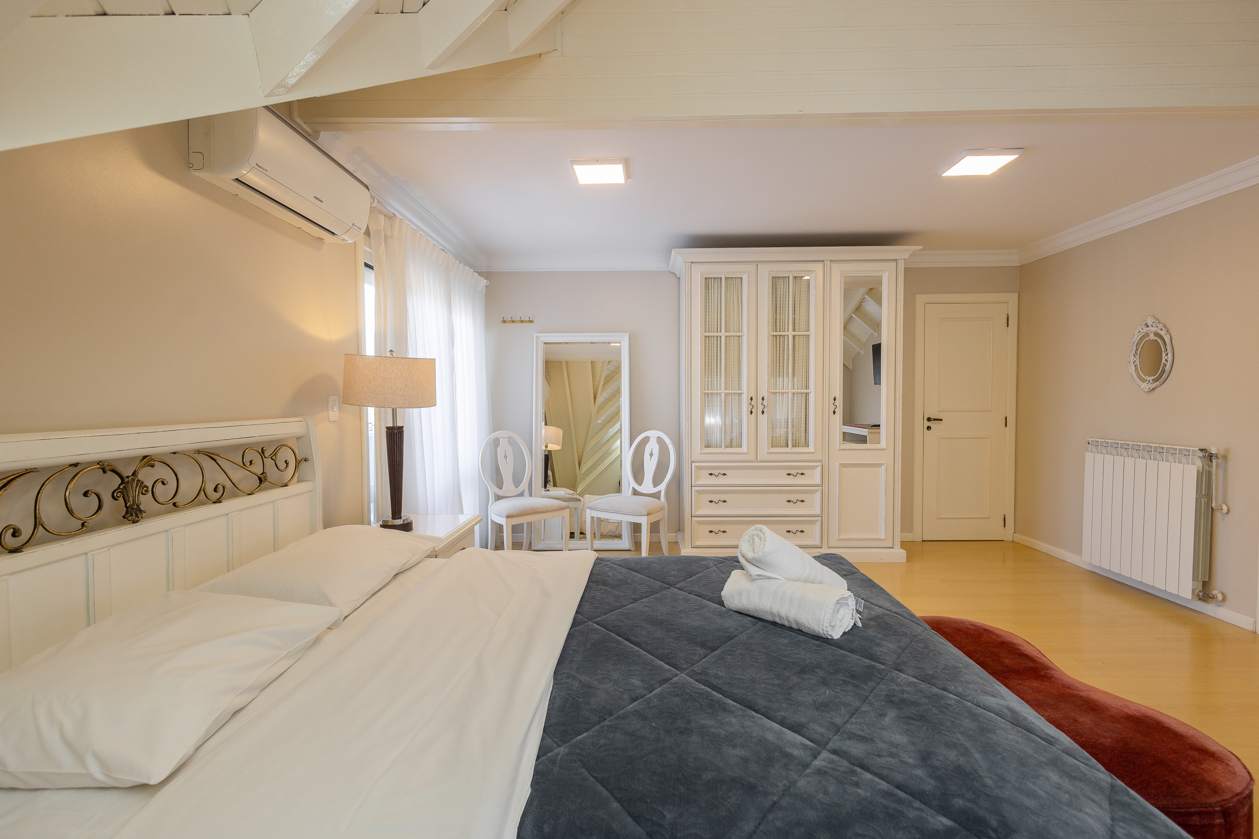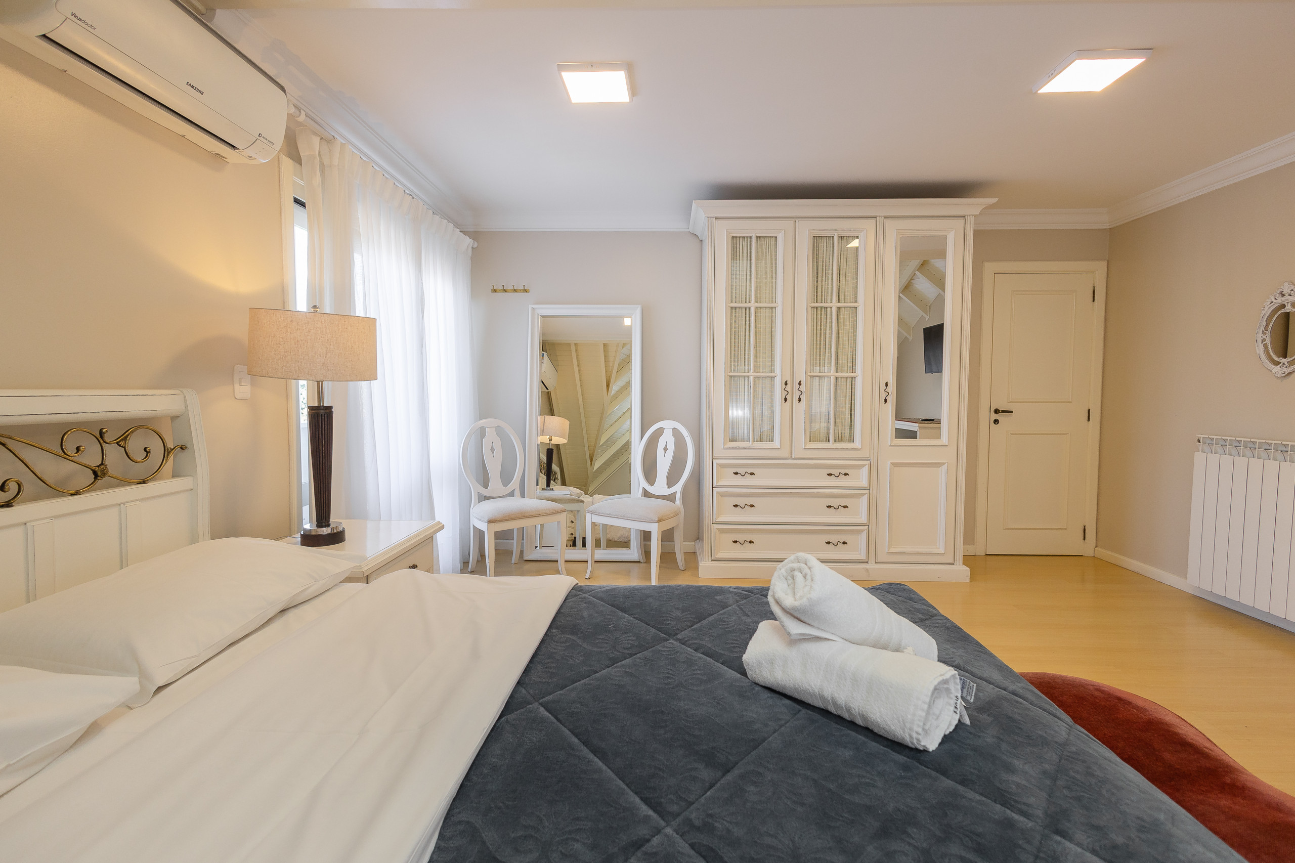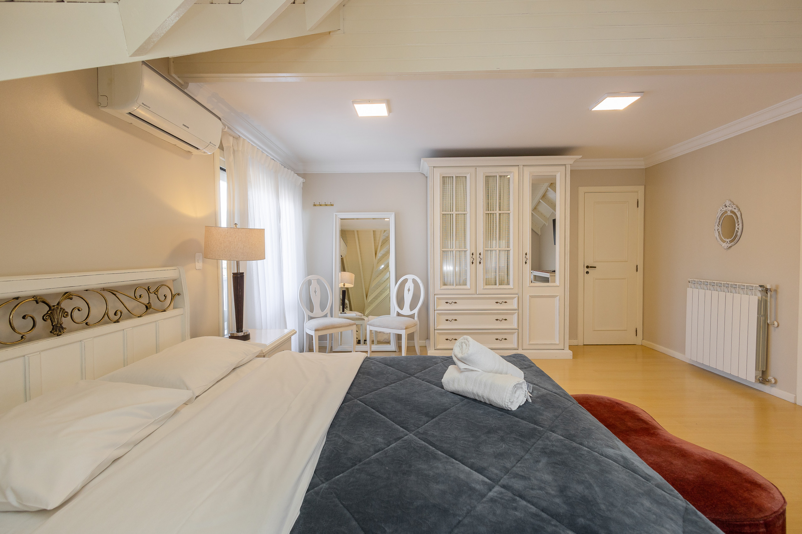 Comfortable apartment, very well furnished with excellent quality bed and bath linens. We offer wifi, garage parking. With an area of 130 m2, the apartment features on the first level a living room with balcony, complete kitchen, and a suite. On the upper floor, there are three suites, and an intimate living room with sofa bed and single bed. All rooms have hot and cold air conditioning. You will love it!