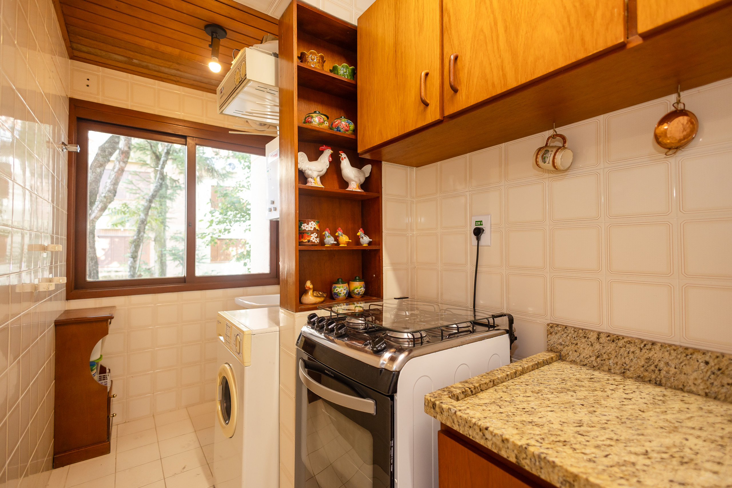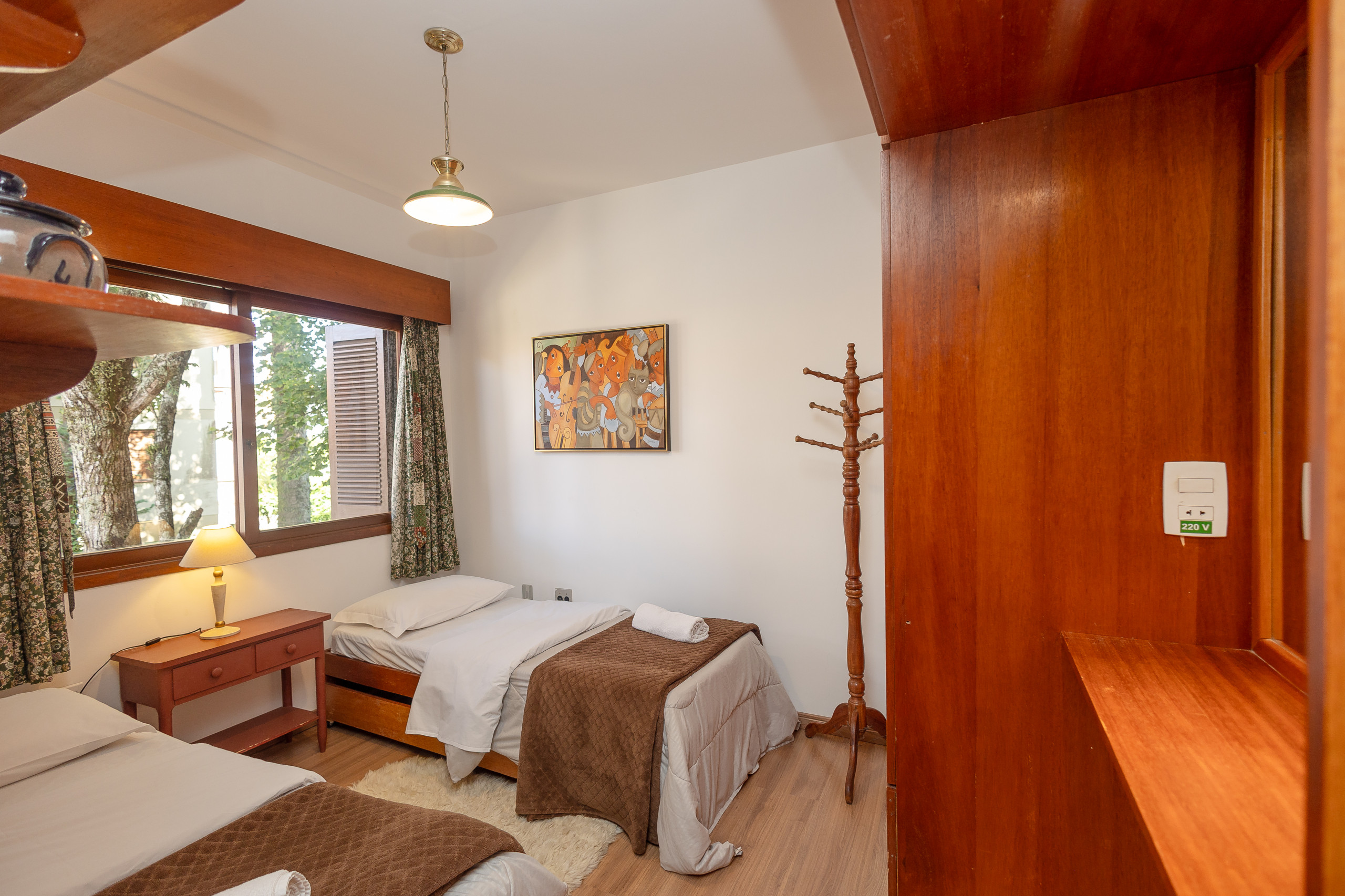 The apartment in Gramado has 2 bedroom(s) and capacity for 5 person(s). Accommodation of 70 m² comfortable and fully equipped. Located 300 m from the supermarket "SUPERMERCADO NACIONAL", 500 m from the "RUA COBERTA" city and situated in a residential zone and urban centre. Features elevator, washing machine, tumble dryer, iron, hair dryer, central heating, garage in the same building, 3 fans, 1 Television. The kitchen is independent, gas-powered, equipped with refrigerator, microwave, oven, freezer, crockery/cutlery, kitchen utensils, coffee maker, toaster, electric kettle and juice machine.