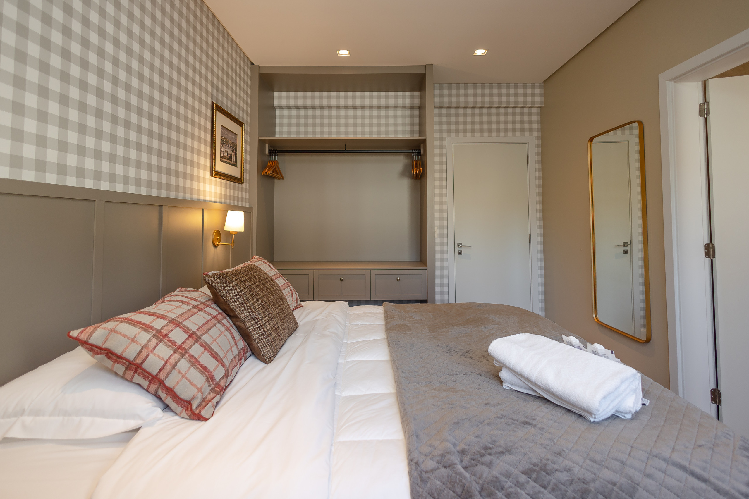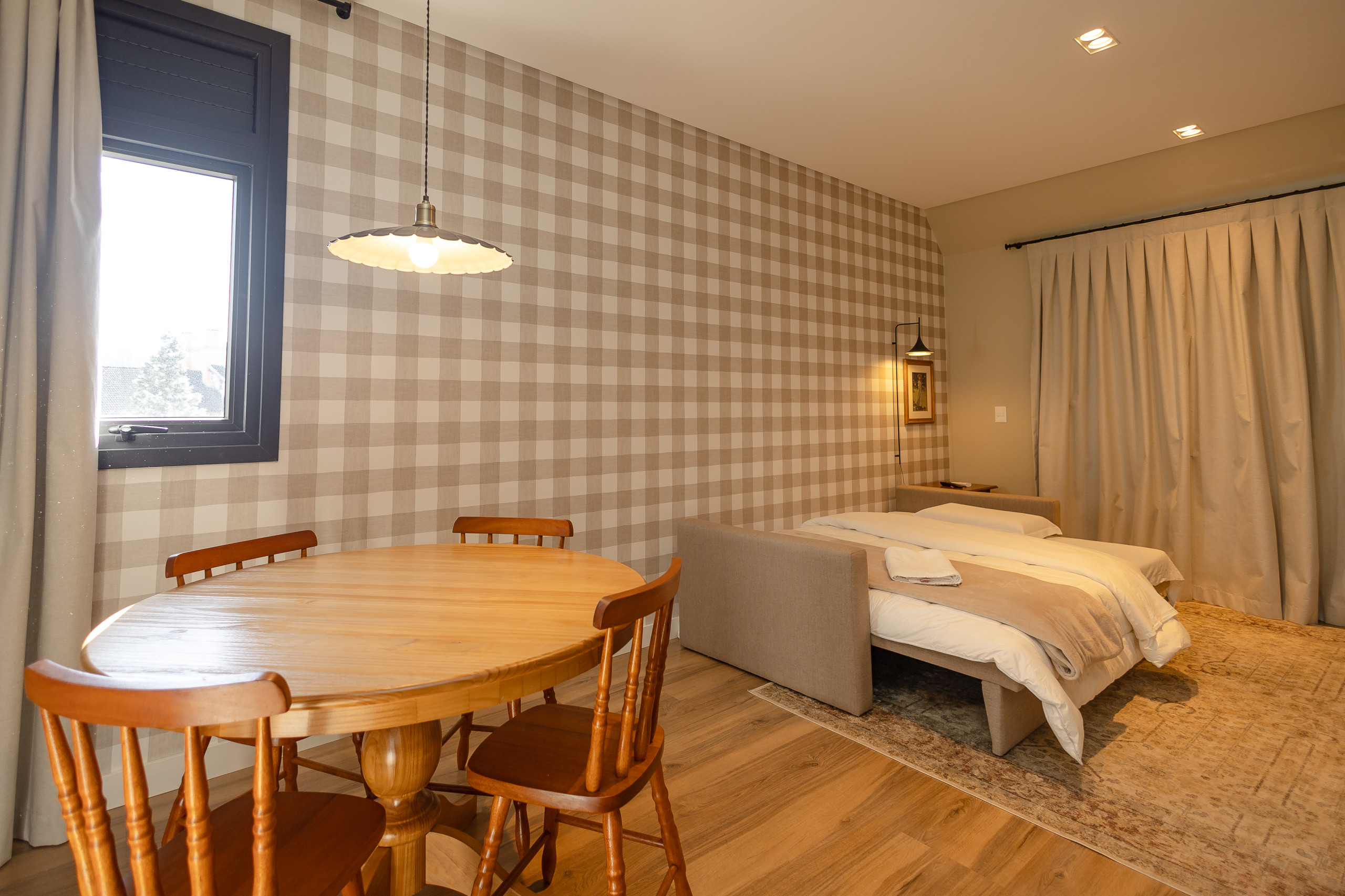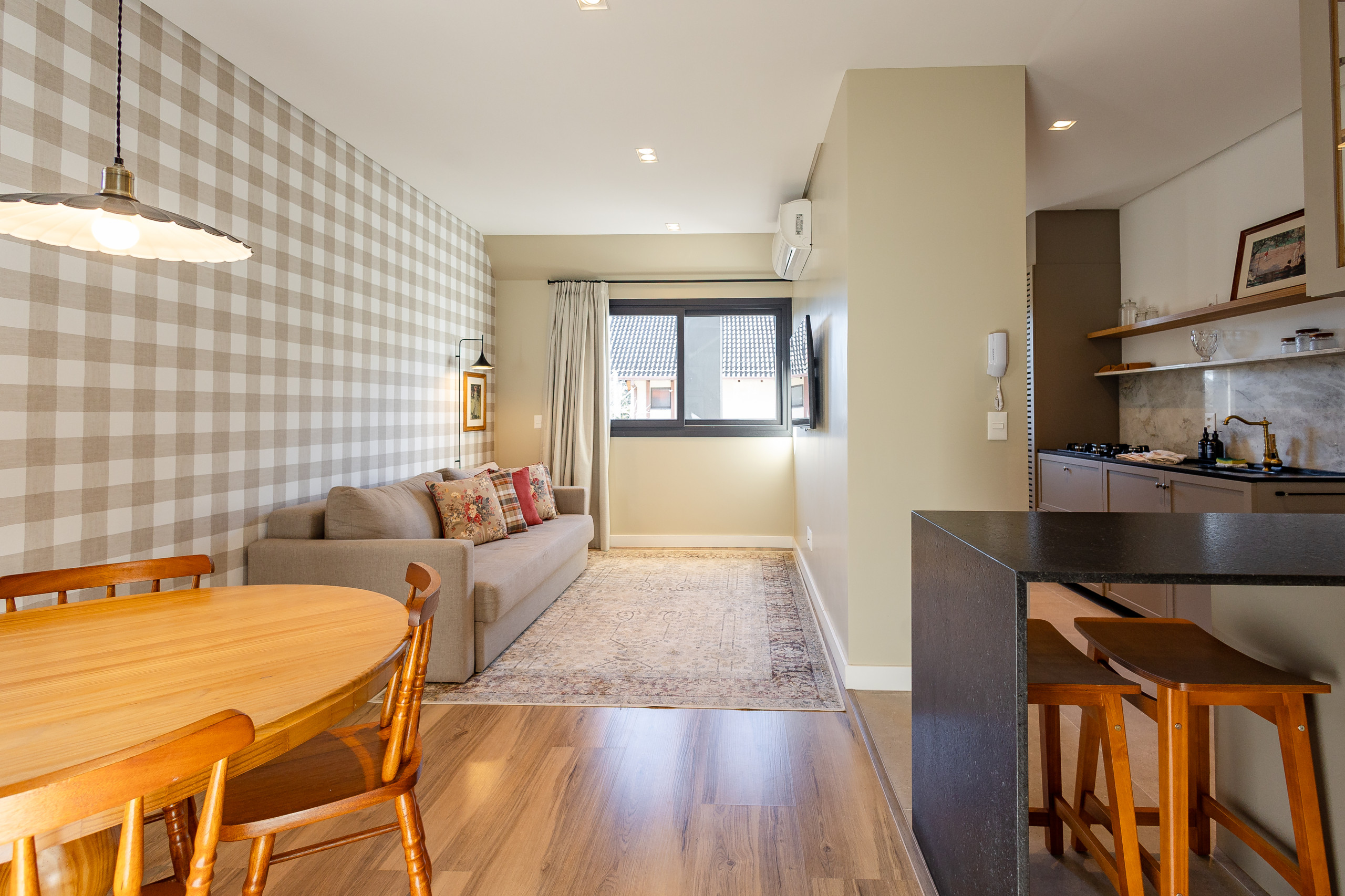 Welcome to our modern one-bedroom apartment, located in the heart of Gramado, just steps away from the city's main attractions. With an en-suite bathroom and powder room, the property offers all the comfort for a worry-free stay, featuring a queen-size bed, double sofa bed, Smart TVs, washer and dryer, hot/cold air conditioning, and luxury bedding. Additionally, it includes a garage parking space. Enjoy the central location and book now to experience the best of Gramado!
