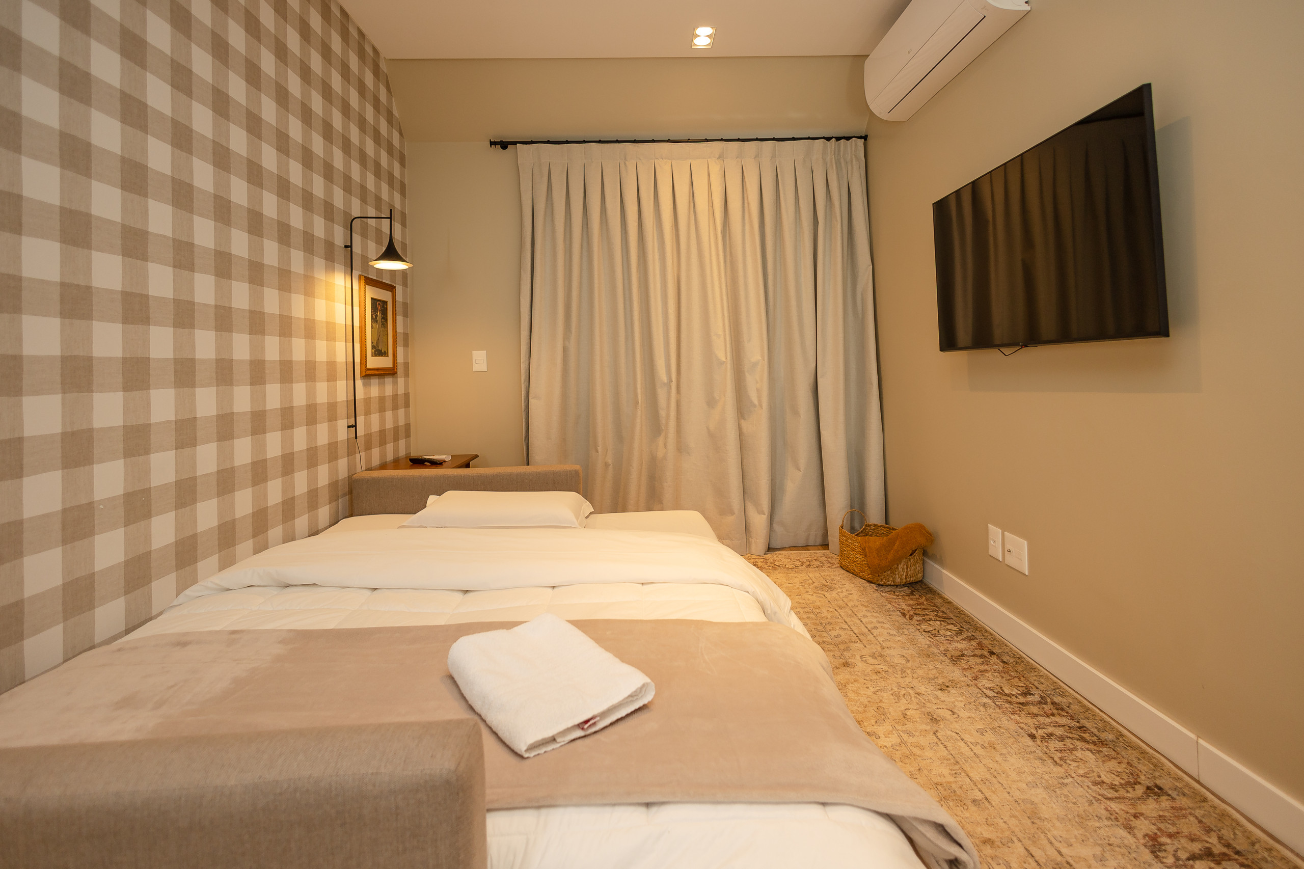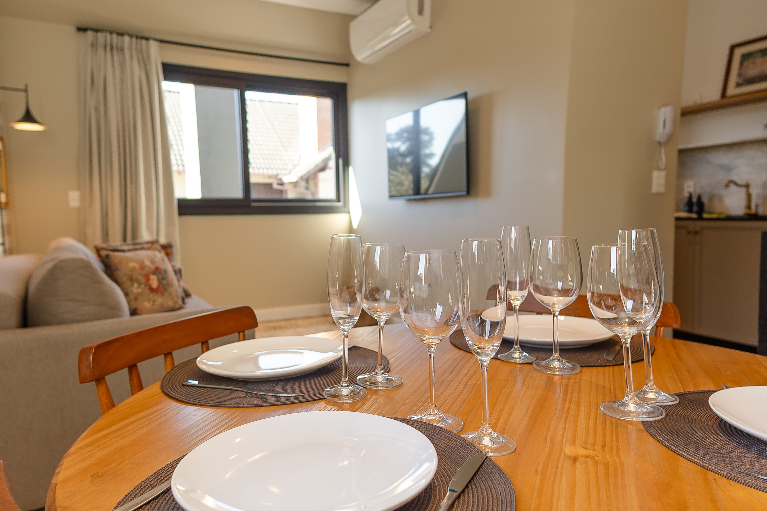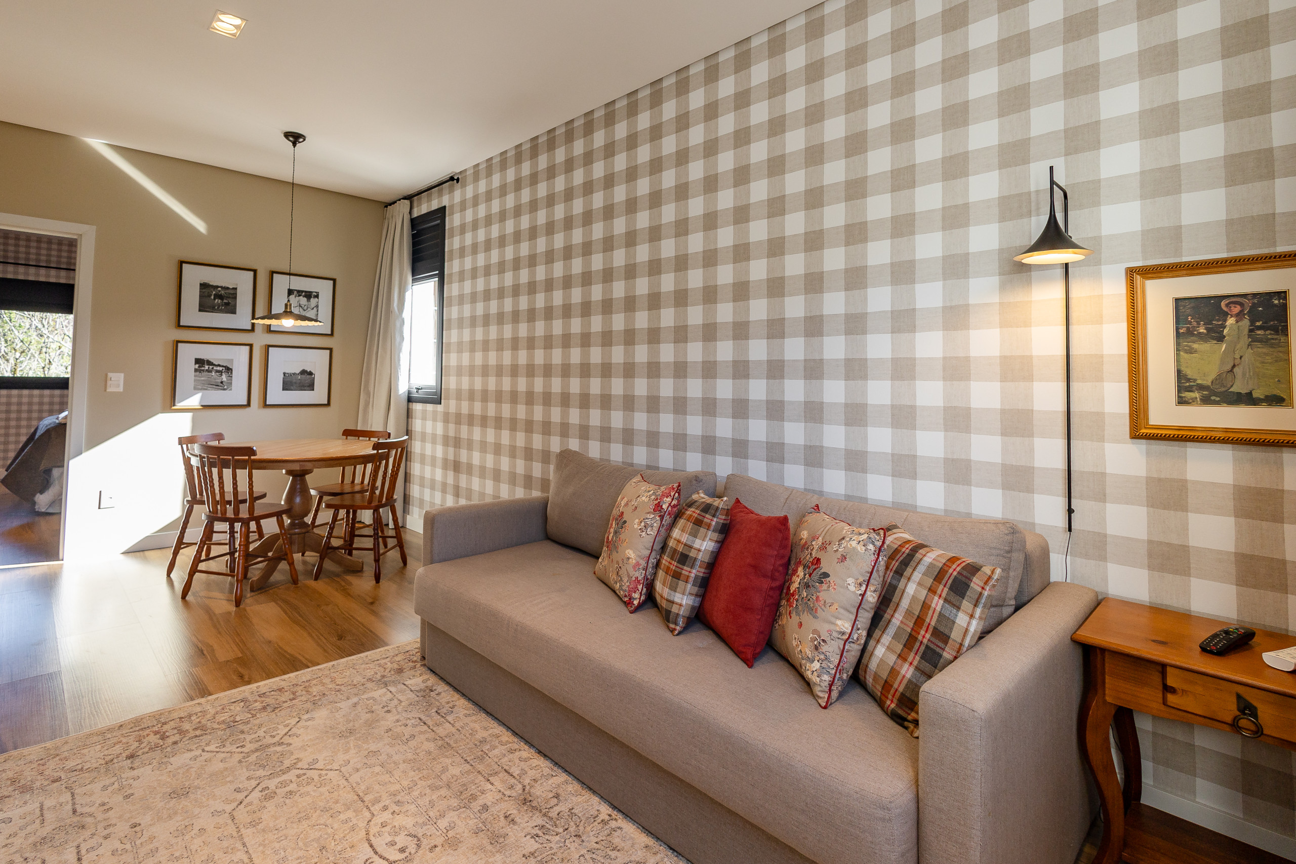 Welcome to our modern one-bedroom apartment, located in the heart of Gramado, just steps away from the city's main attractions. With an en-suite bathroom and powder room, the property offers all the comfort for a worry-free stay, featuring a queen-size bed, double sofa bed, Smart TVs, washer and dryer, hot/cold air conditioning, and luxury bedding. Additionally, it includes a garage parking space. Enjoy the central location and book now to experience the best of Gramado!