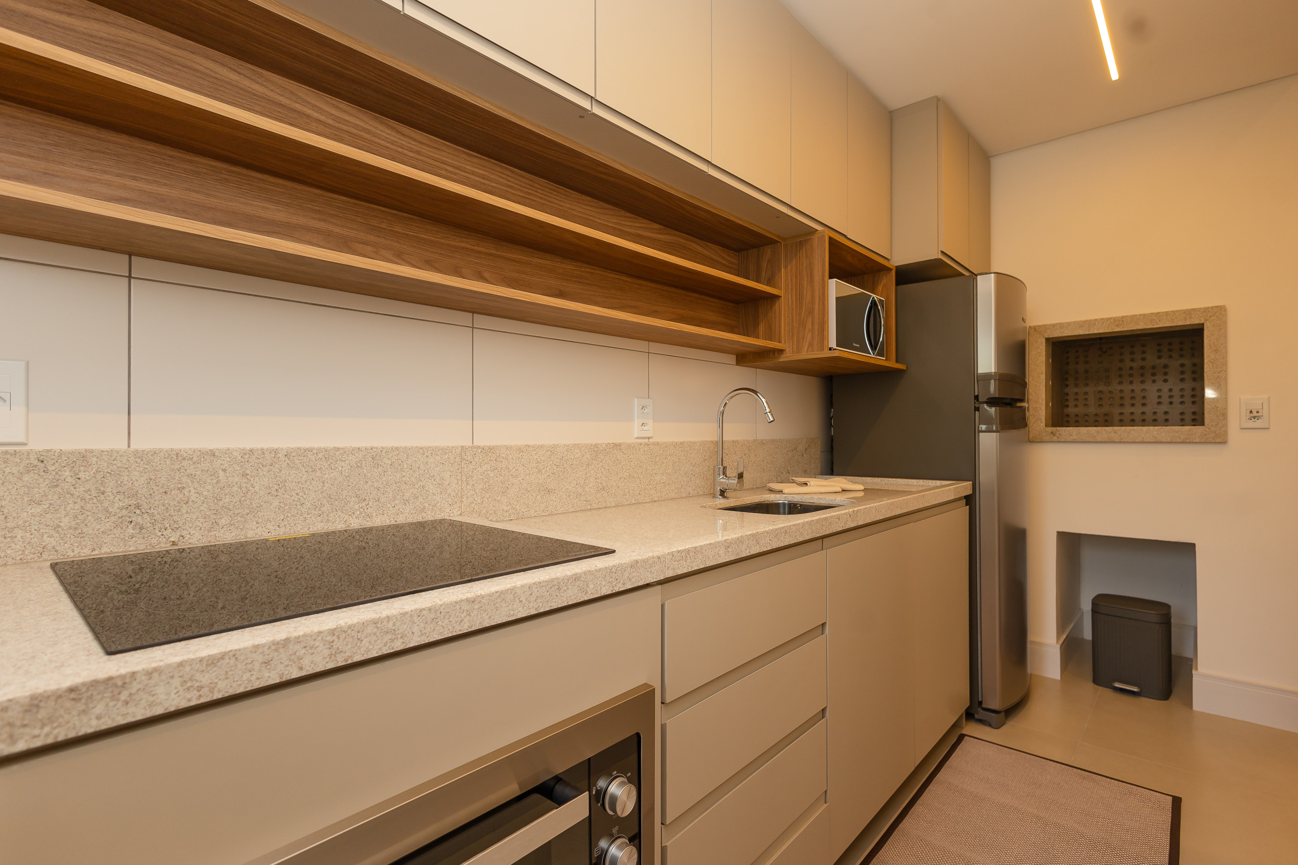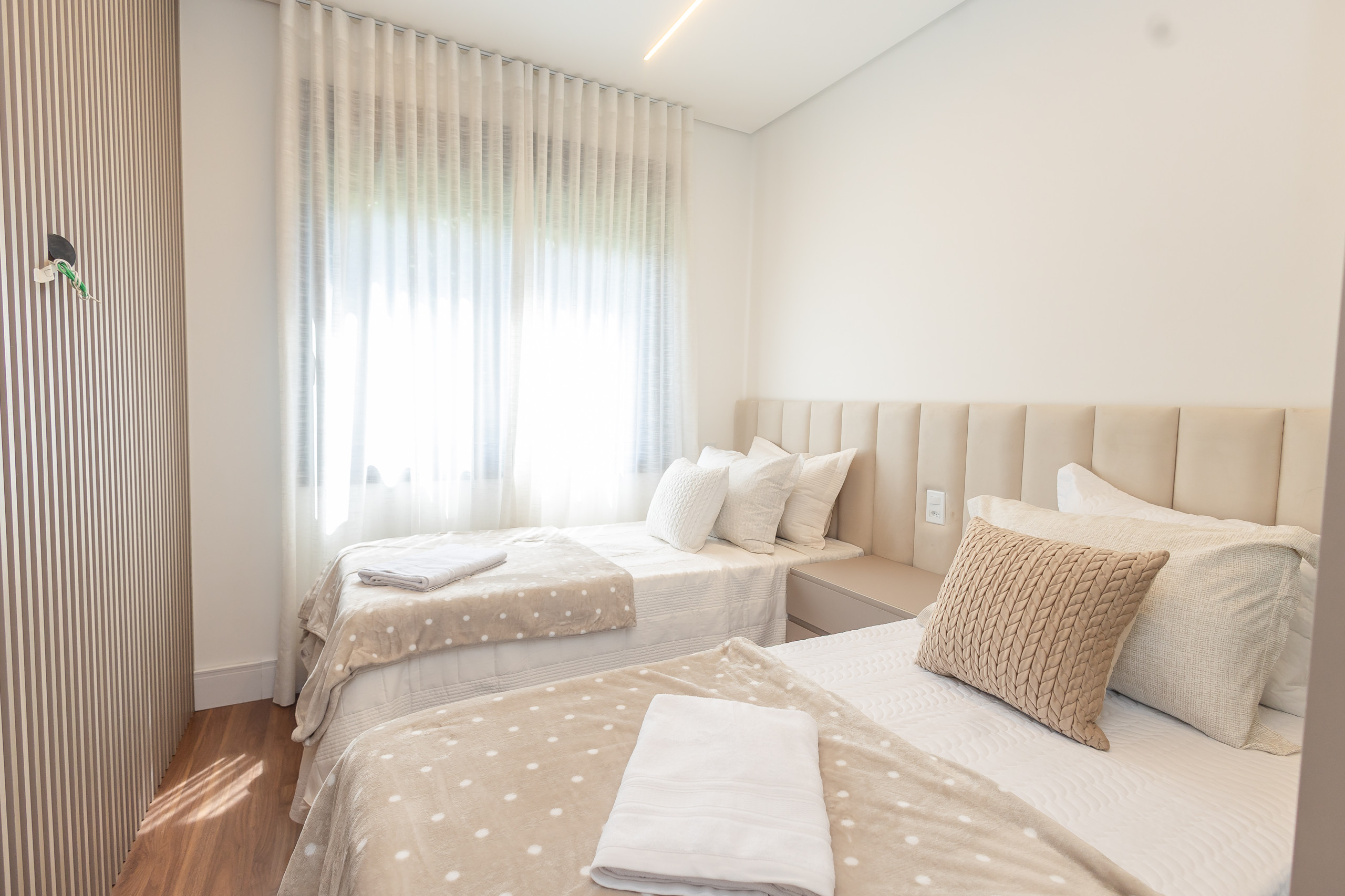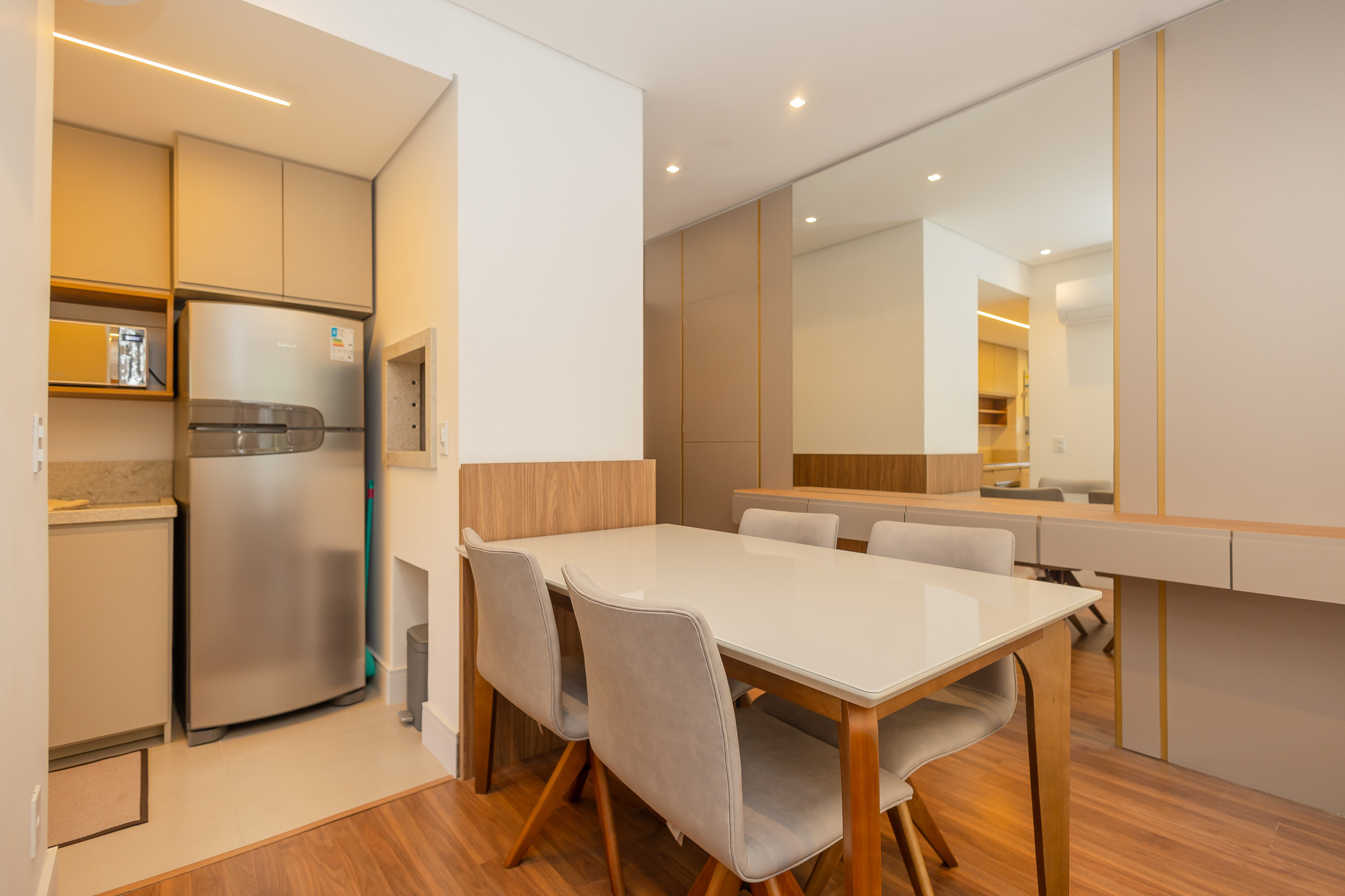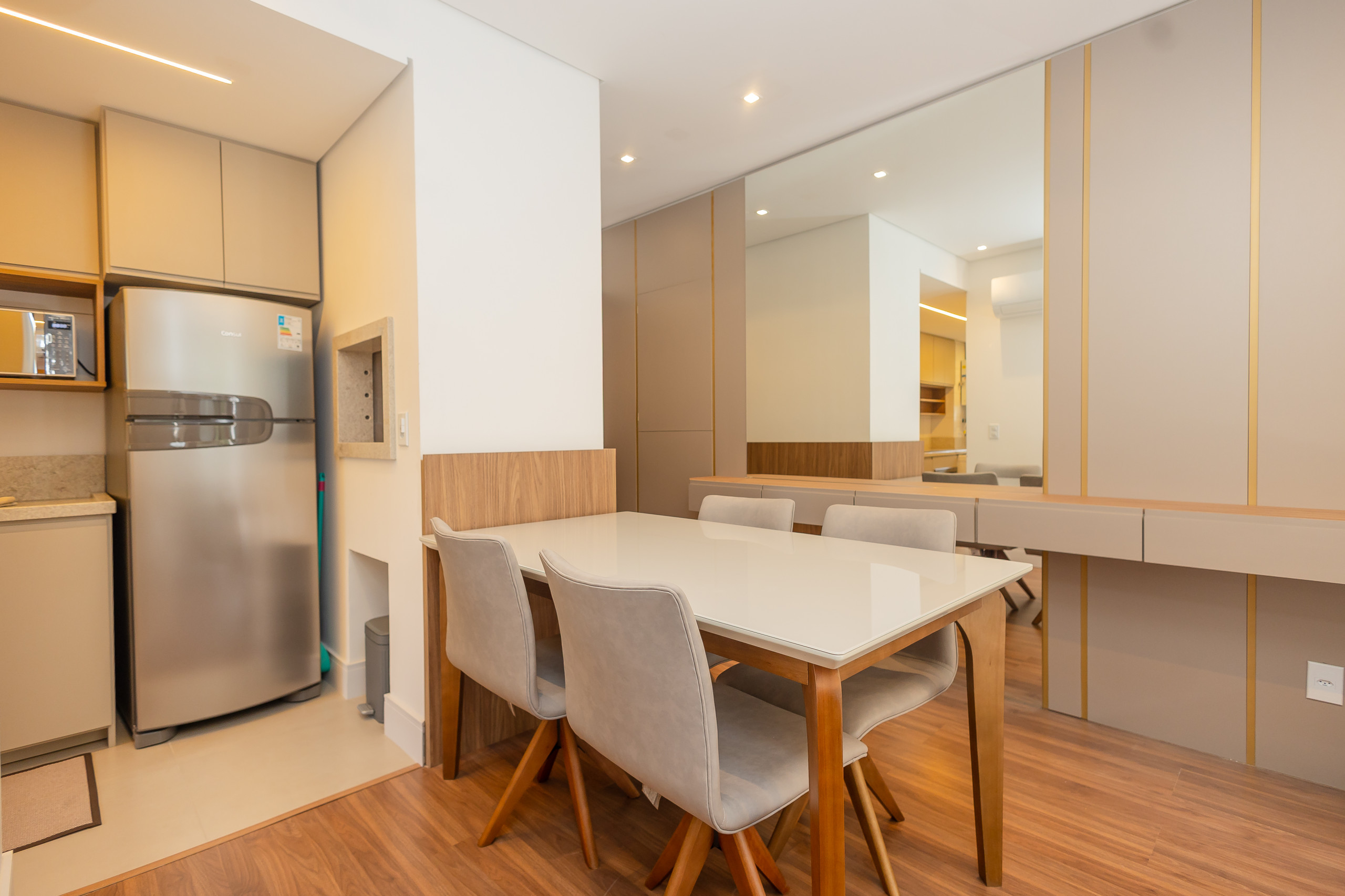 The independent kitchen is fully equipped with a refrigerator, freezer, oven, microwave, coffee machine, kettle, sandwich maker, and all the necessary utensils to prepare delicious meals. Ideal for those who enjoy cooking and spending time with family. Air conditioning in all environments ensures thermal comfort, regardless of the time of year.