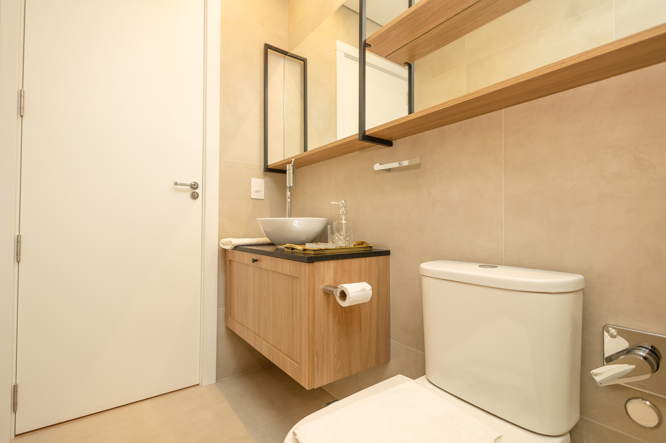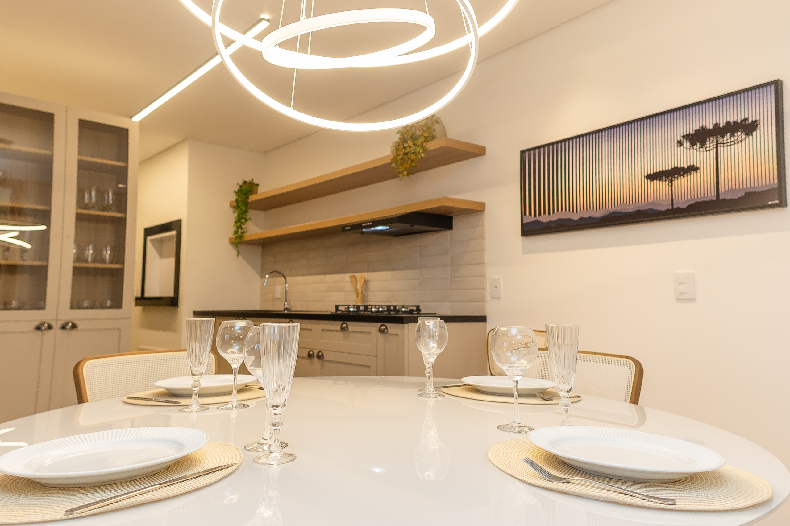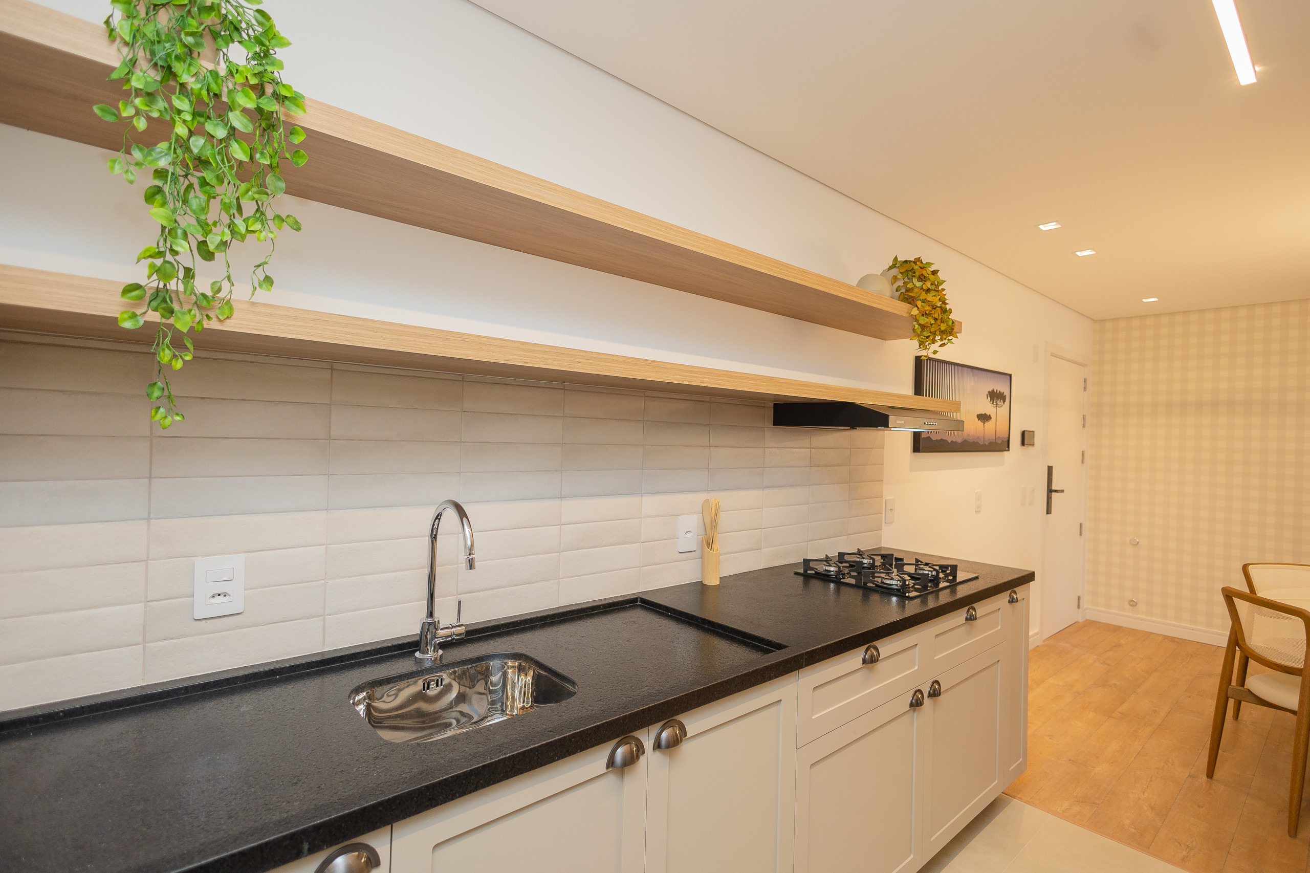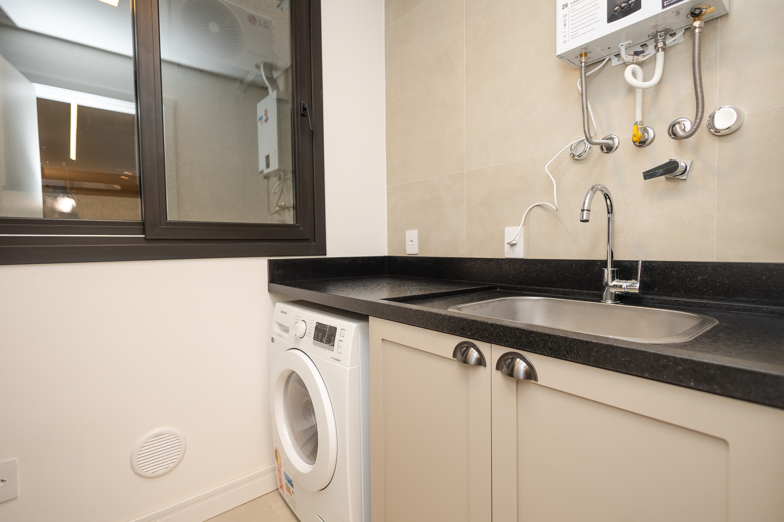 The complete kitchen has a barbecue grill, refrigerator, coffee maker, sandwich maker, microwave, cooktop and stove. At the table, up to 06 guests can sit for meals or simply enjoy a hot chocolate or a wine. The apartment also has a laundry with washer and dryer.