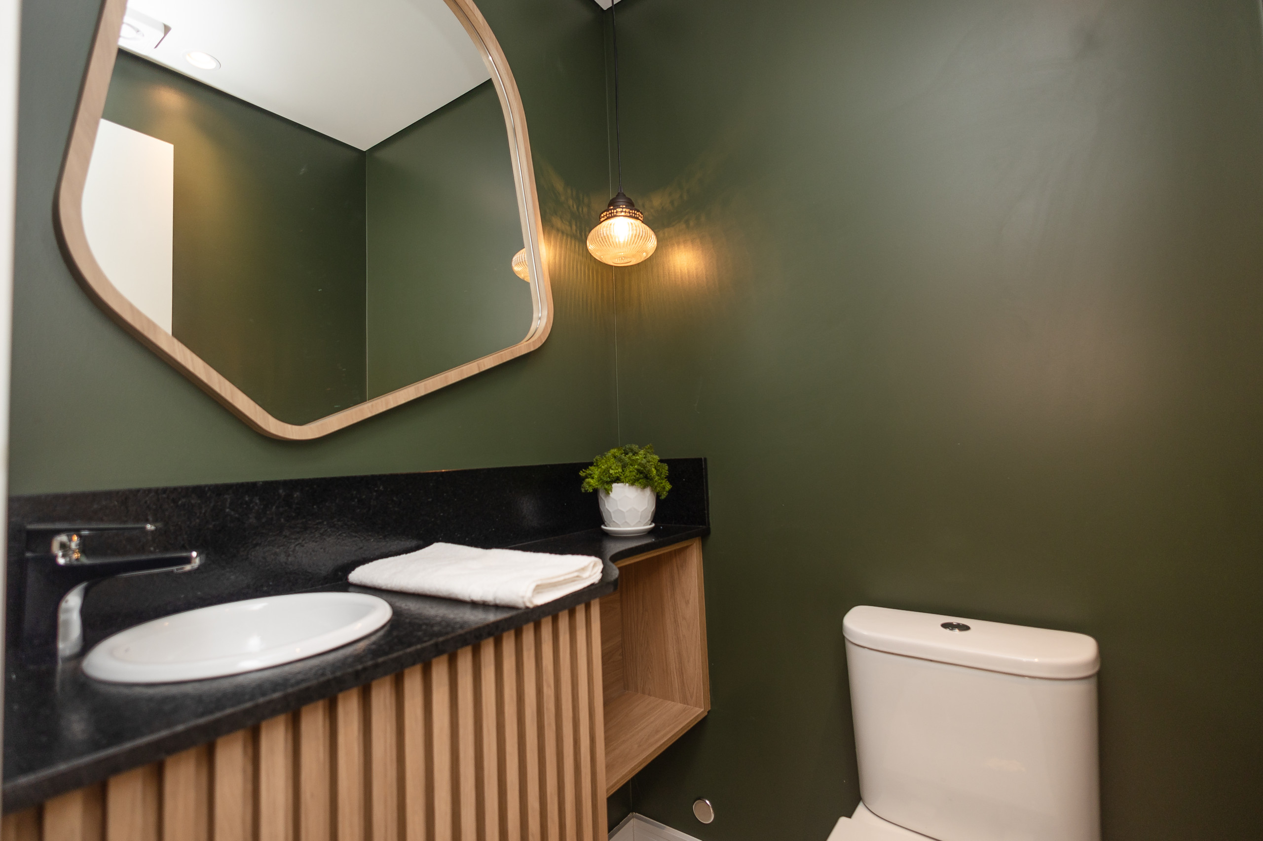 In the intimate area, we find two air-conditioned suites, each with Q/H split, smart TV, blackout blinds and curtains that bring cosiness. One of the suites has a queen bed and an auxiliary single bed (like a bunk bed, being stored under the queen bed box when not in use to optimise space). The other suite has two single beds that, when positioned side by side and with the use of a standard hotel pillow top, form a queen bed and an auxiliary single bed.
