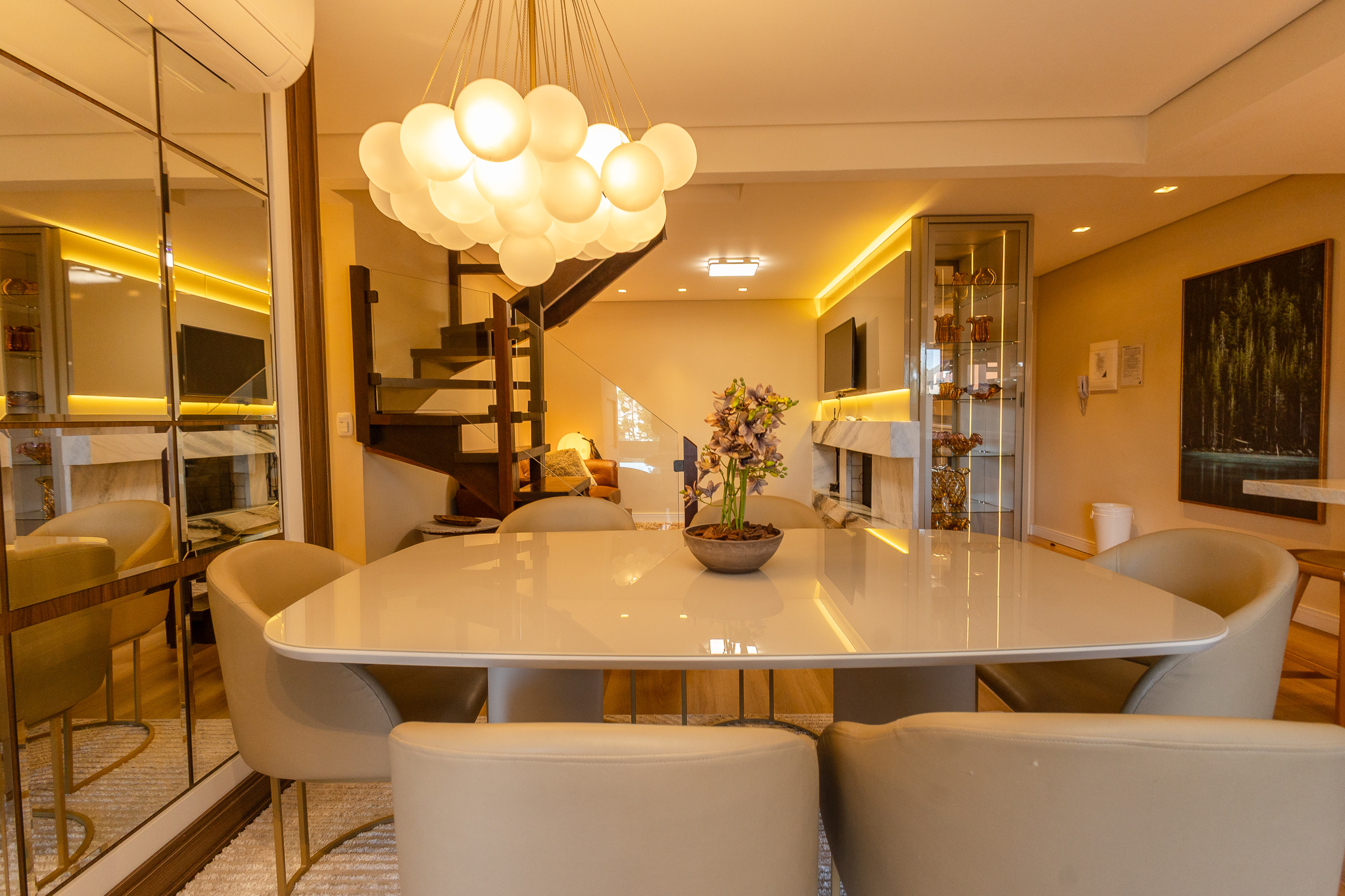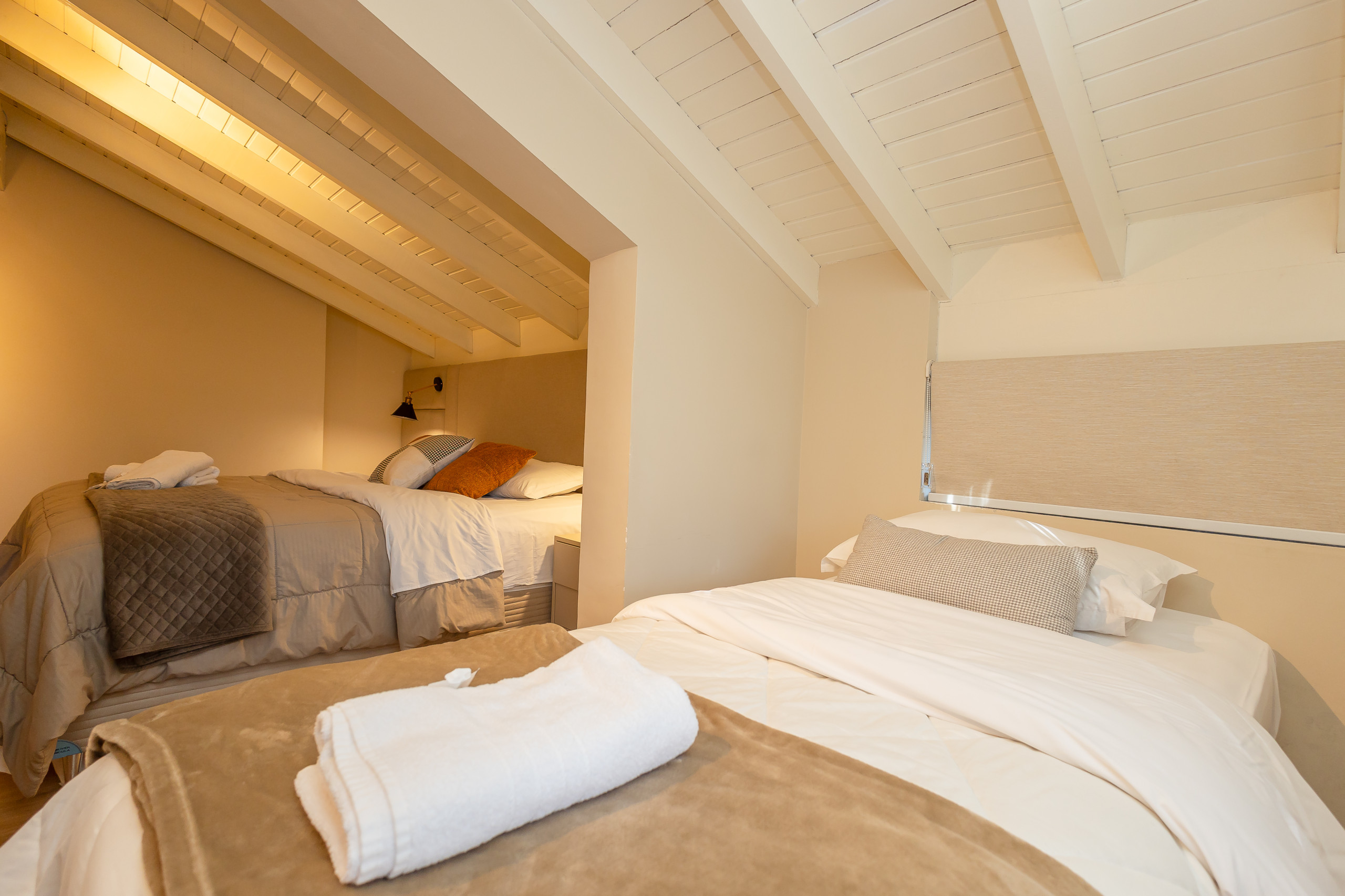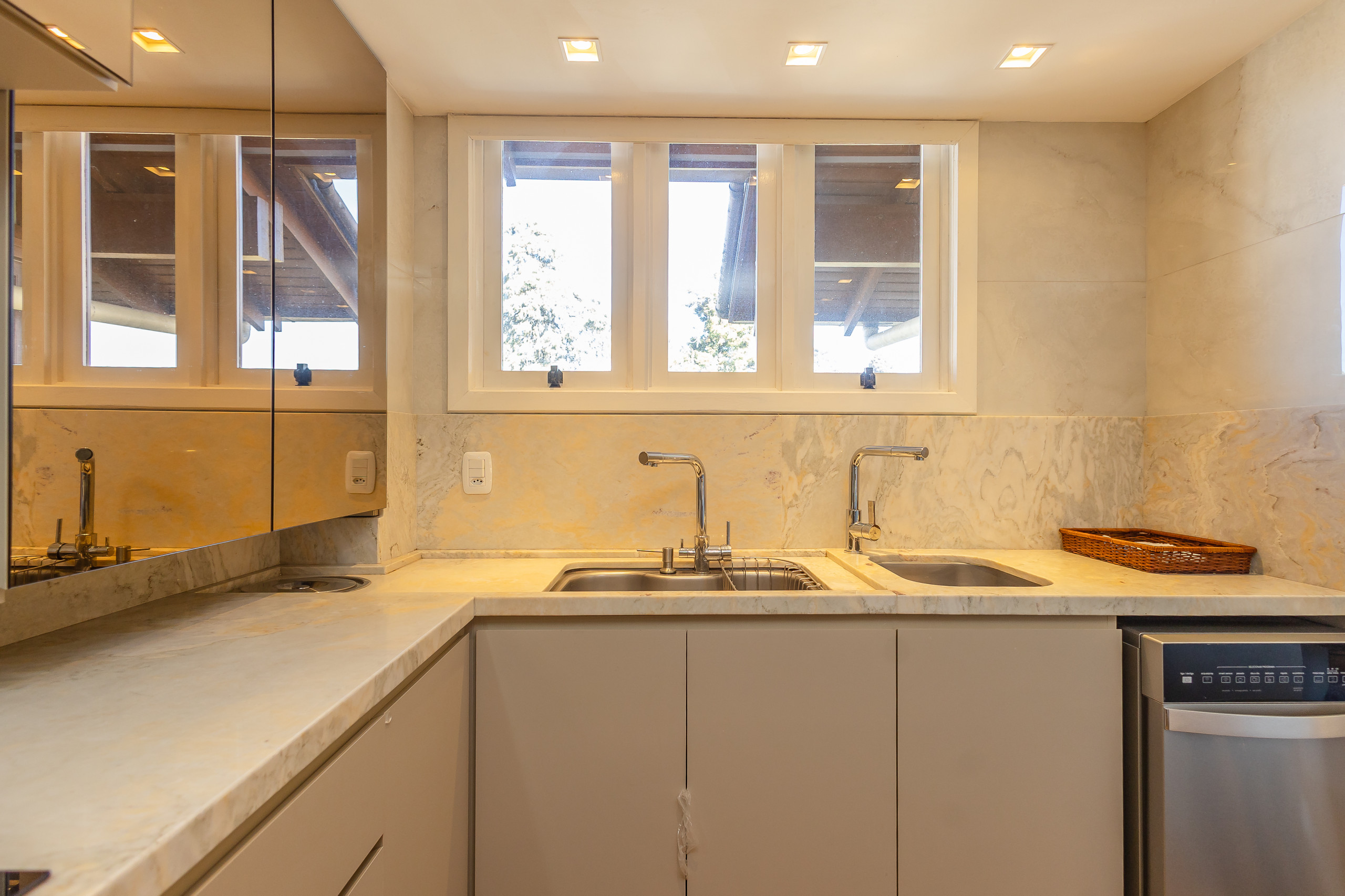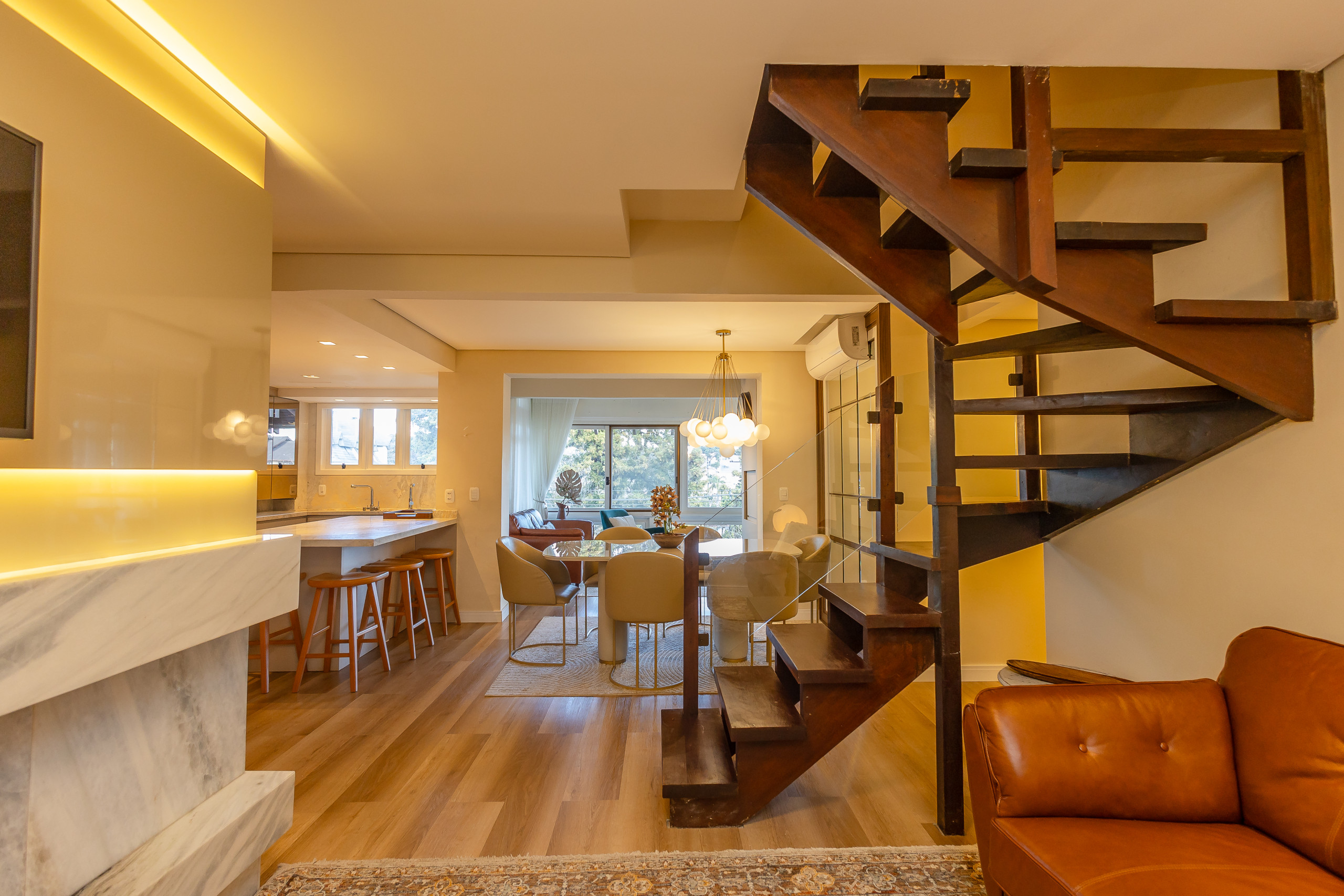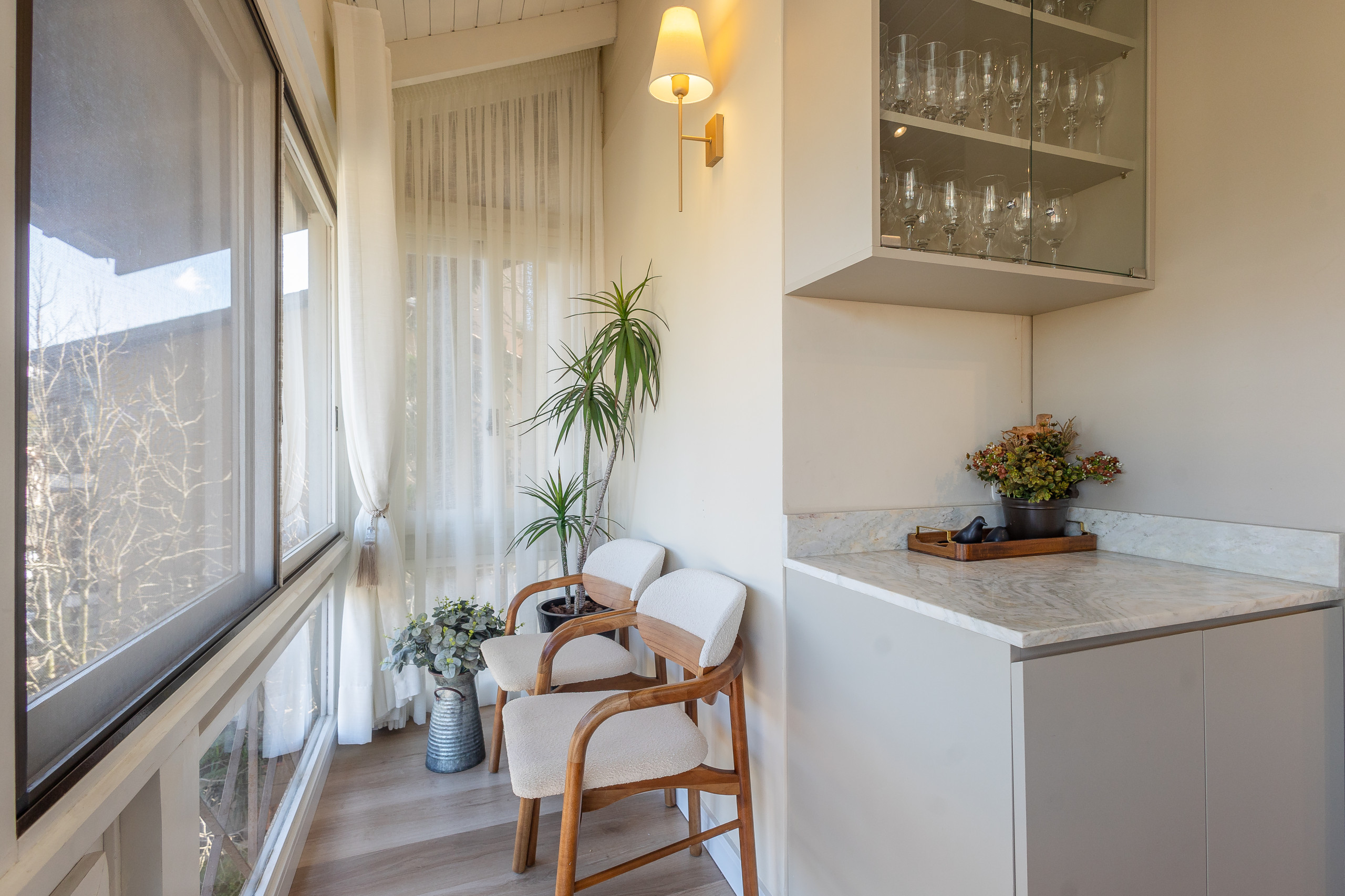It has 4 bedrooms and 4 bathrooms (3 suites, one bedroom, and 1 full social bathroom) air-conditioned with hot/cold split and smart TV. It also features a climatized living area with 4 environments (living room, dining room, fully equipped open-plan kitchen, and closed balcony with a view of the square) with fireplace and barbecue area. You will also have at your disposal washer and dryer, dishwasher, high-speed internet, and a complete high-standard linen set for your stay.