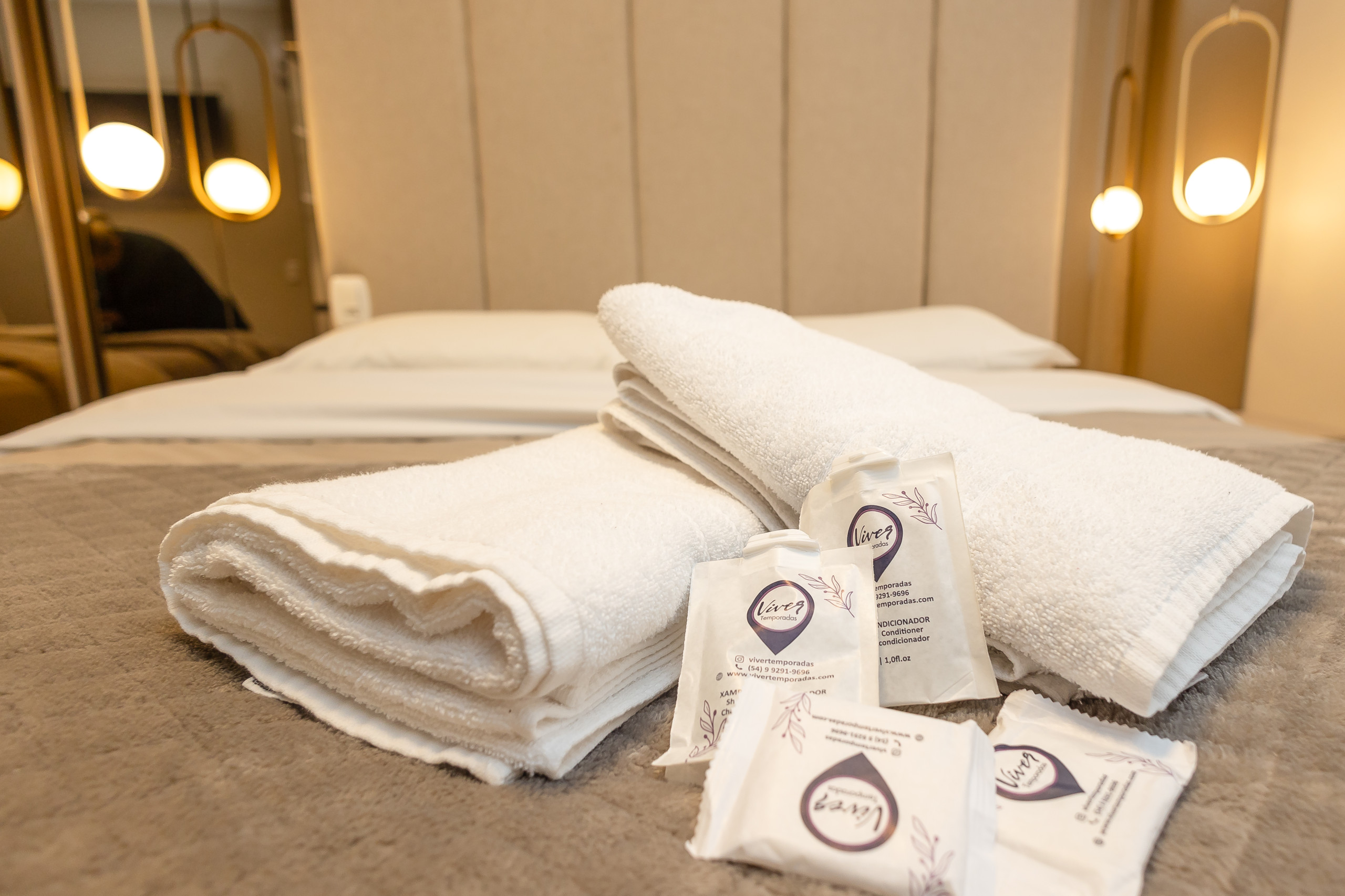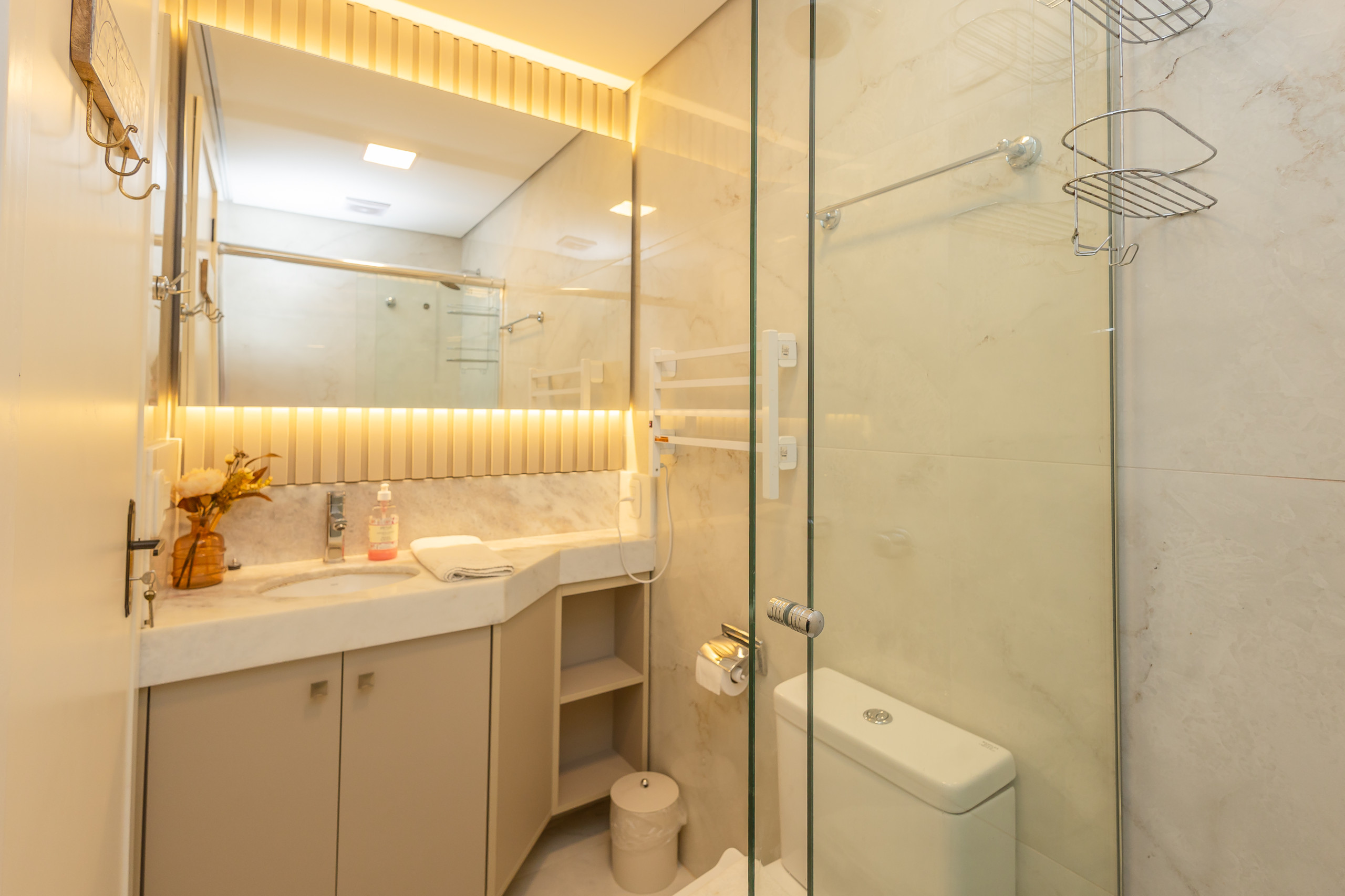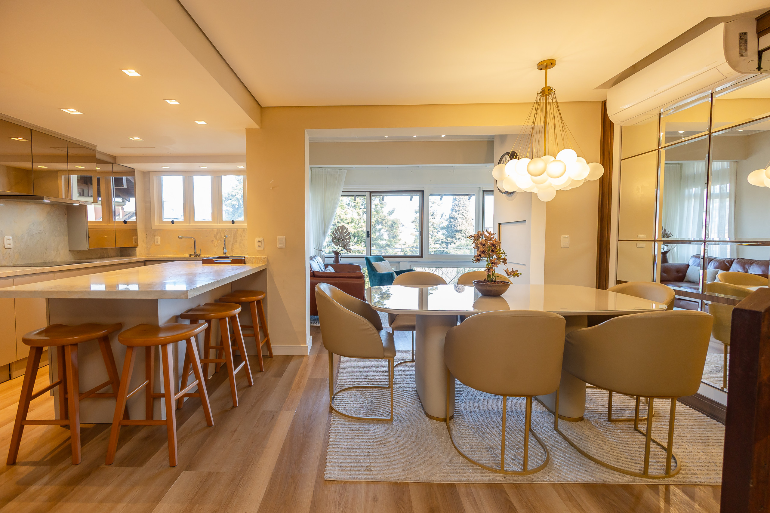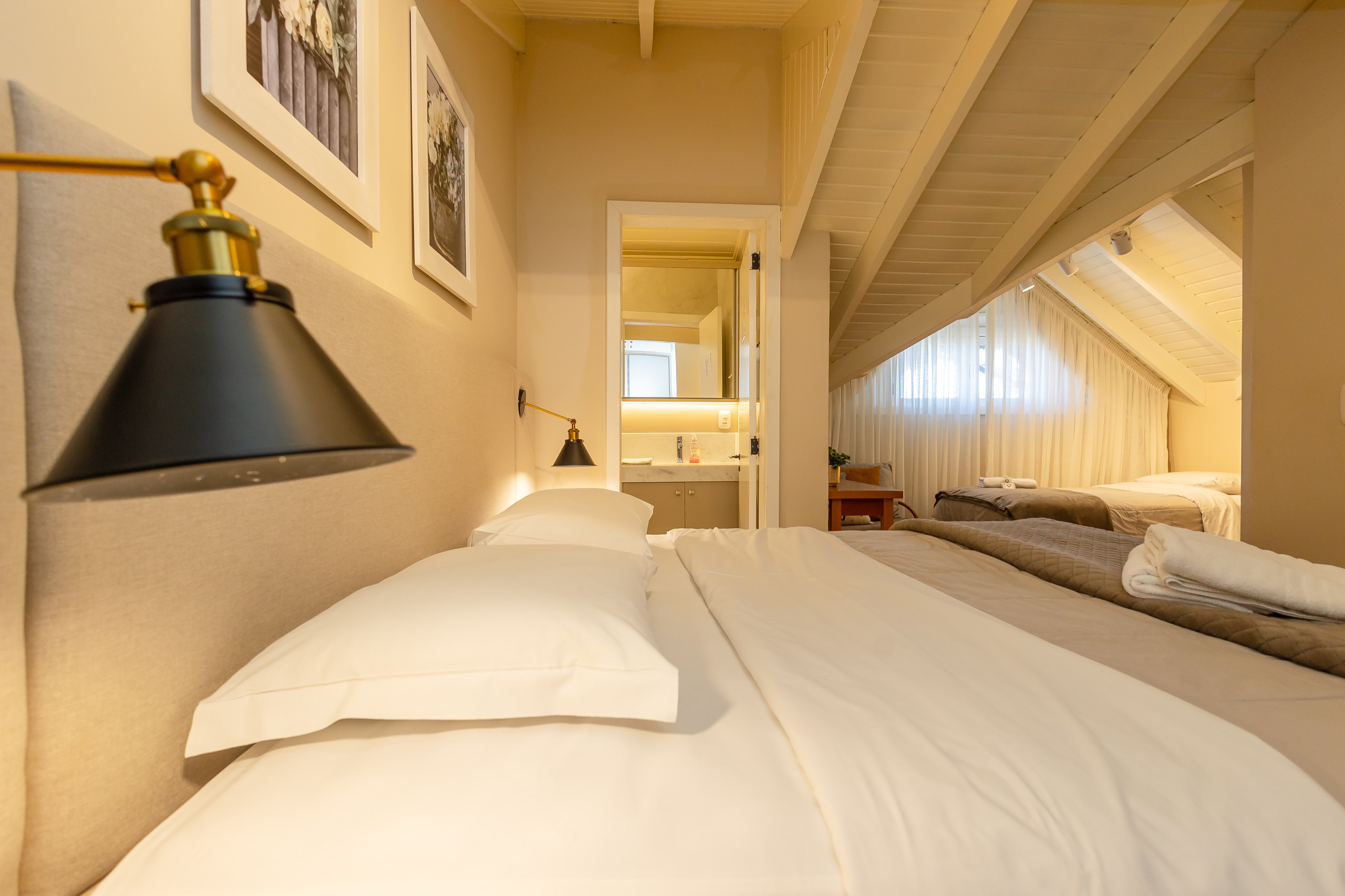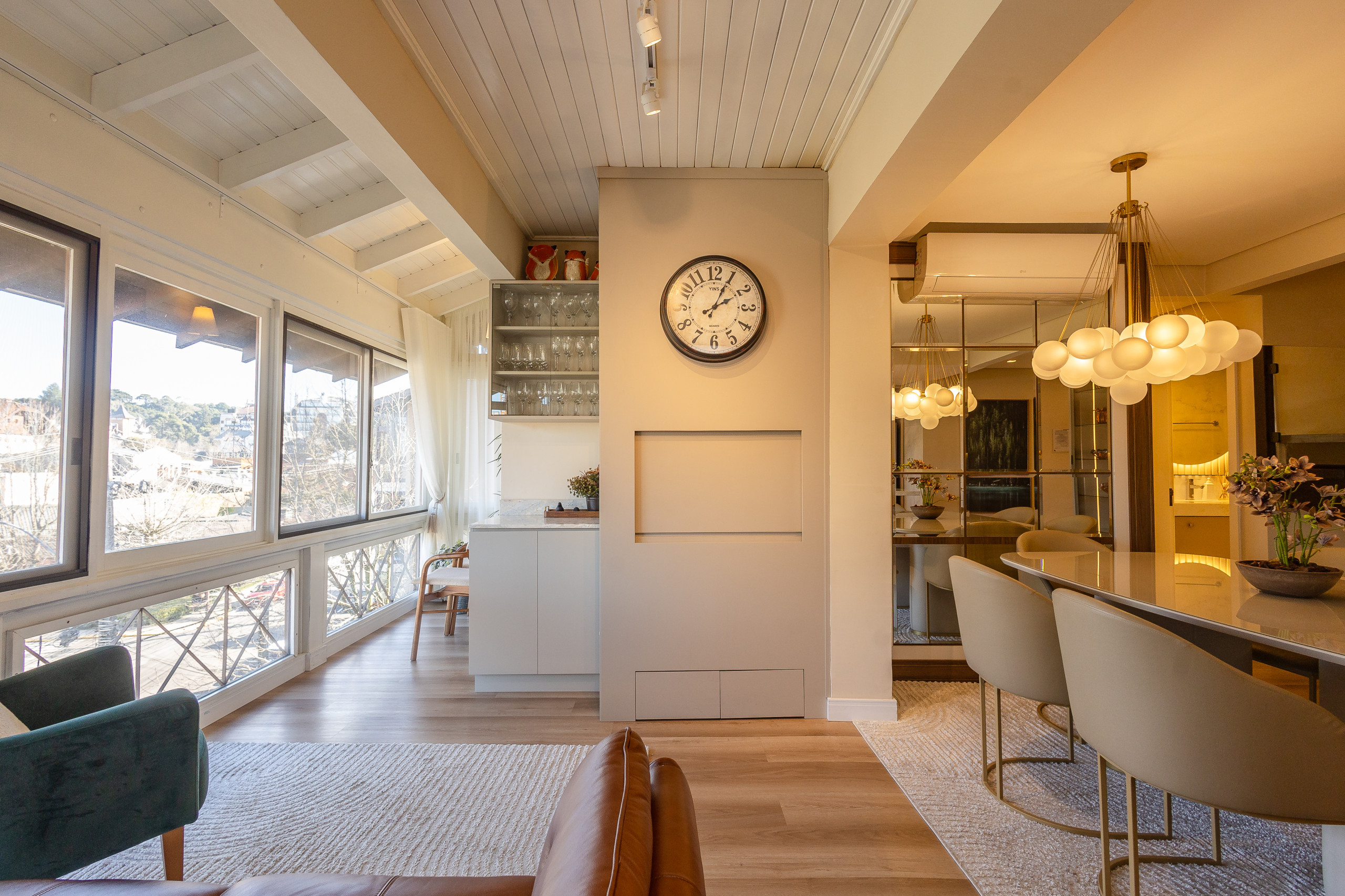 It has 4 bedrooms and 4 bathrooms (3 suites, one bedroom, and 1 full social bathroom) air-conditioned with hot/cold split and smart TV. It also features a climatized living area with 4 environments (living room, dining room, fully equipped open-plan kitchen, and closed balcony with a view of the square) with fireplace and barbecue area. You will also have at your disposal washer and dryer, dishwasher, high-speed internet, and a complete high-standard linen set for your stay.